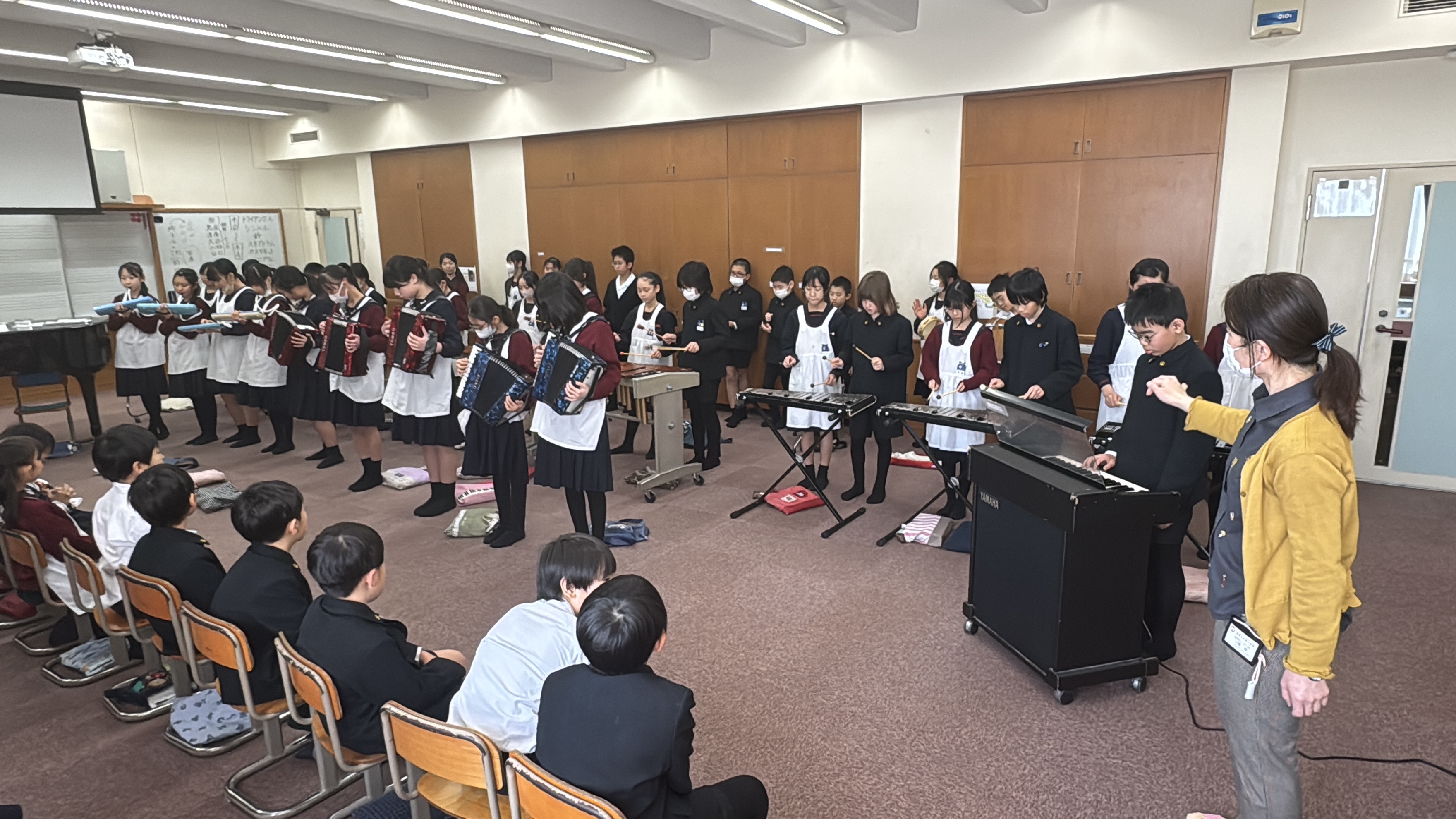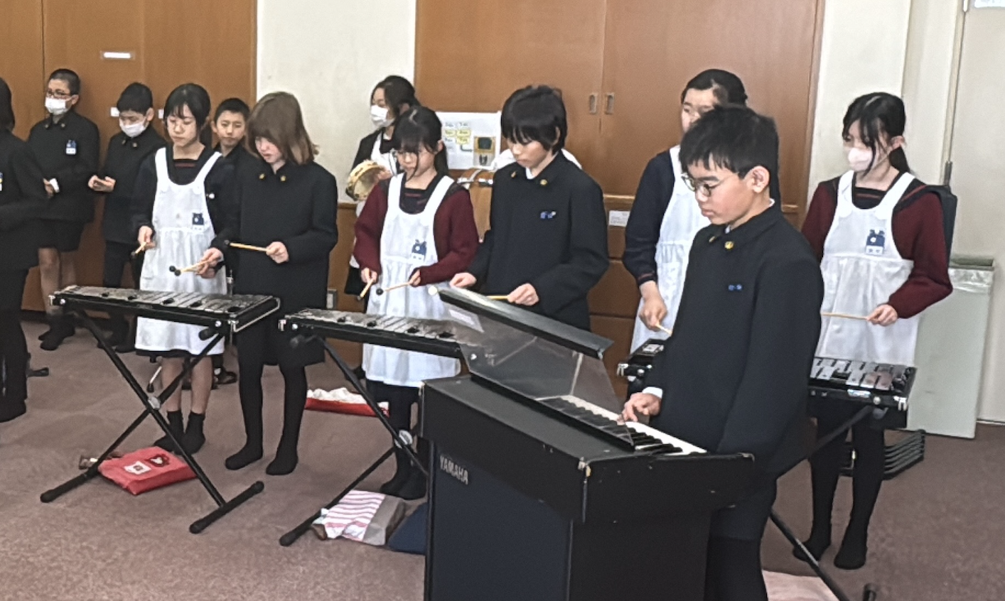 5年生が器楽合奏のコンサートを開催し、3学期にクラスの音楽の授業で取り組んだ曲を披露しました。他の学年の児童に聴いてもらえる機会は励みになりました。