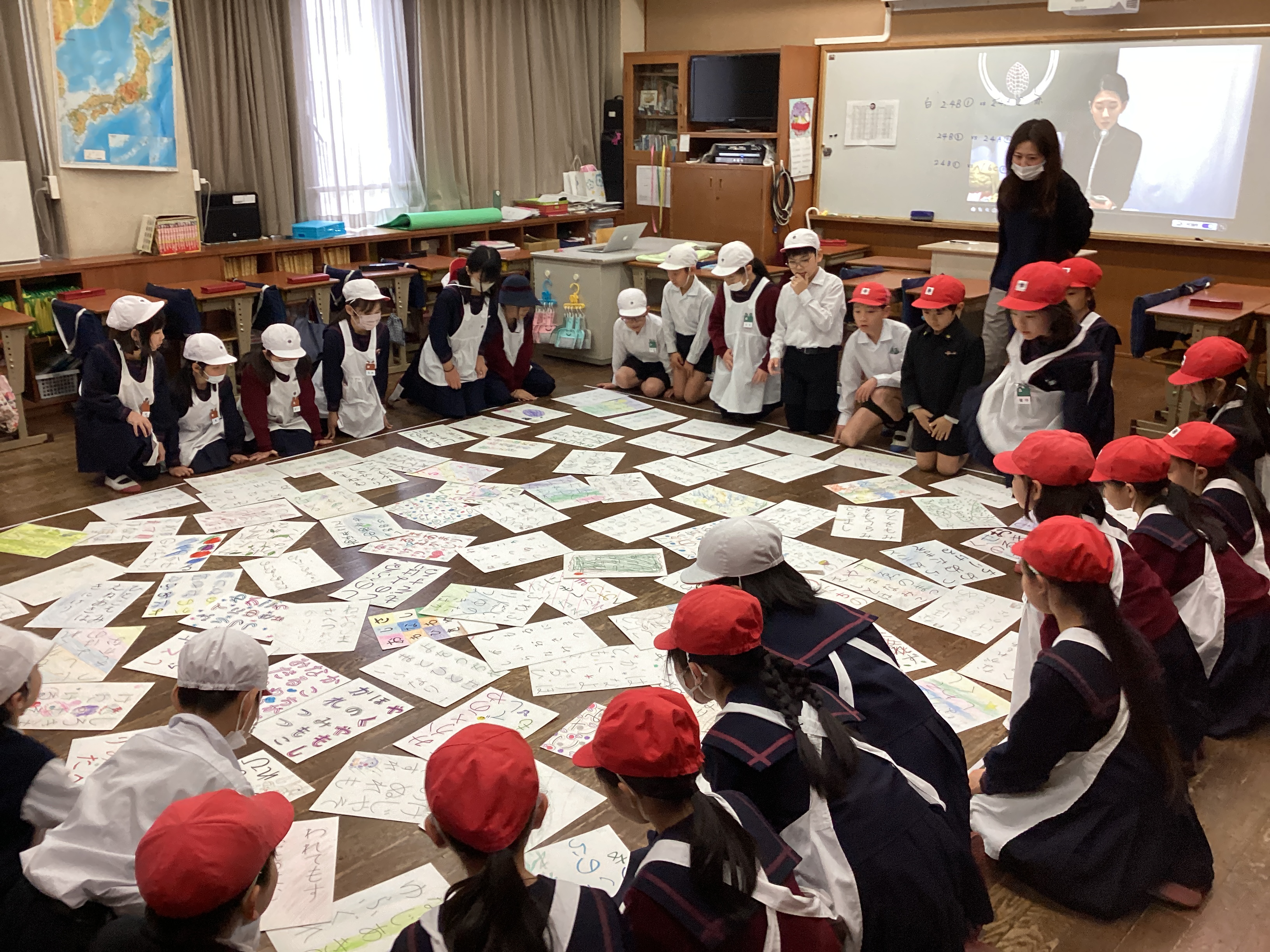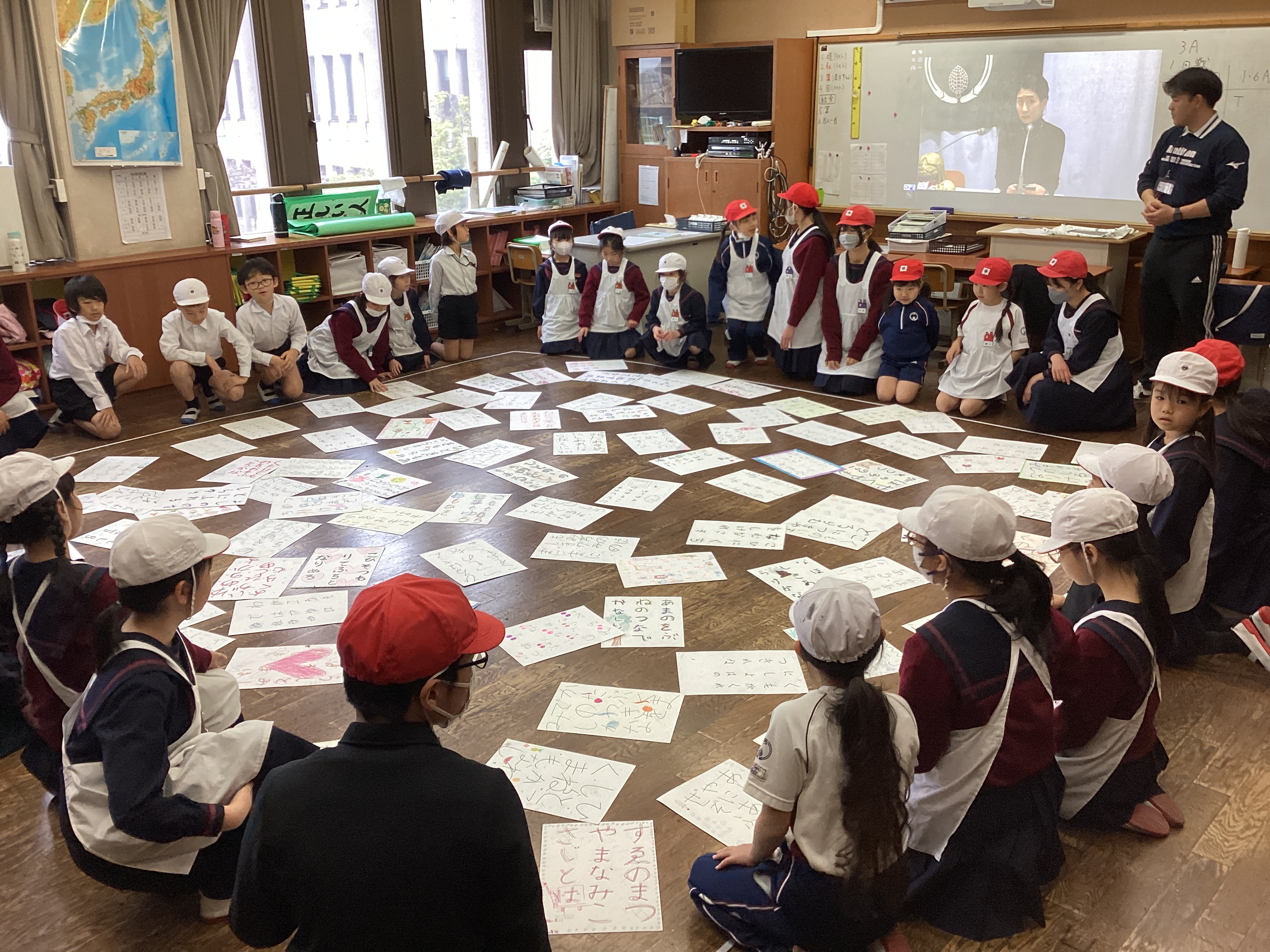 お手つきをしたり、同時に札をタッチしたり、それぞれのクラスで白熱した対戦があったようですが、全力で取り組む児童の姿も見られ、熱い百人一首大会になったようです。
