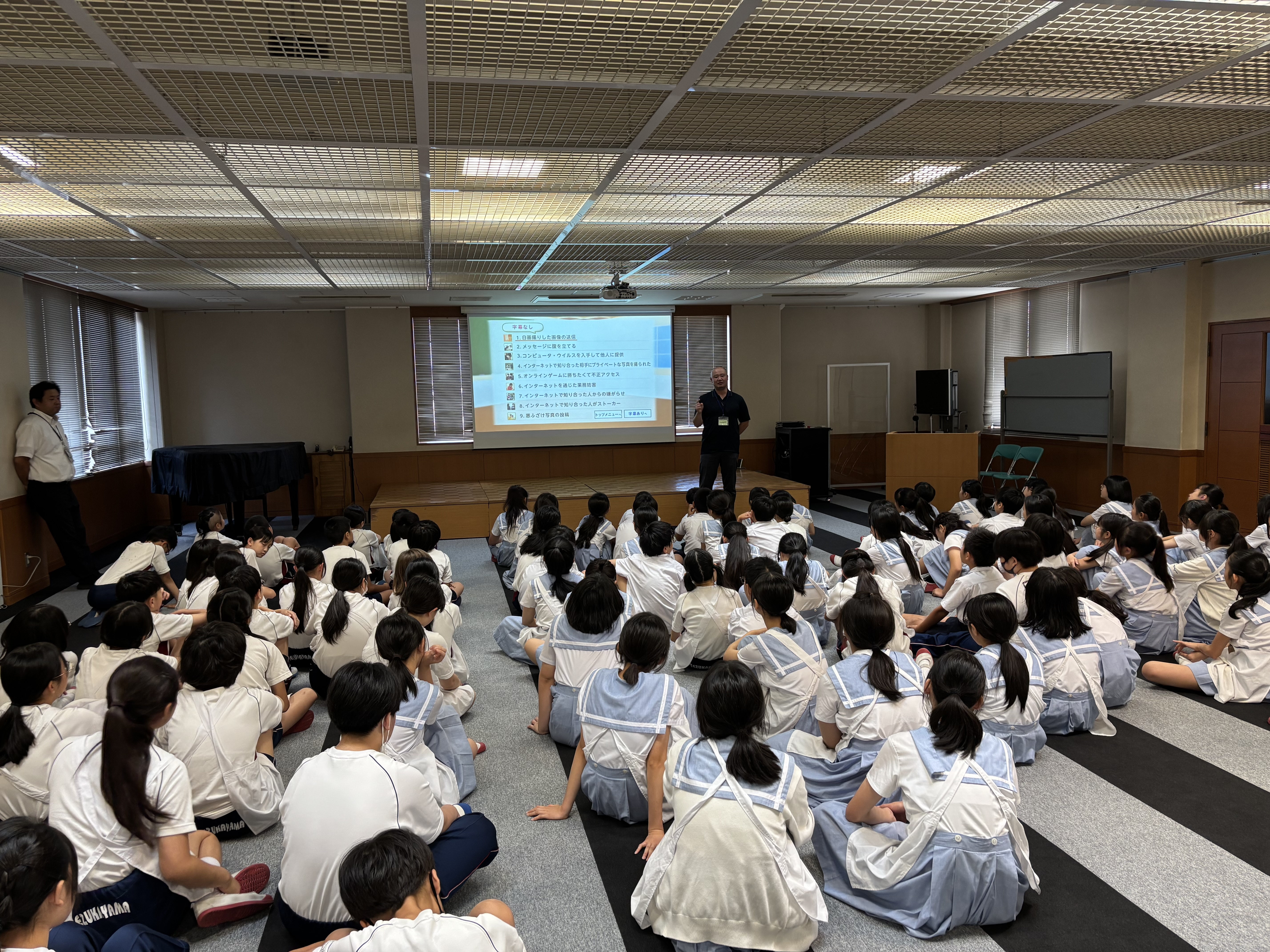 校長先生からのお話の後、生徒指導部の先生より夏休みの過ごし方についての注意点をお話しいただきました。