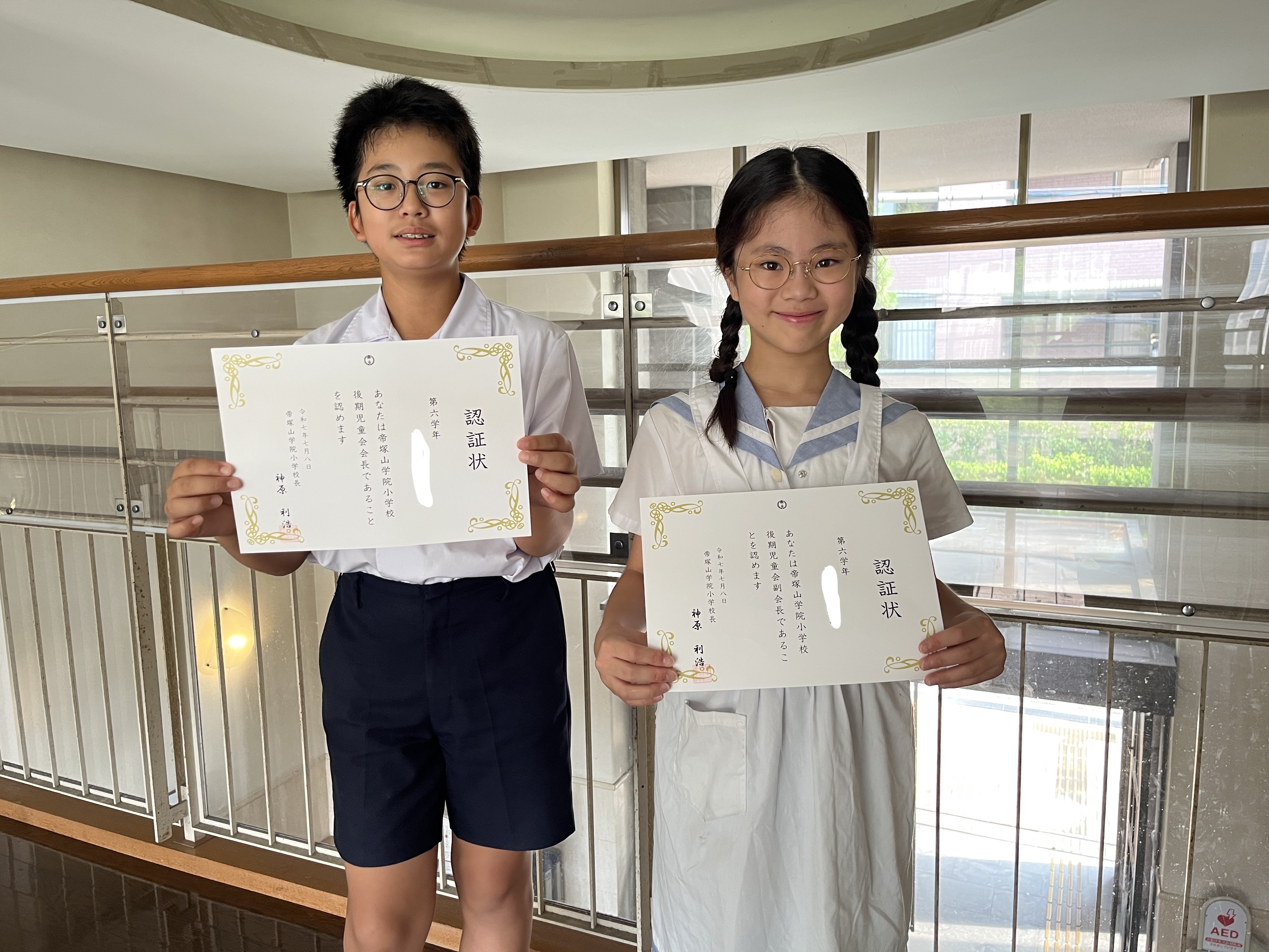 残念ながら、認証式の日は3名中1名は欠席でしたが、これから力を合わせて、帝塚山学院小学校を盛り上げていってほしいと思います。