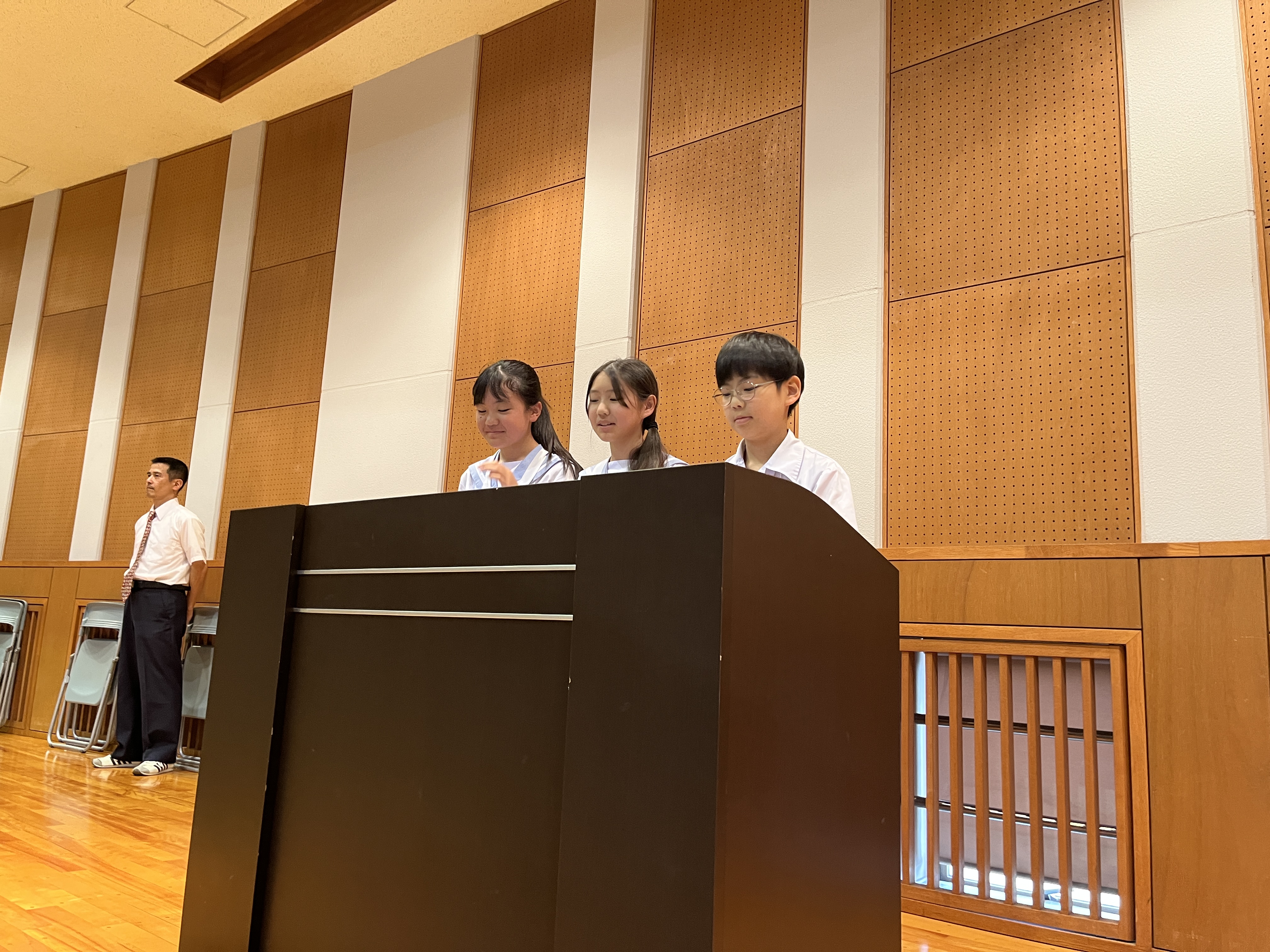 まず、各クラスからの1学期の振り返りと2学期に向けての展望について、クラス委員より発表が行われました。