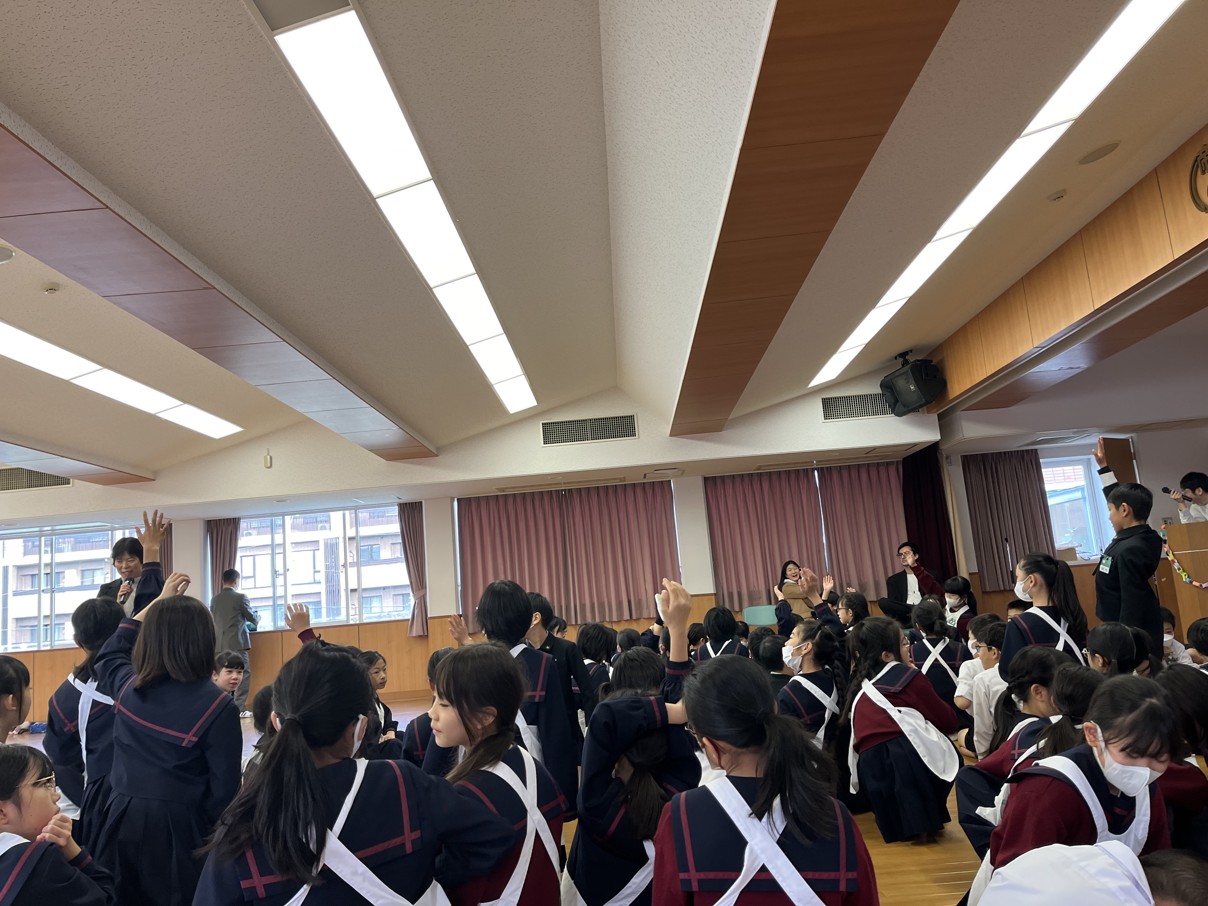 後半はクラスの交流を深めるため、児童会役員考案のハンカチ落としをしました。どのクラスも大盛り上がりで楽しんでいました。