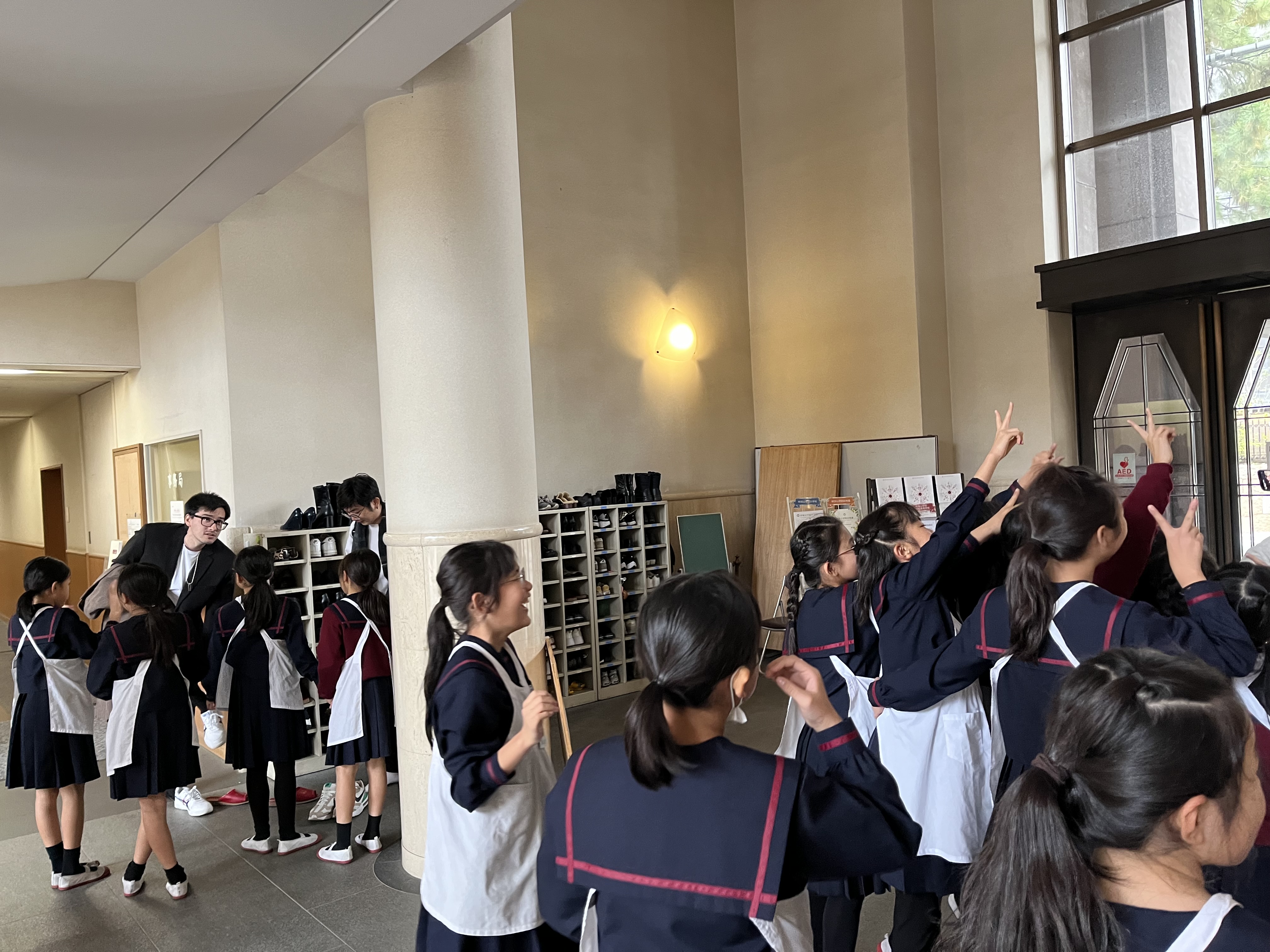 事前学習では、道徳「桜のかけはし」で、異文化に触れてみたいという思いや、外国の方と繋がれる喜びを学習しました。