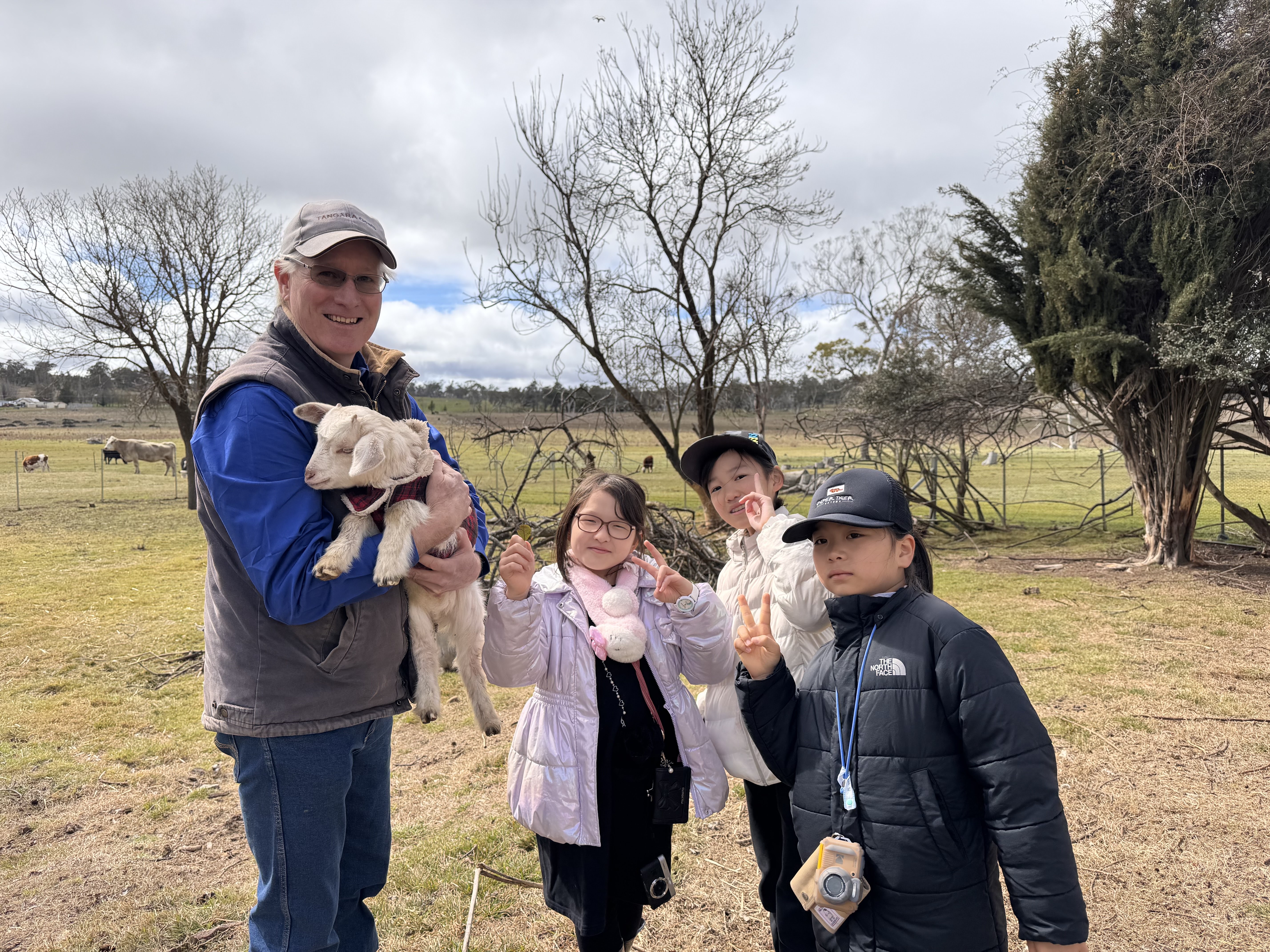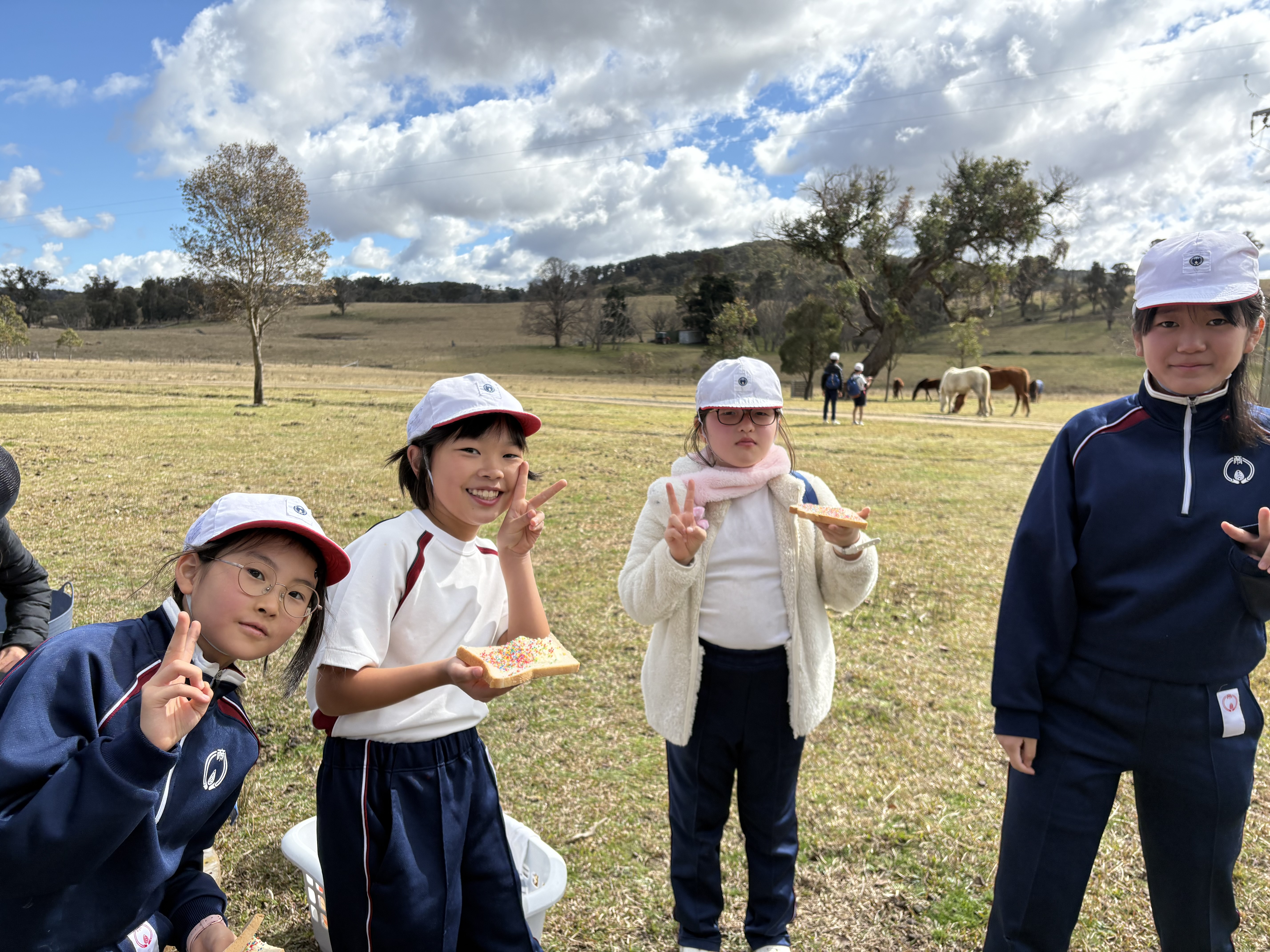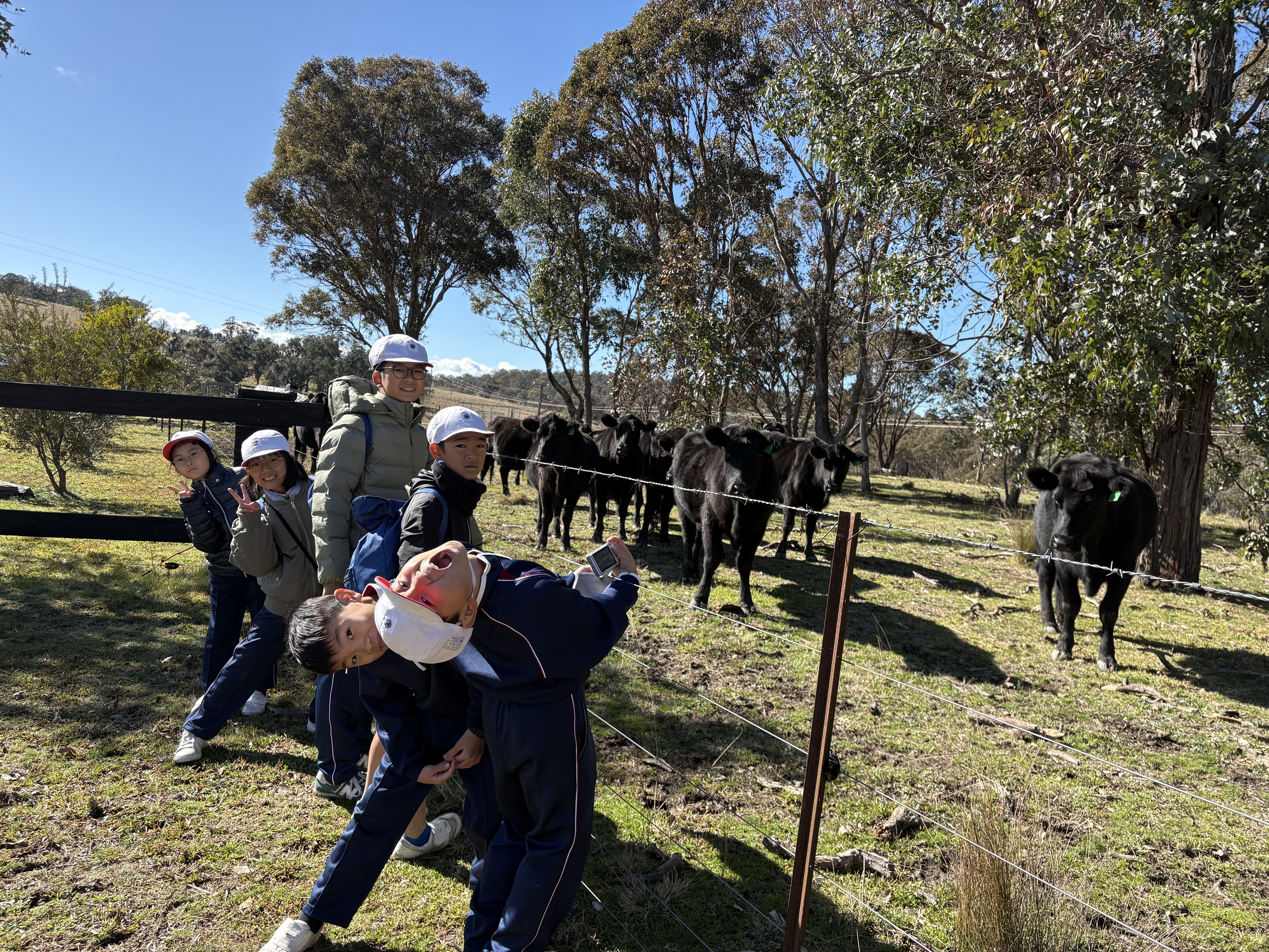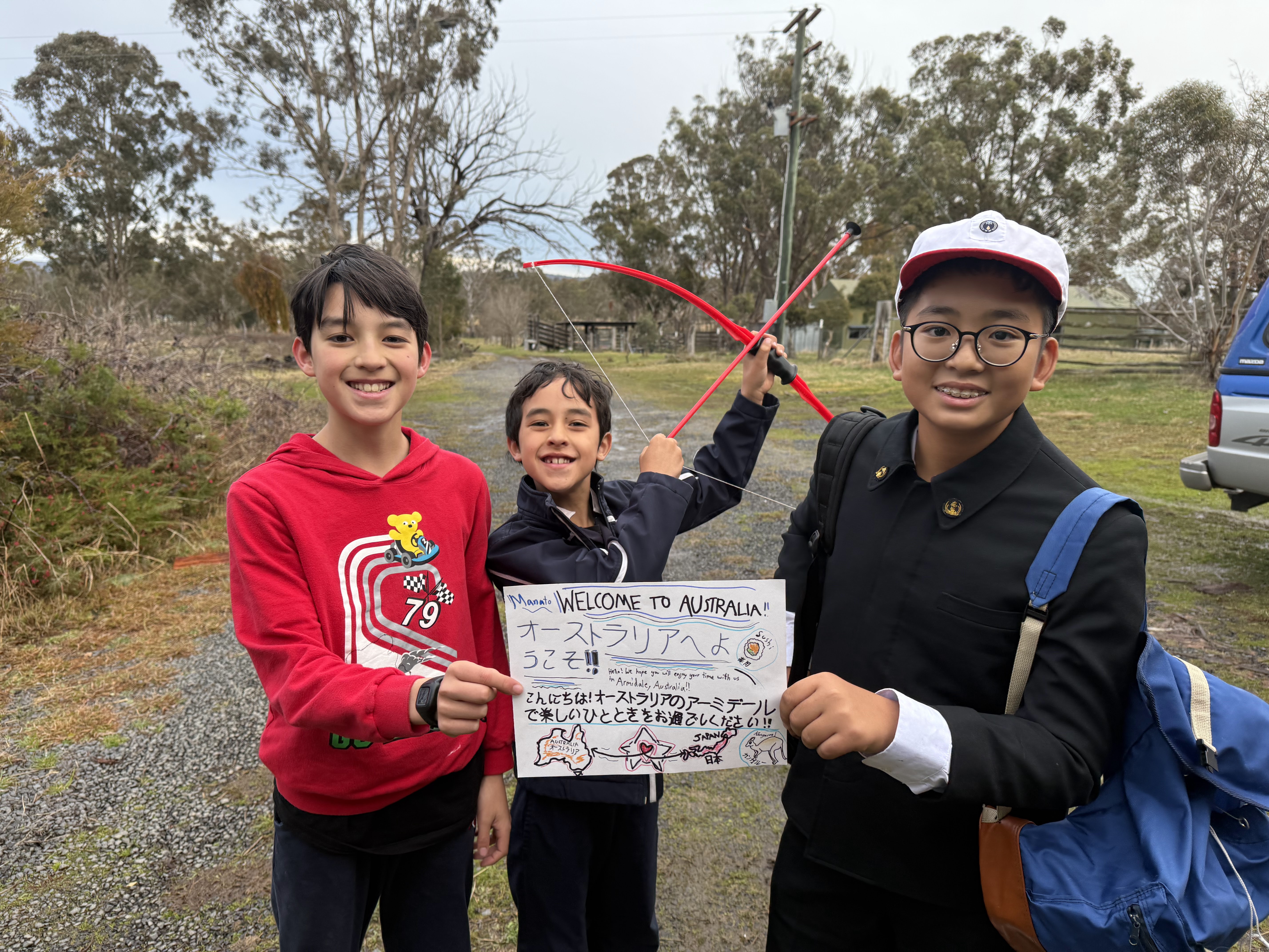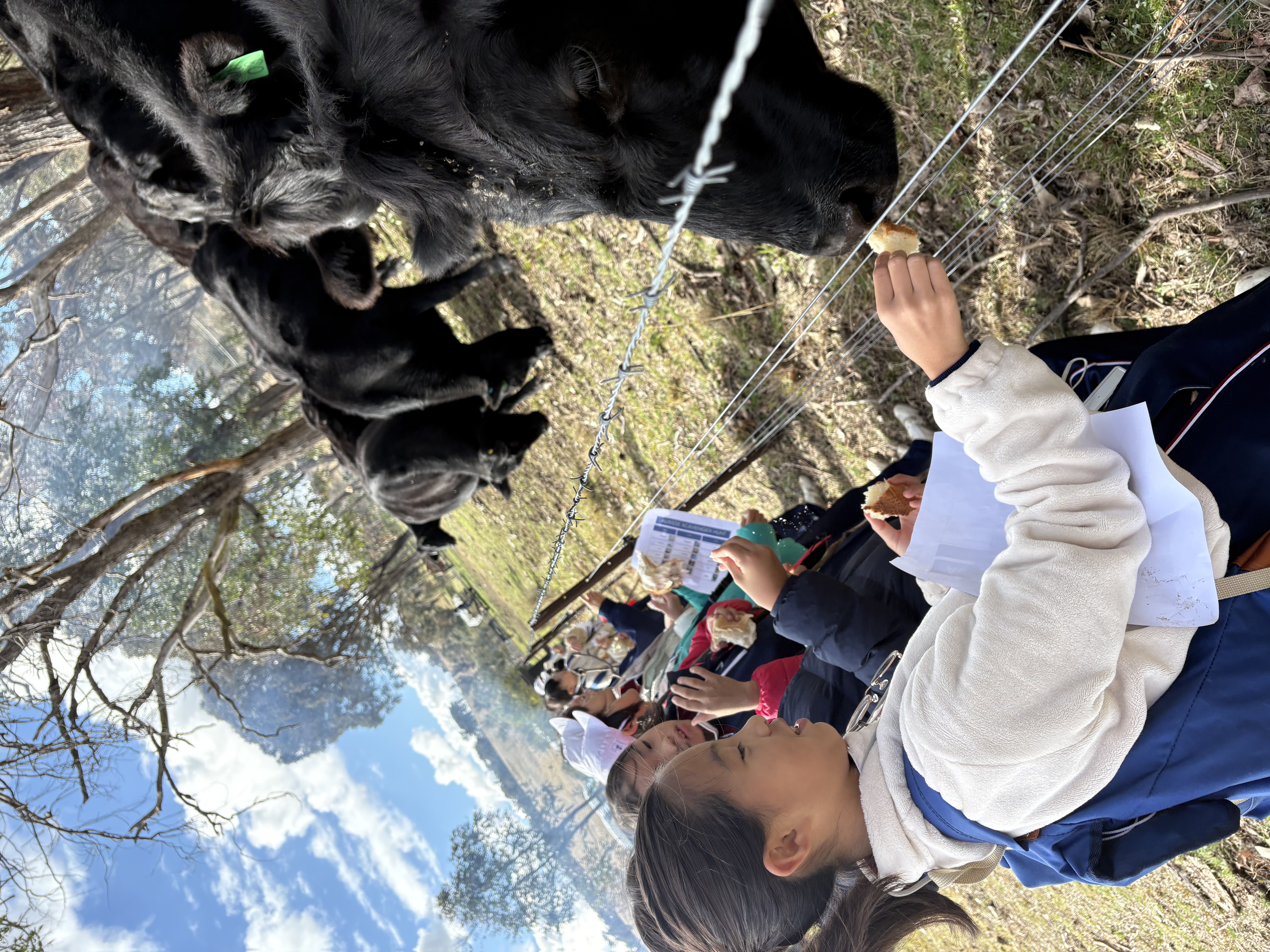 道中でカンガルーの群れに遭遇し、大興奮の子どもたち。アーミデイルの豊かな自然を満喫しました。