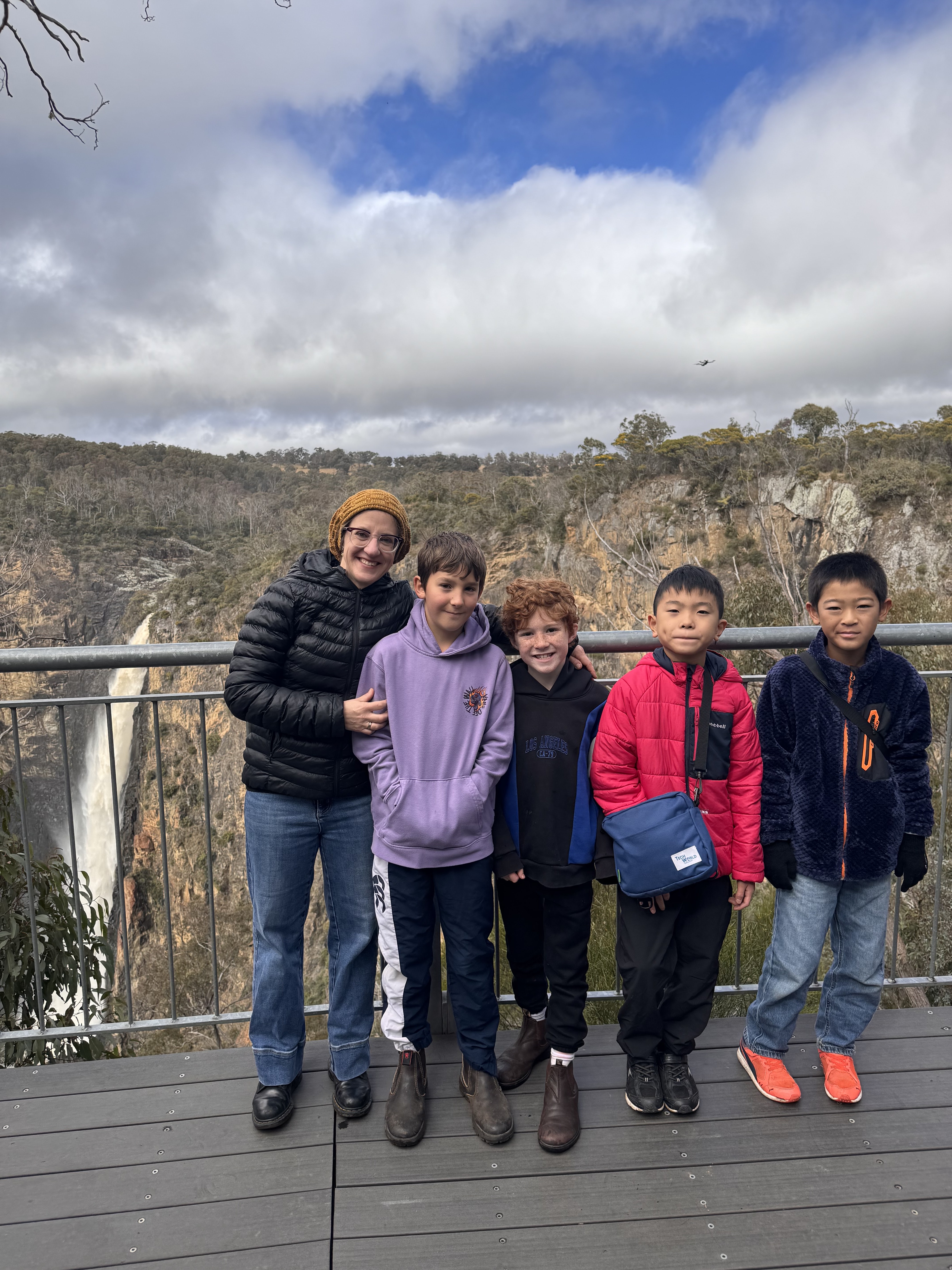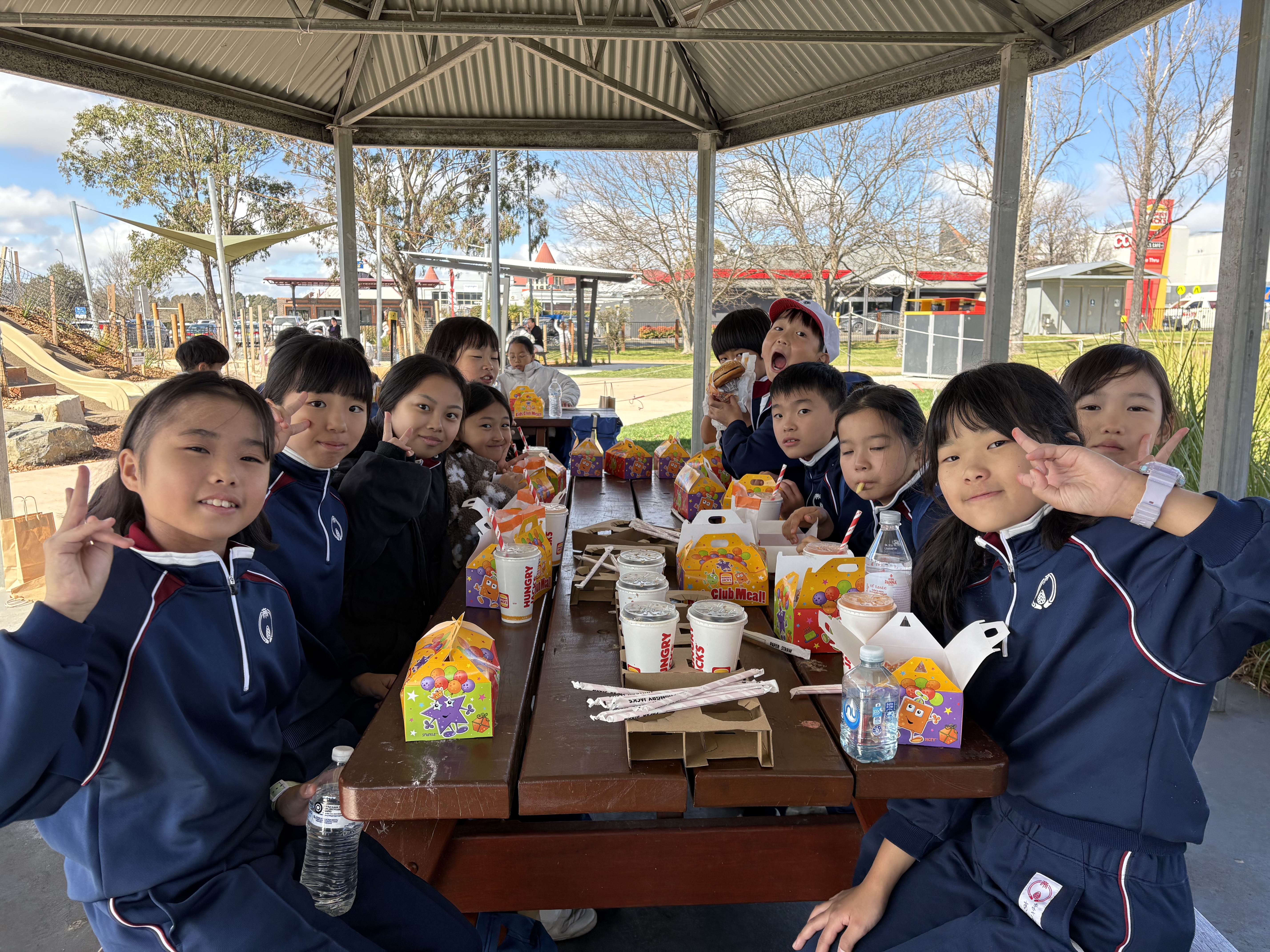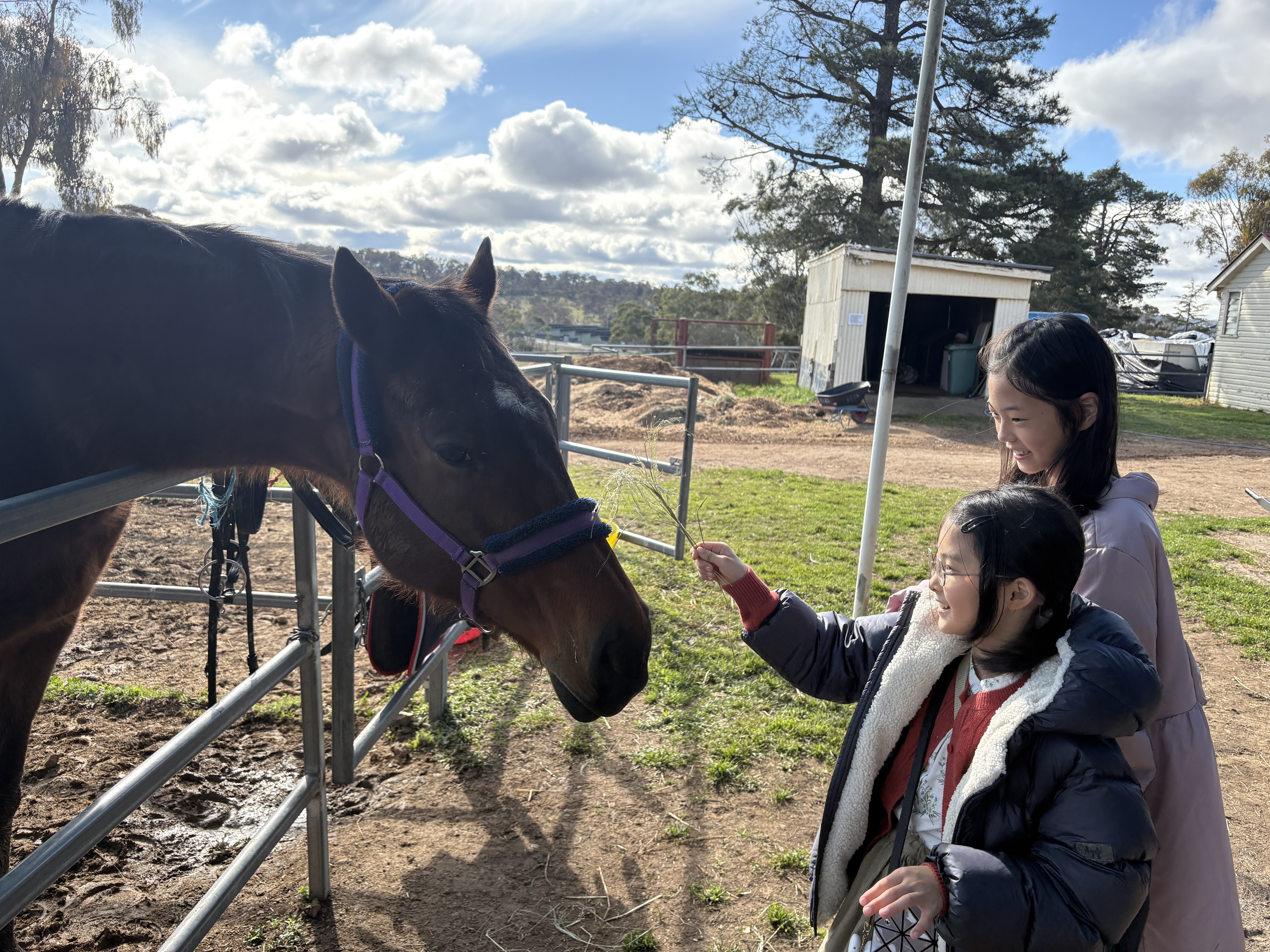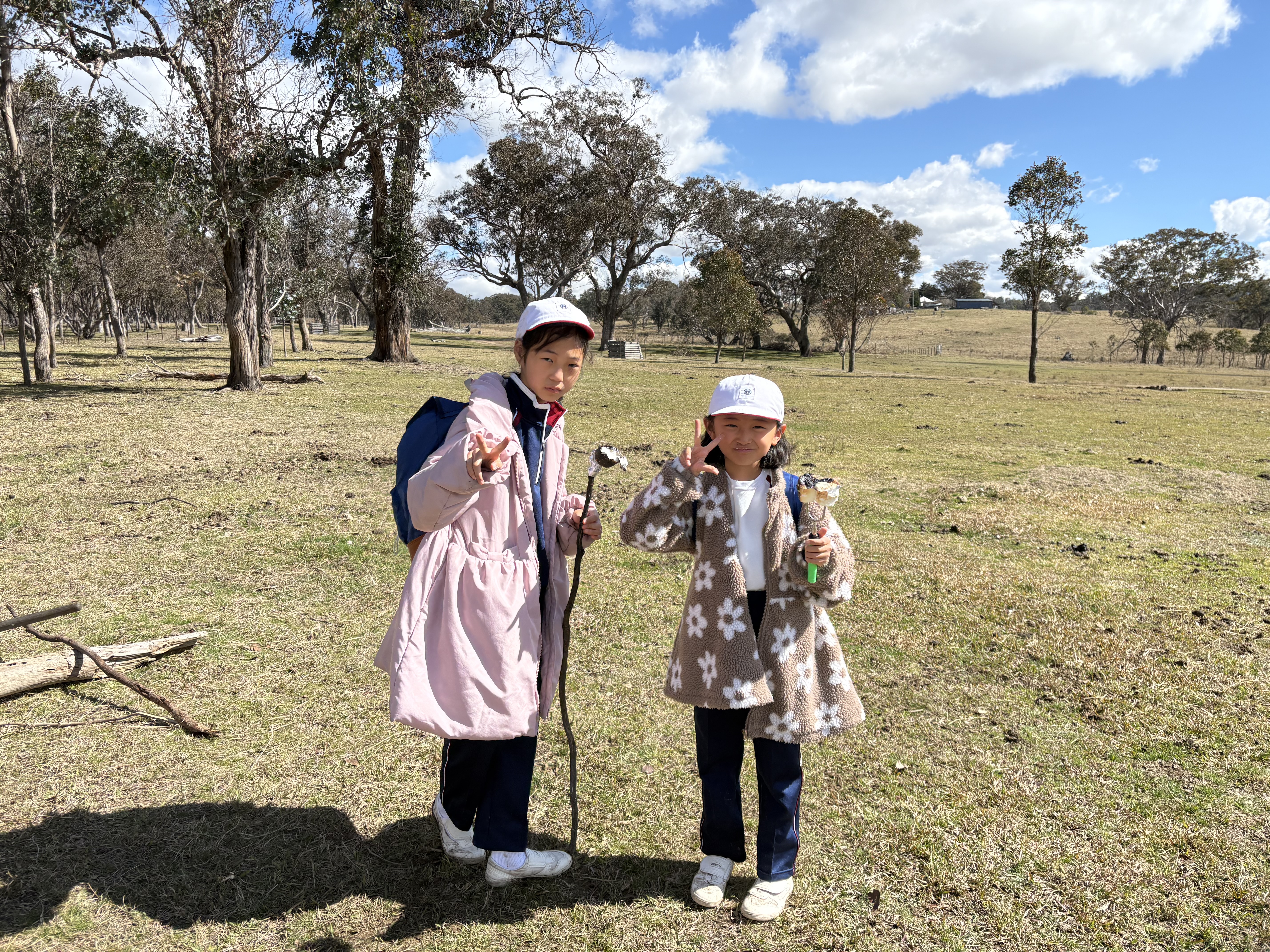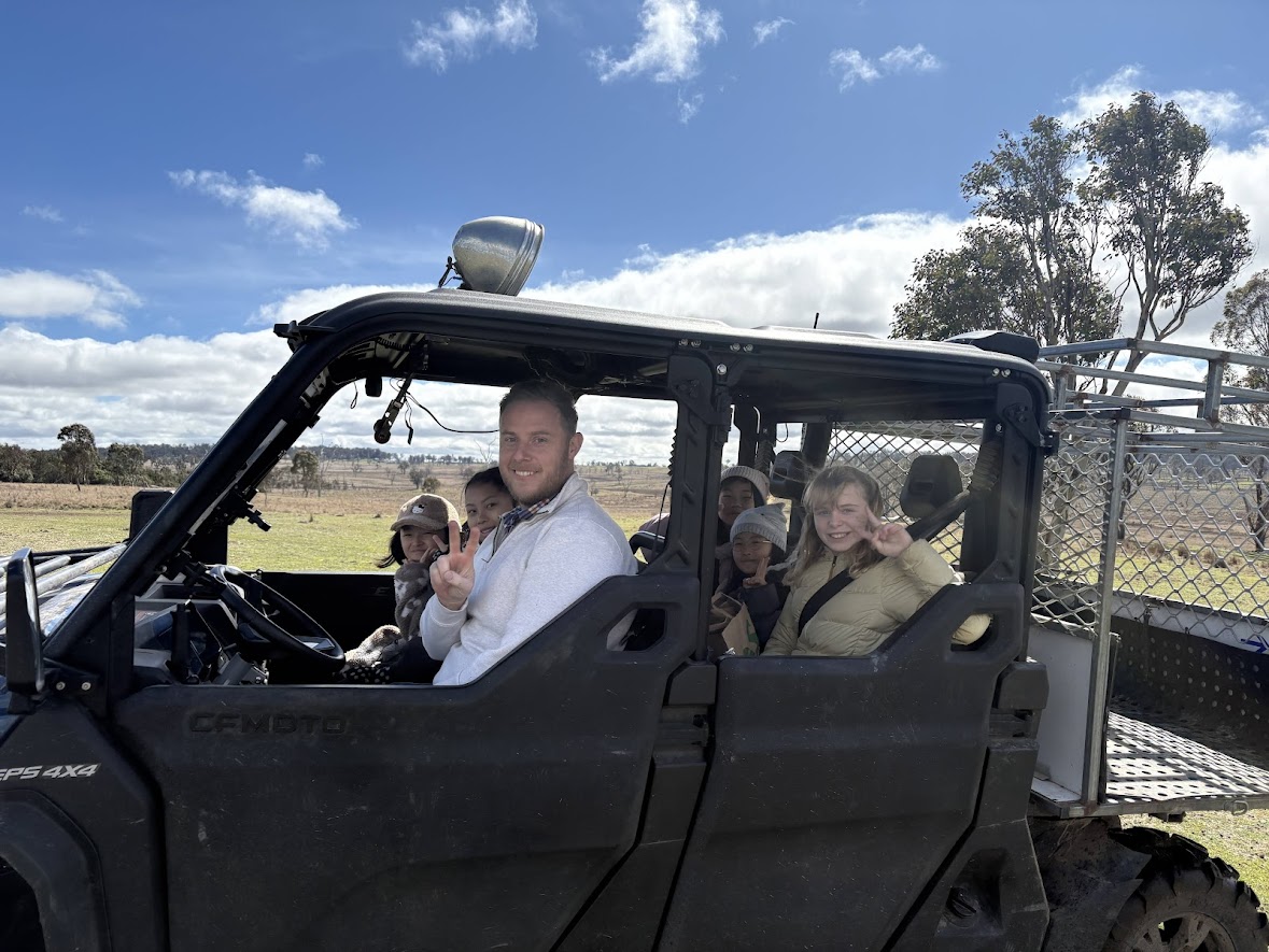 道中でカンガルーの群れに遭遇し、大興奮の子どもたち。アーミデイルの豊かな自然を満喫しました。