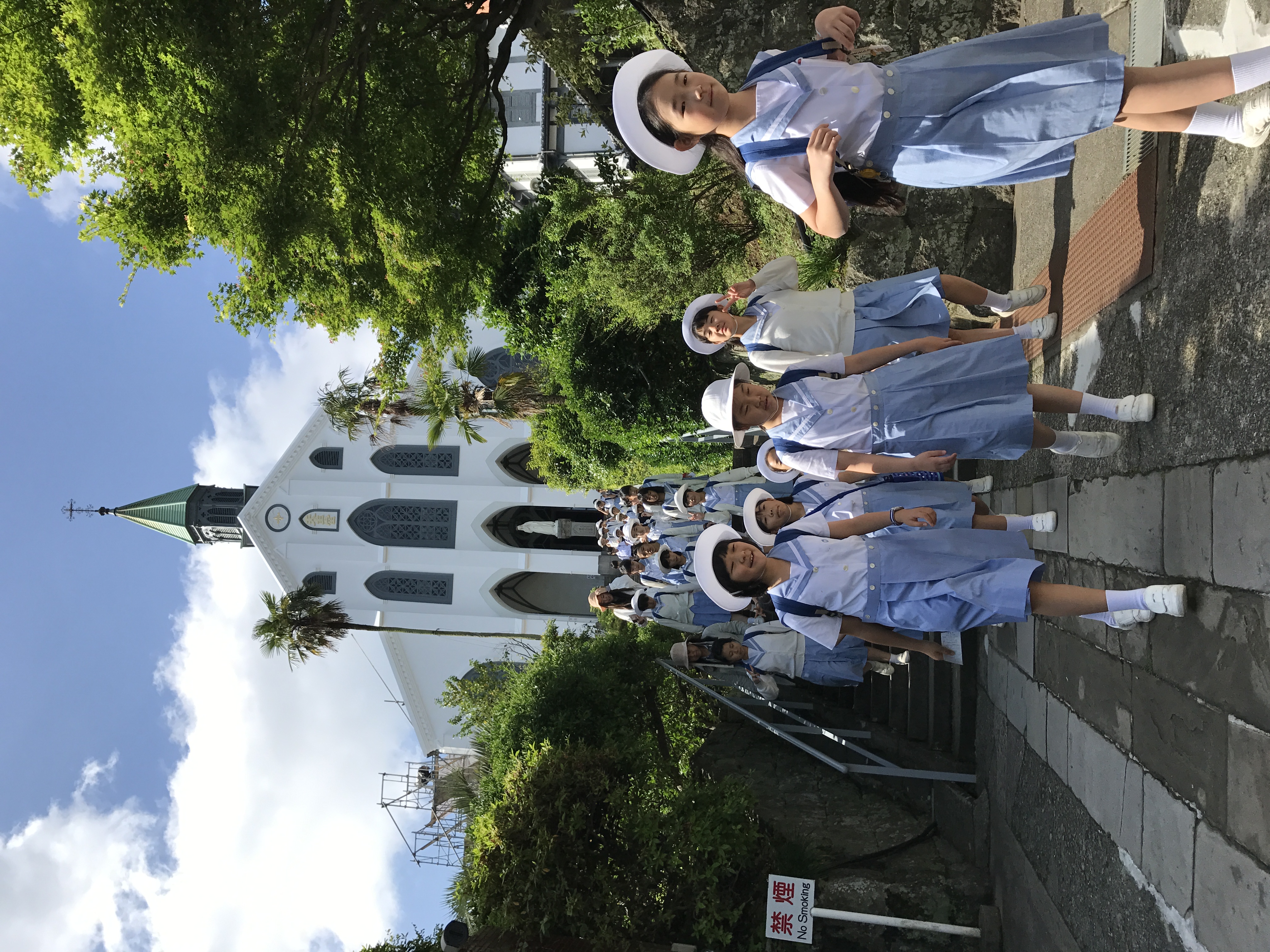 今日のお天気は雲ひとつない快晴! 午前中は大浦天主堂、グラバー園に行きました。 異国情緒豊かな建物を眺めながら、石畳を歩いていると、石の中にハートの石を発見!子どもたちはとても嬉しそうでした。
