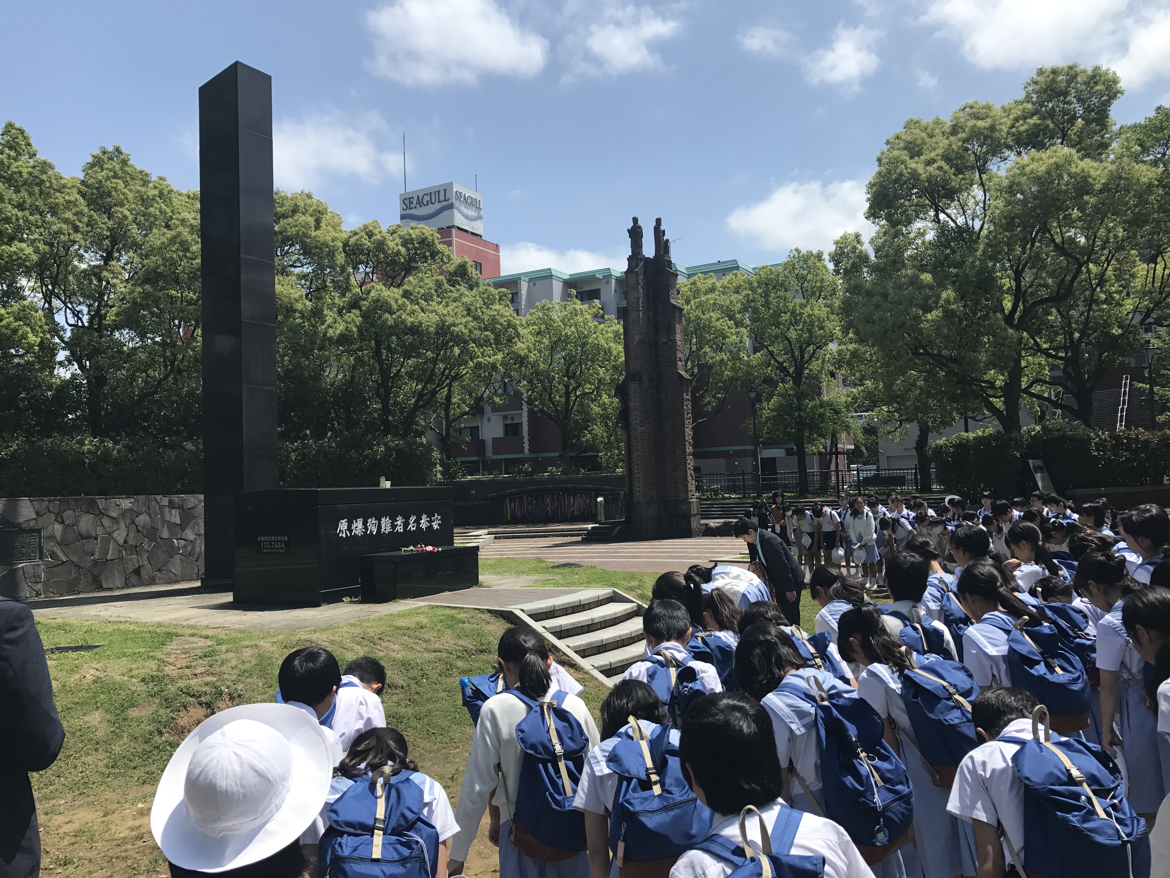 原爆資料館を見学後、原爆落下中心地公園にてセレモニーを行いました。何気ない普段の毎日がいかに幸せかということを改めて感じ、感謝の気持ちを持って過ごしていきたいと思いました。 昼食後はガイドさんに平和公園内を案内していただきました。そして、ホテルで最後の夕食をいただきました。