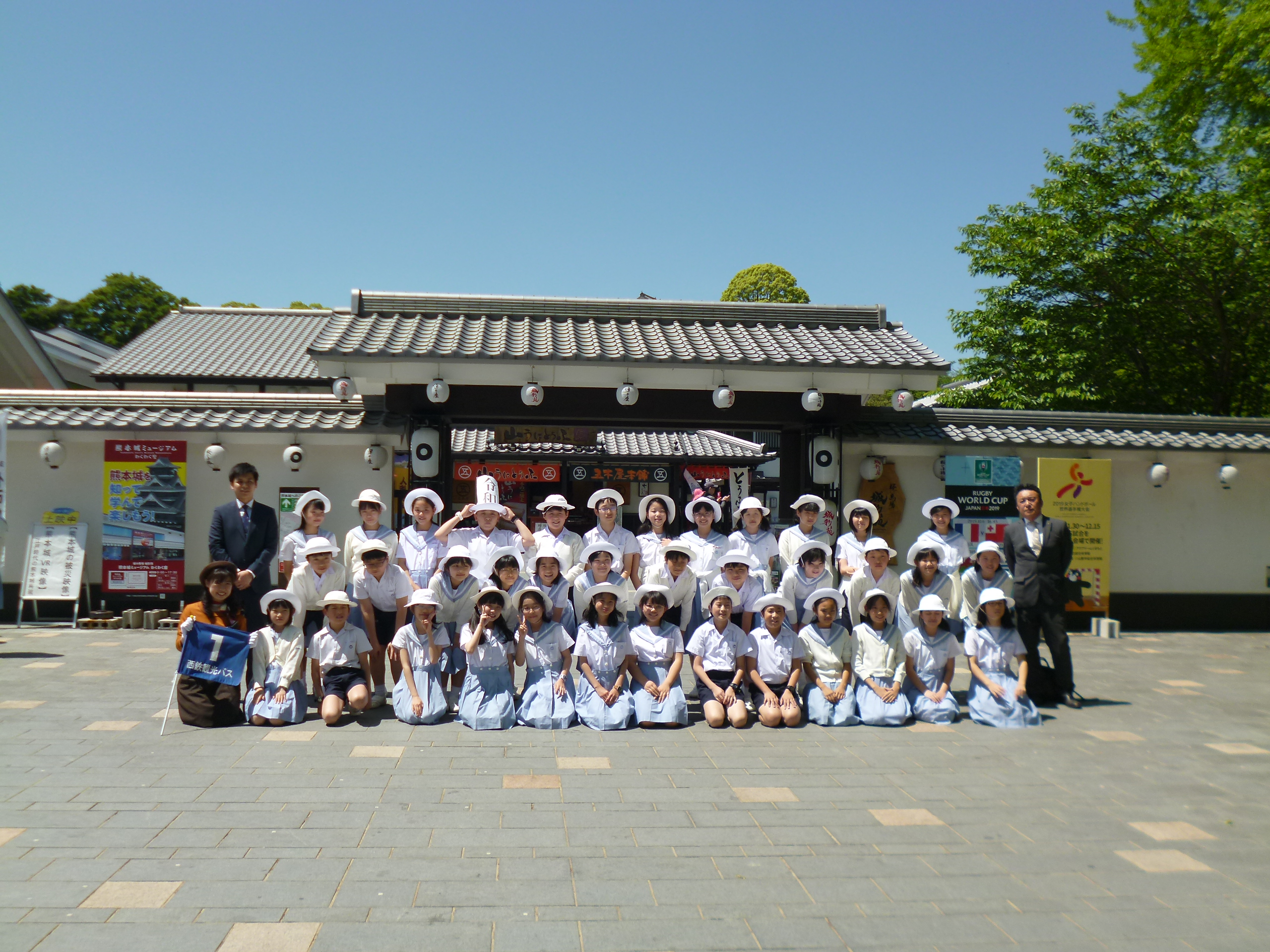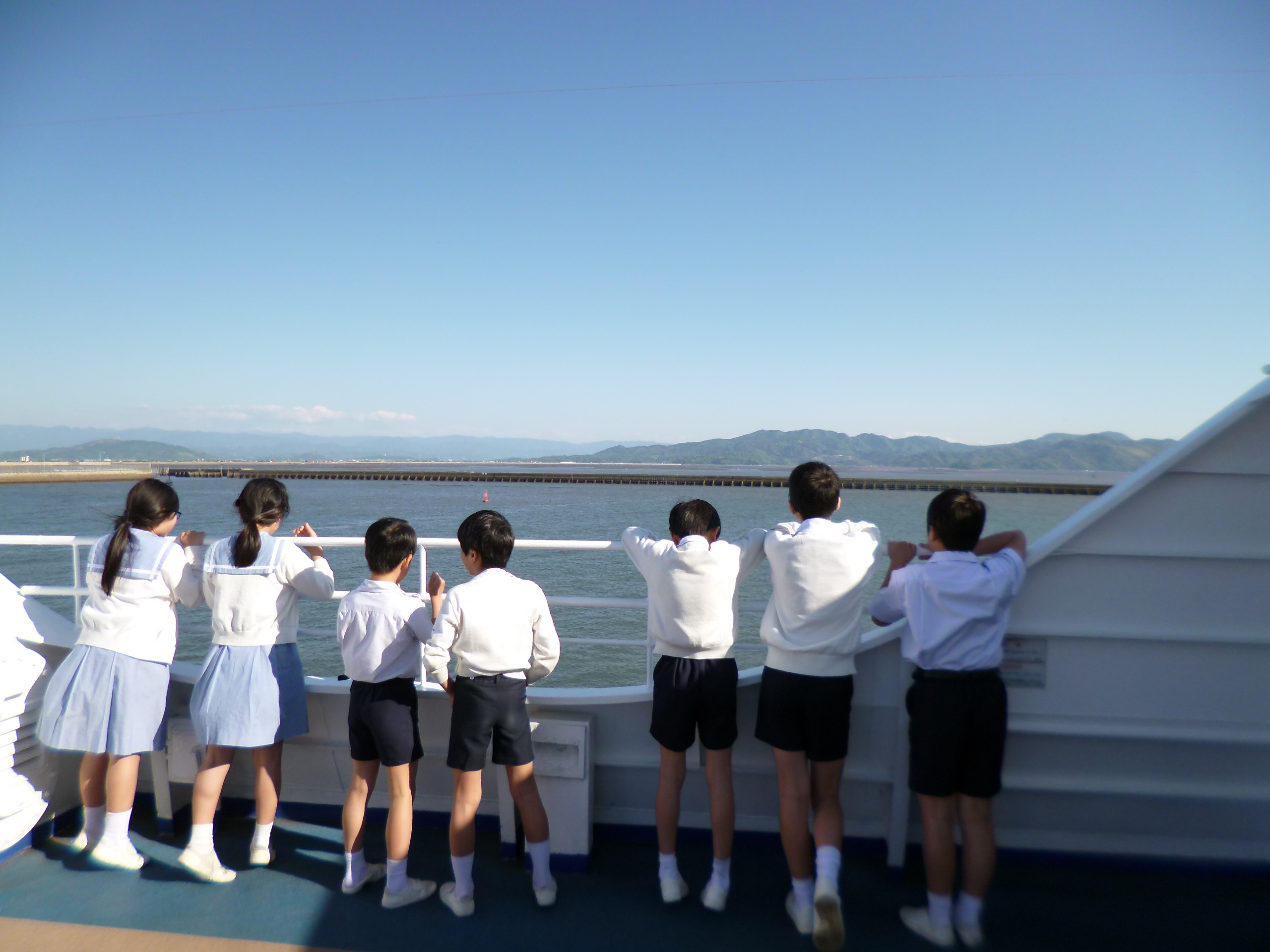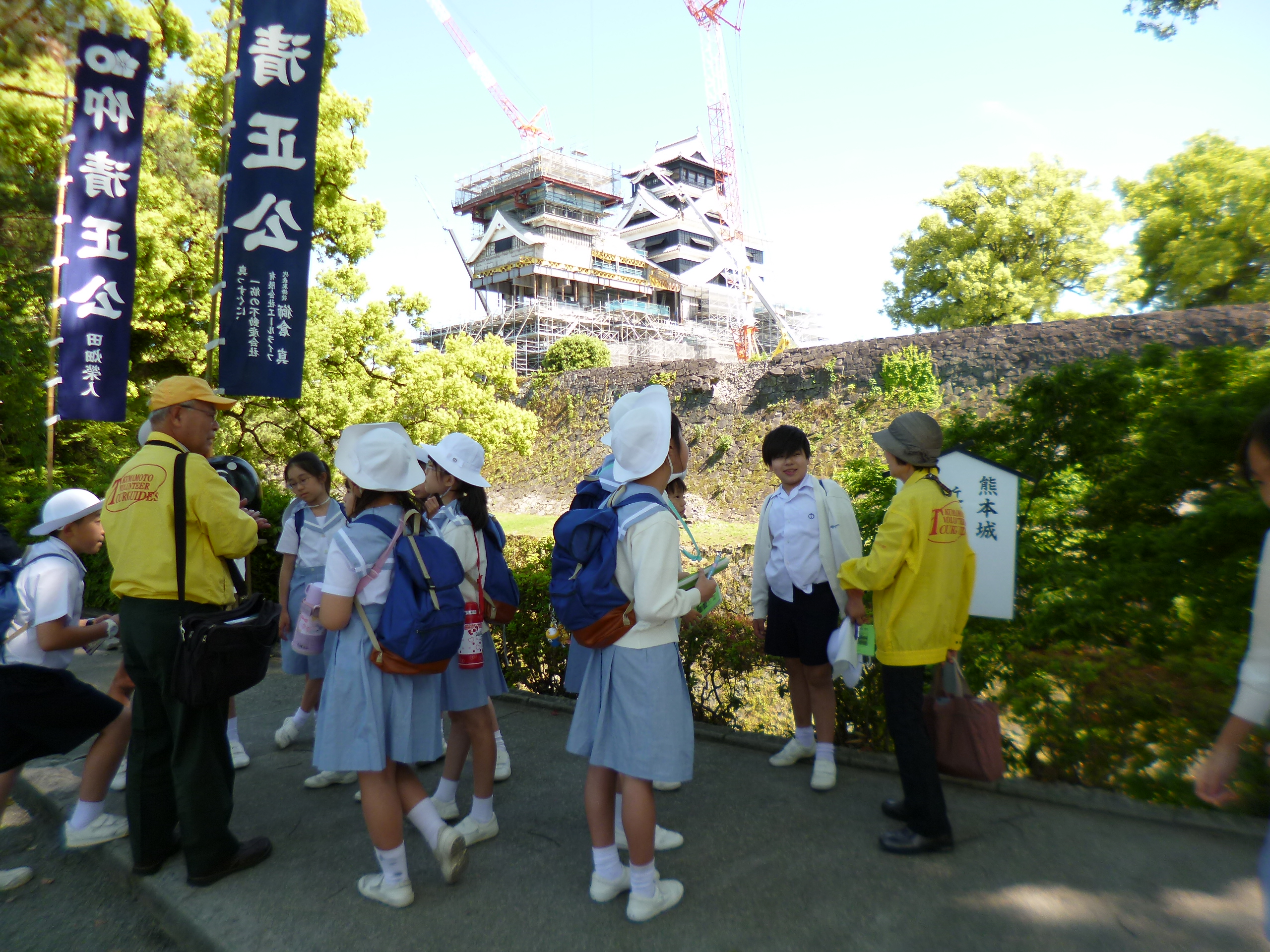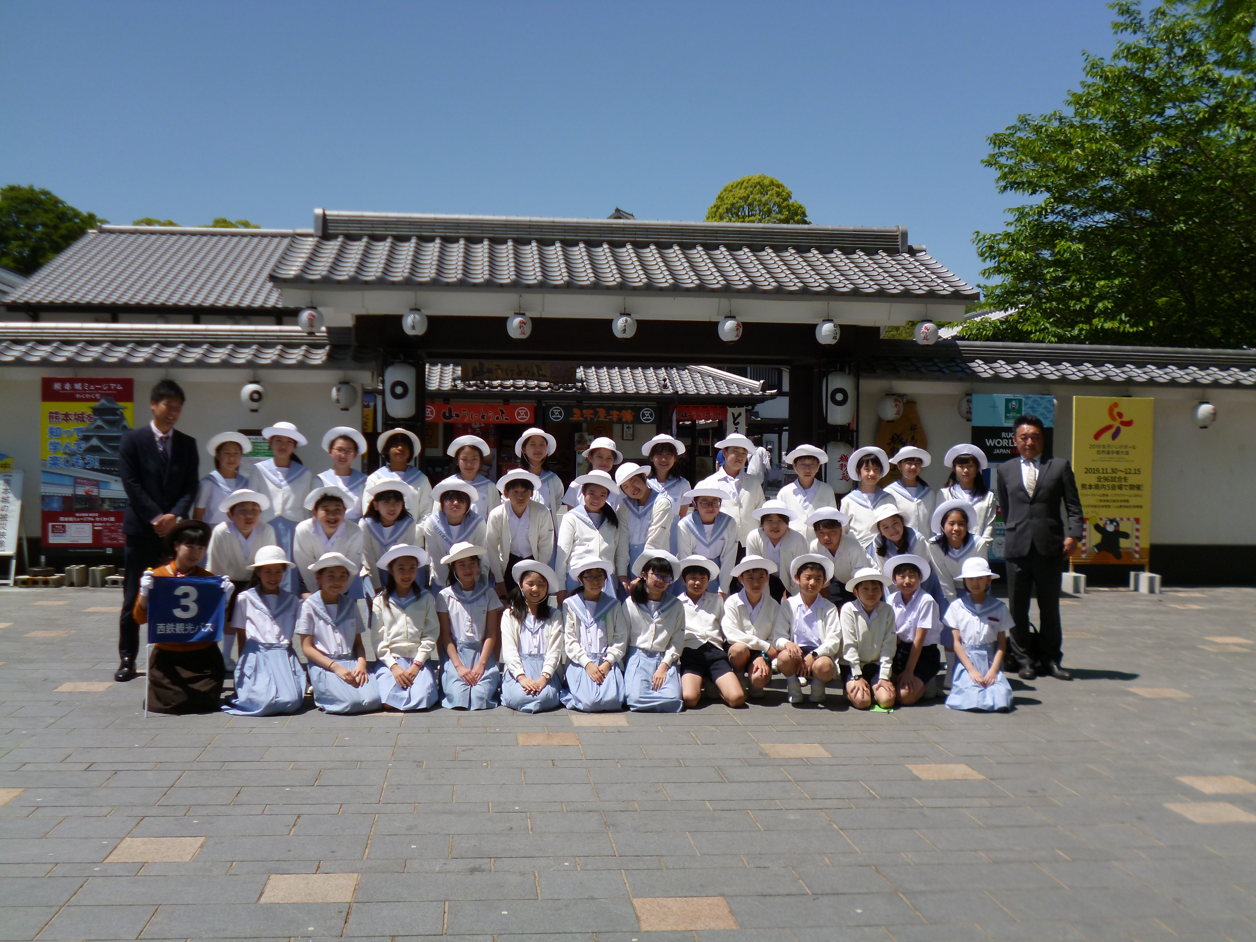 本日から3泊4日の日程で、修学旅行で九州方面へ行っています。新幹線で熊本に到着後、熊本城へ。少人数のグループに分かれて、ガイドの方に案内していただきました。難攻不落と言われた熊本城のつくりや、3年前の地震の被害について教えていただき、子どもたちは、熱心にメモを取りながら聞いていました。その後、熊本港からフェリーで長崎県の島原港へ。普段経験することのない、横揺れや海の風に大興奮していました。