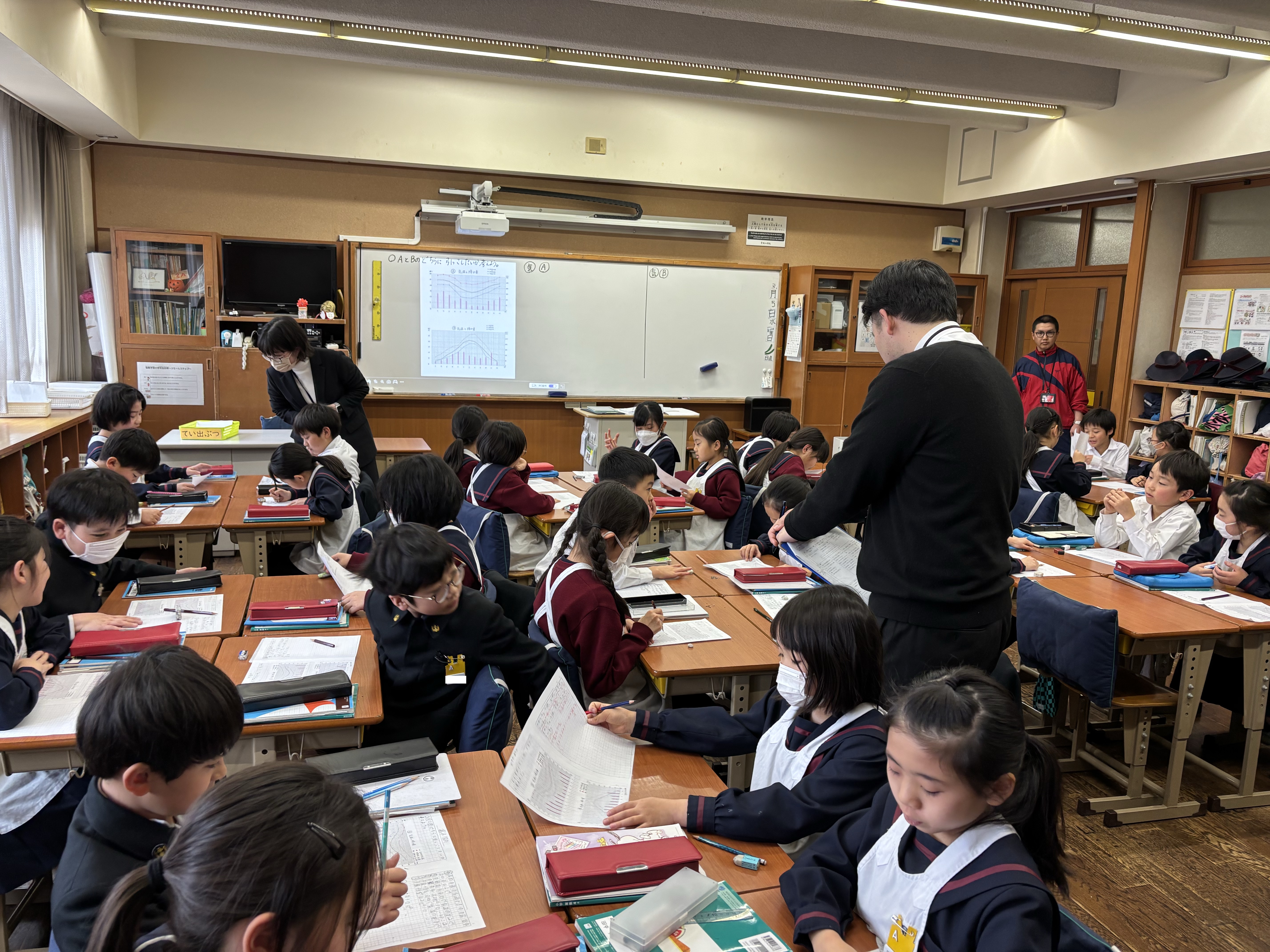 3年生の算数では、折れ線グラフと降水量のグラフをもとに、どちらに引っ越したいかを考えました。