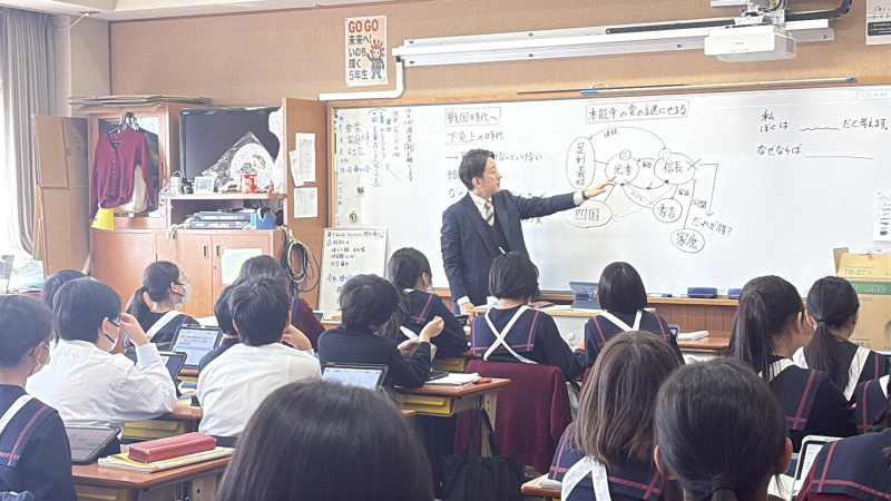 光秀以外の黒幕がいたのではないか、はたまた怨恨説なのか。子どもたちなりに考えをまとめ意見を交わしながら考えを深める時間にしてくれました。