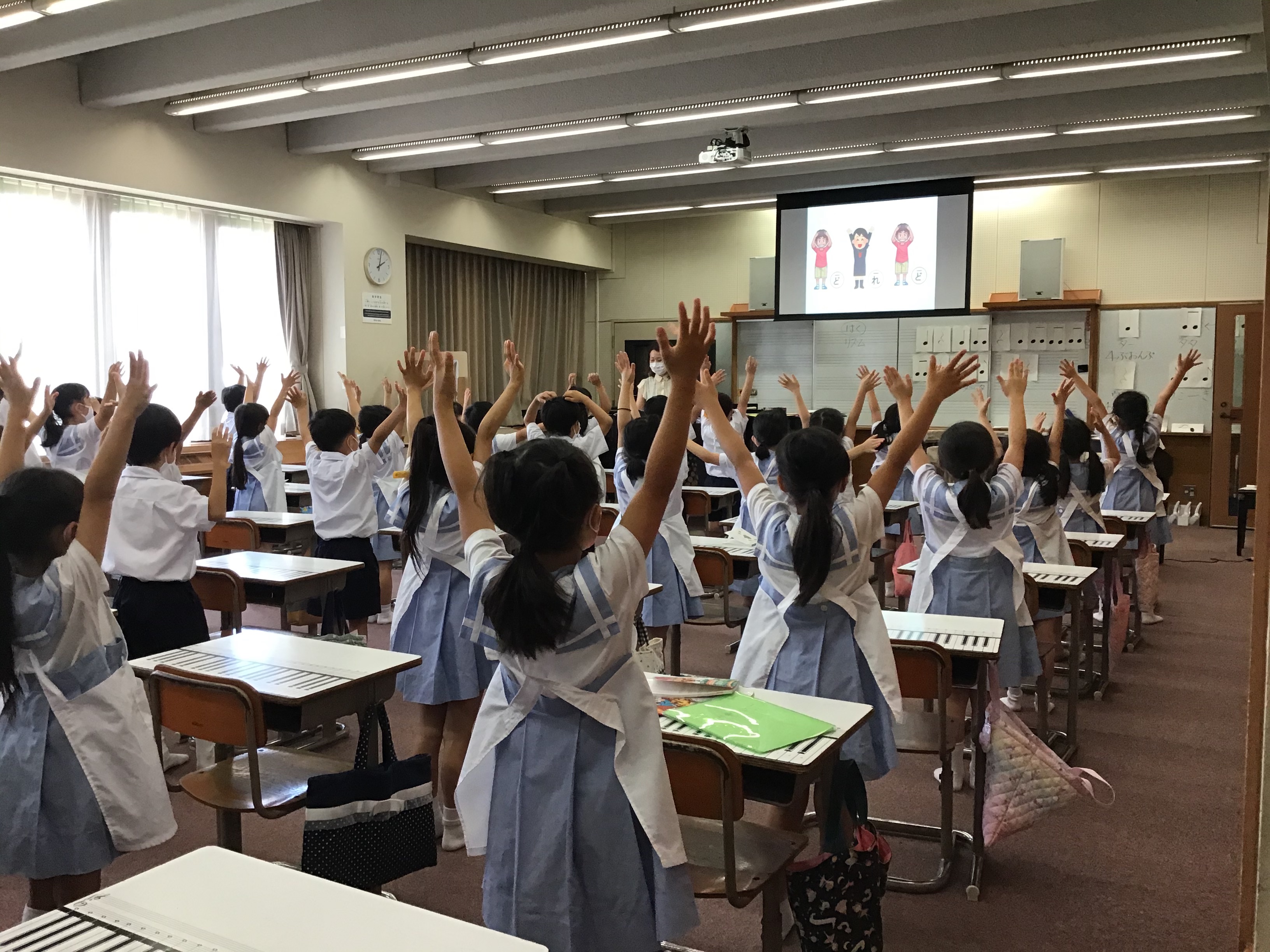 最後に「ドレミの歌」は、音の高さに合わせた体操をしながら、体全体を使って歌いました。