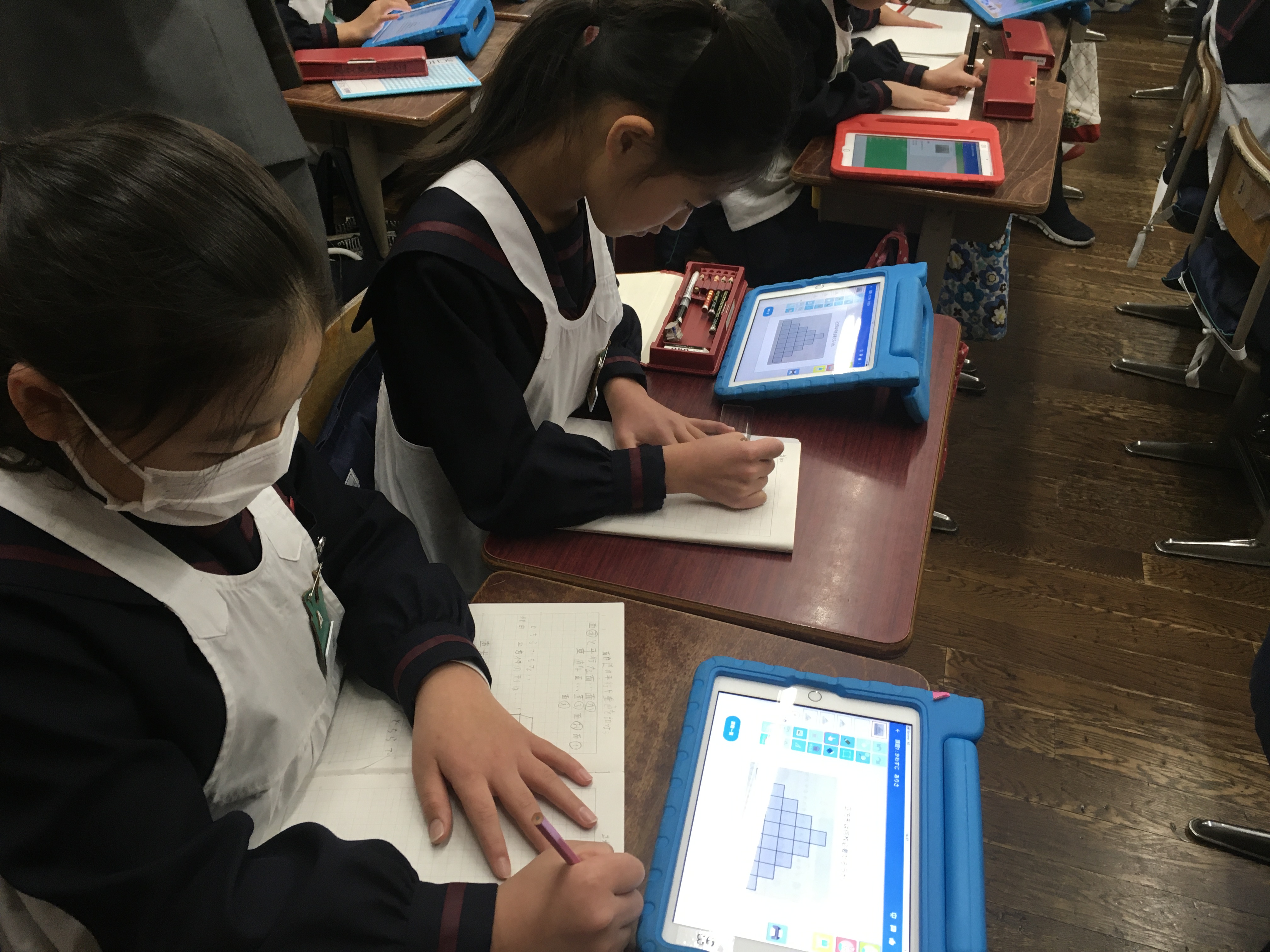 4年生の算数では、タブレットを使い、問題解決型の授業を行ないました。