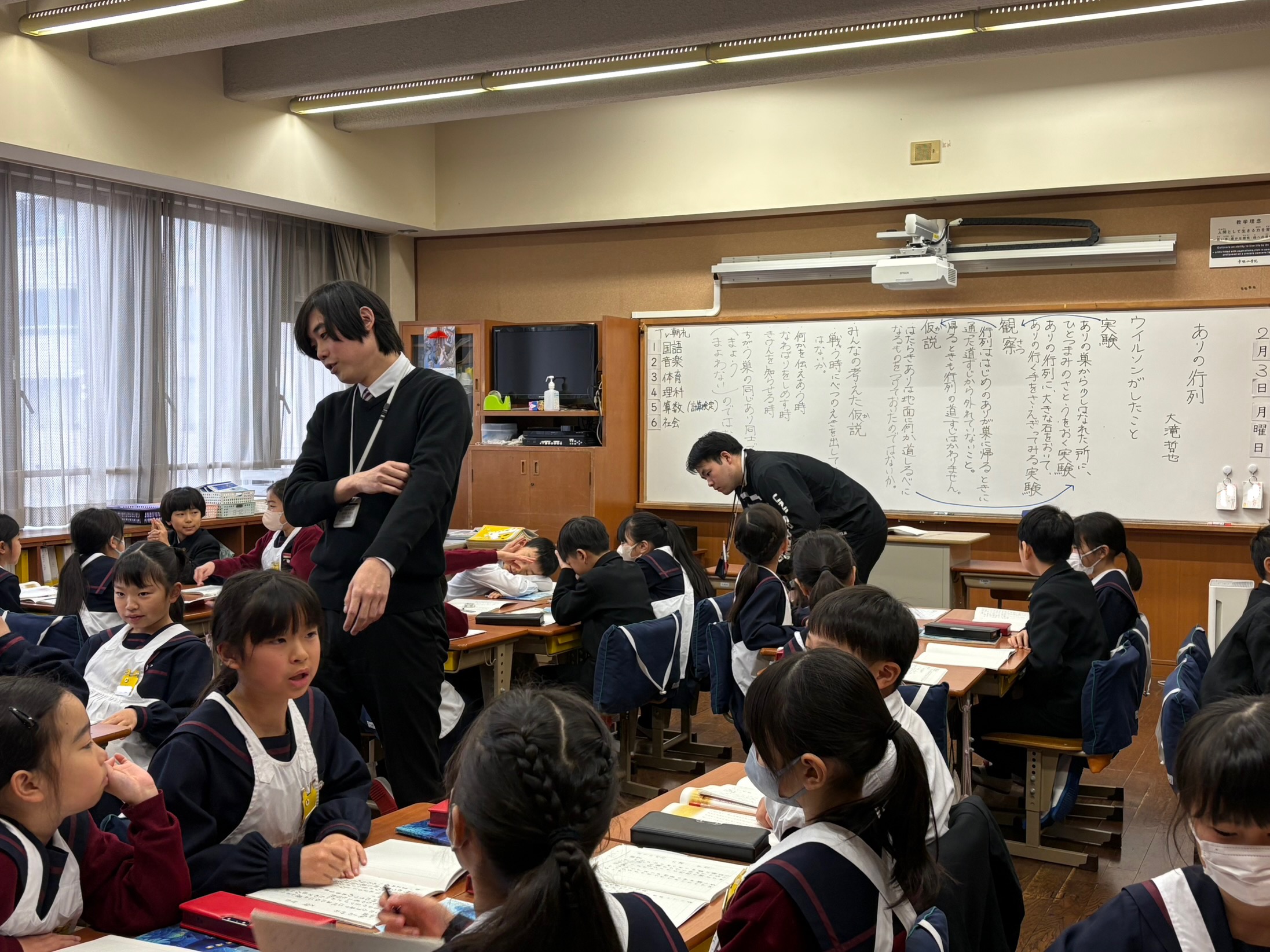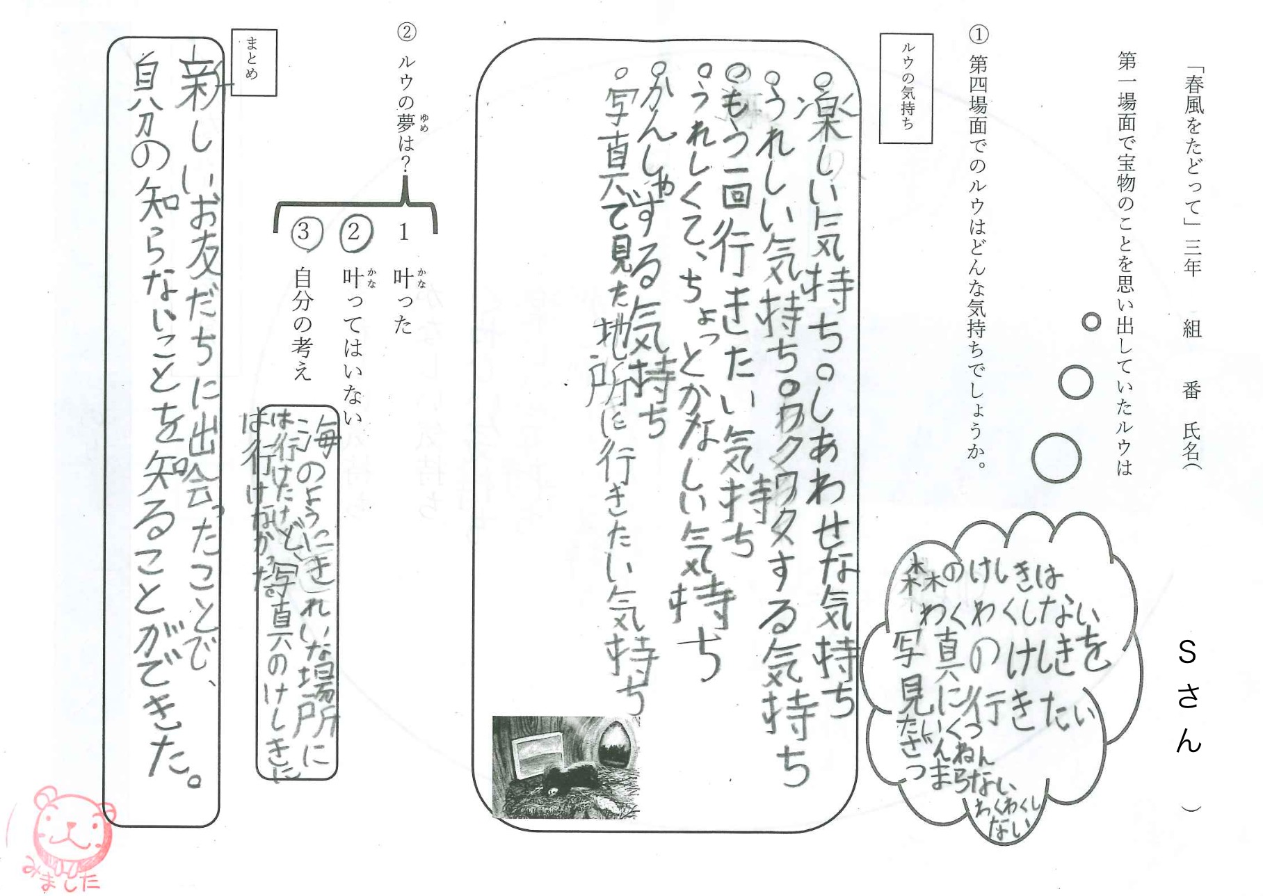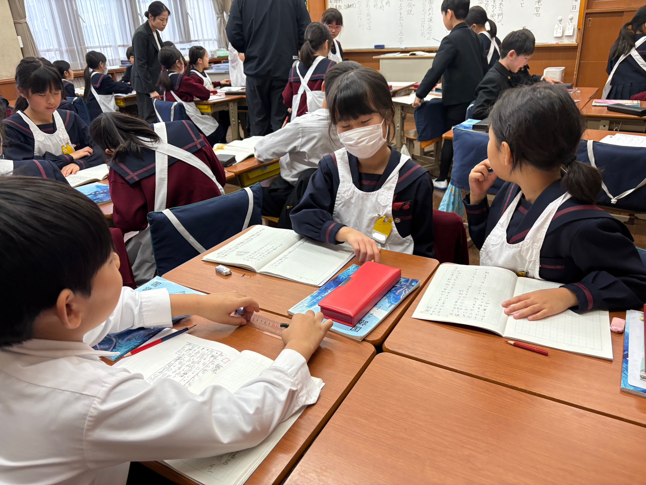 3年B組にて国語科「春風をたどって」の単元で研究授業を行いました。 場面ごとに登場人物の心情が変わっていく物語で、子どもたちは文章の叙述を元に各場面で話し合いを進め、登場人物の心情を追ってきました。 今回は最後の場面で、主人公の夢は果たして叶ったことになるのかどうなのかということについて話し合いをしました。 それぞれの意見を出し合い、班で意見交換をして、みんなの思いを聞くことができました。