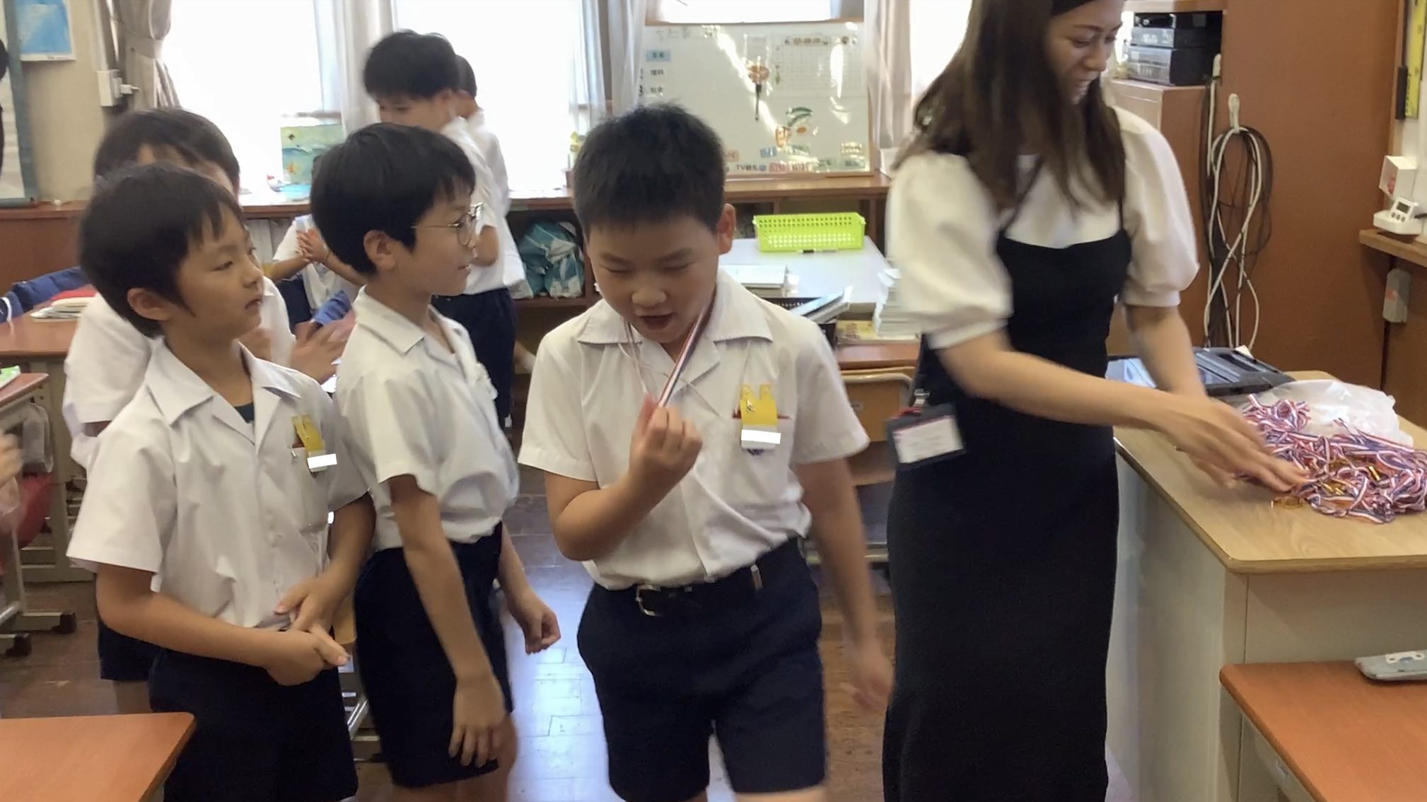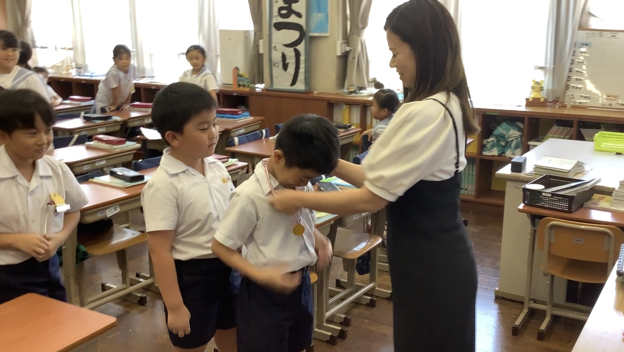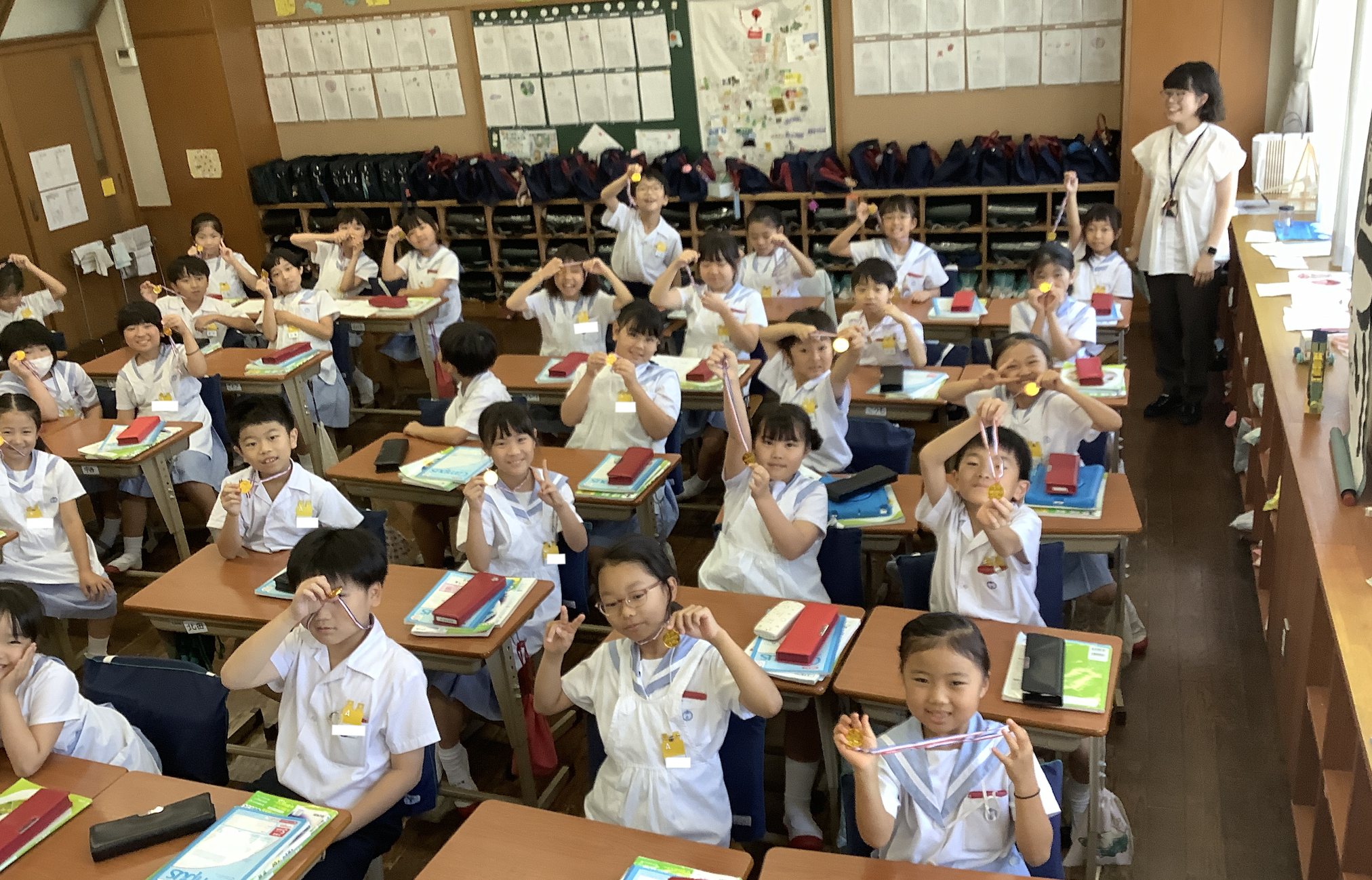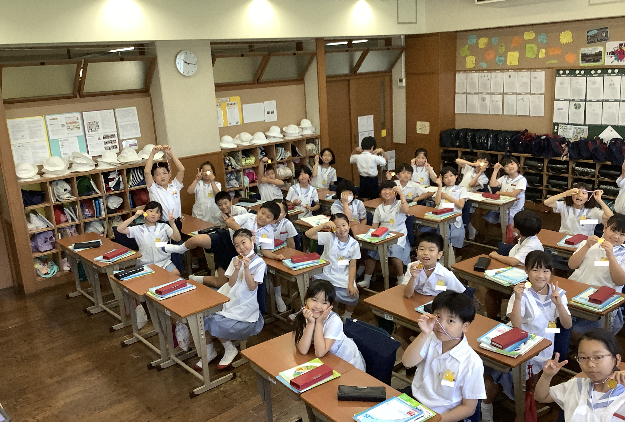 3年生は夏休みの宿題だった自由研究の発表会が終わり、全員参加賞をもらいました。