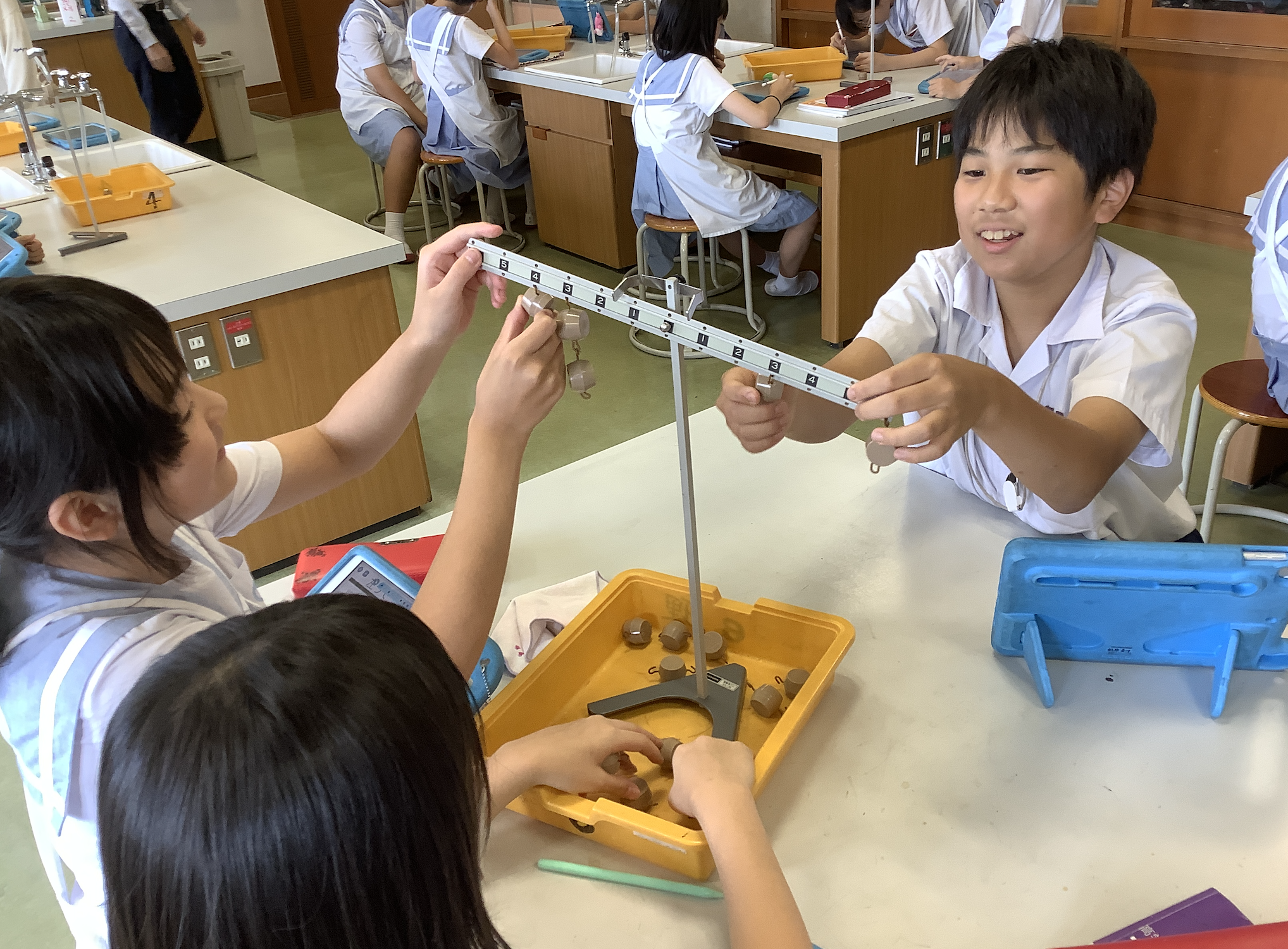 今回は班に分かれて、てこのつり合いについて実験をおこないました。