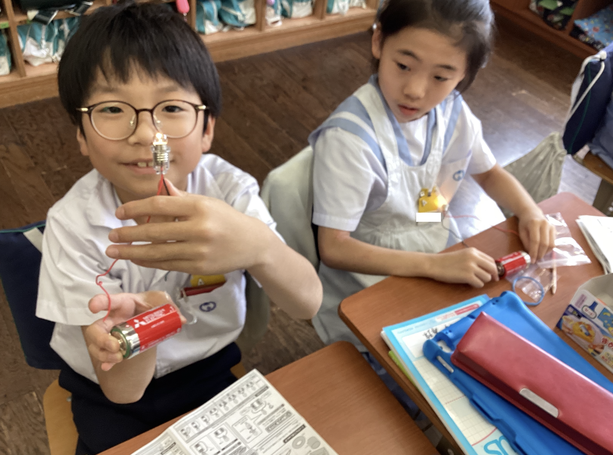 子どもたちは、豆電球に明かりがつくと嬉しそうに、豆電球を見せてくれていました。