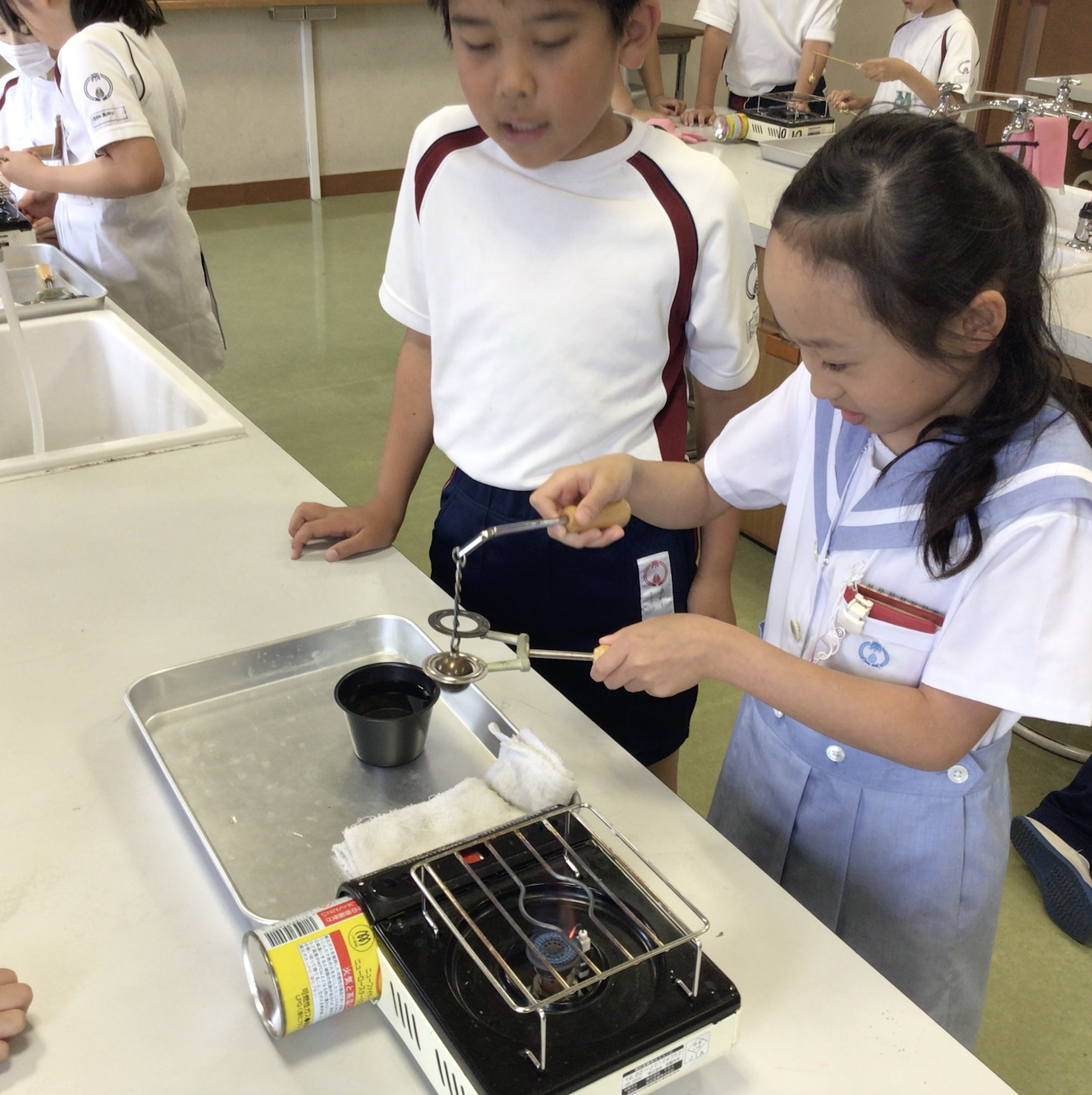 火を扱う危険を伴う実験であるため、真剣な眼差しで実験をおこなっていました。