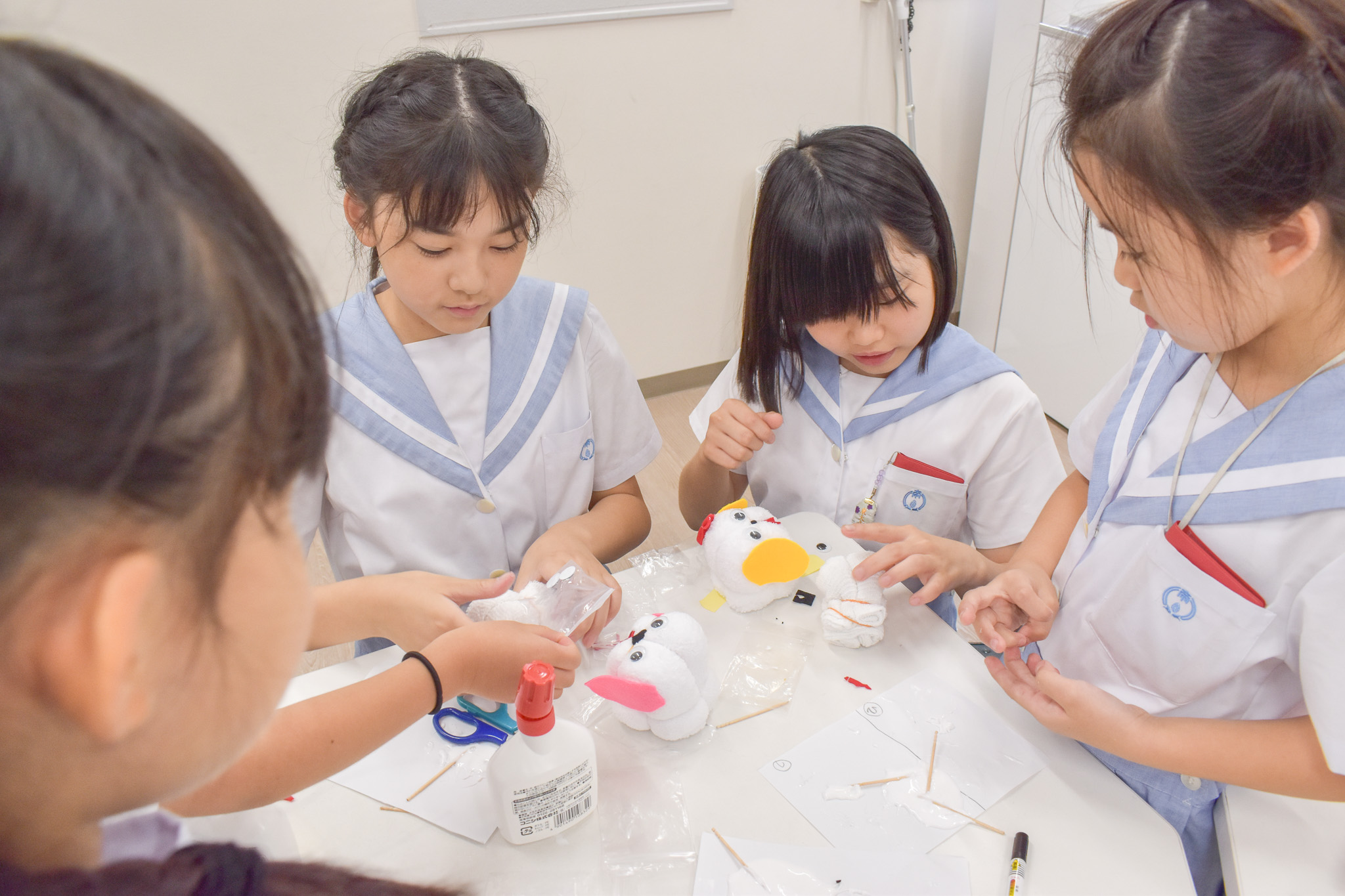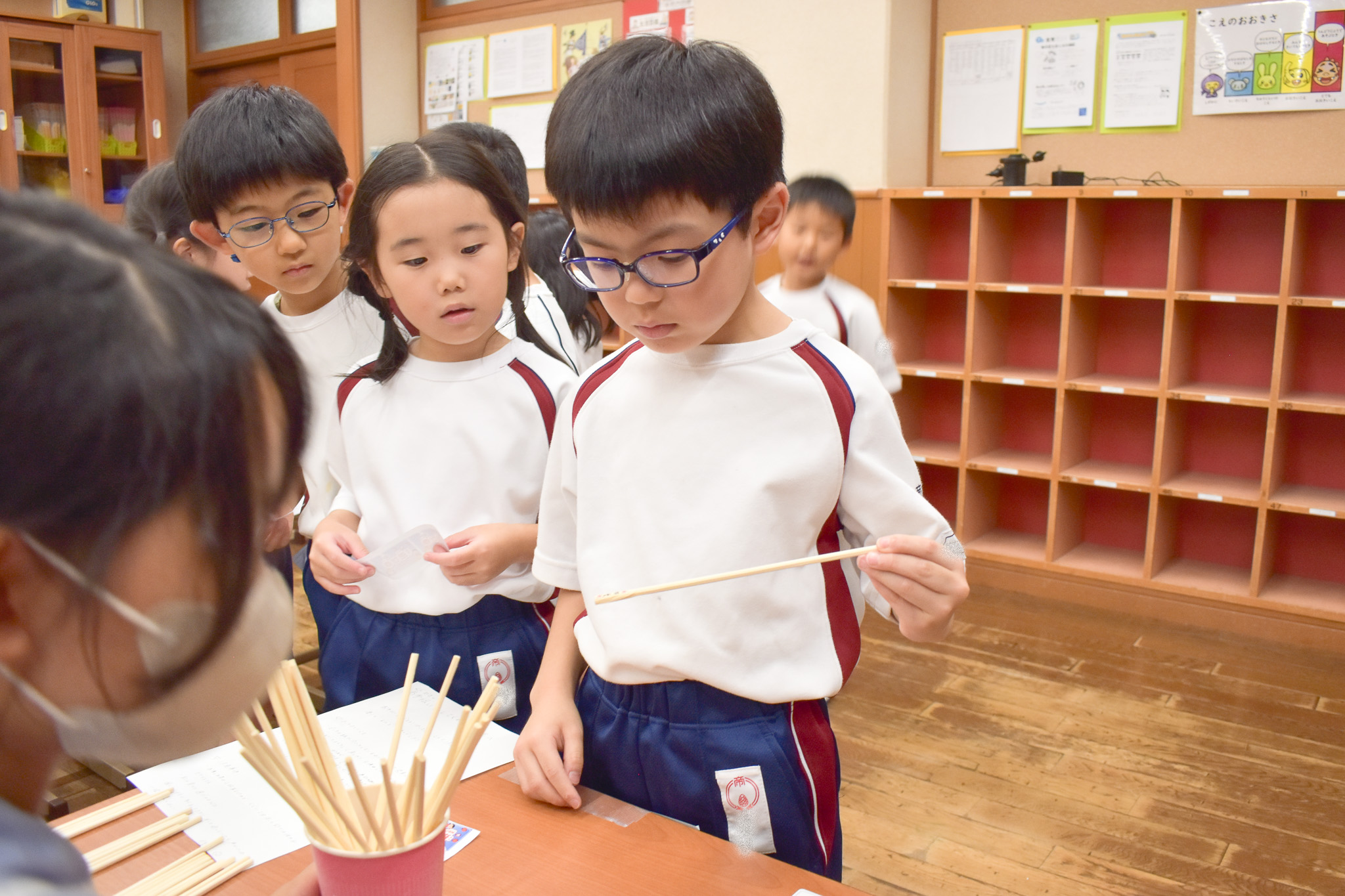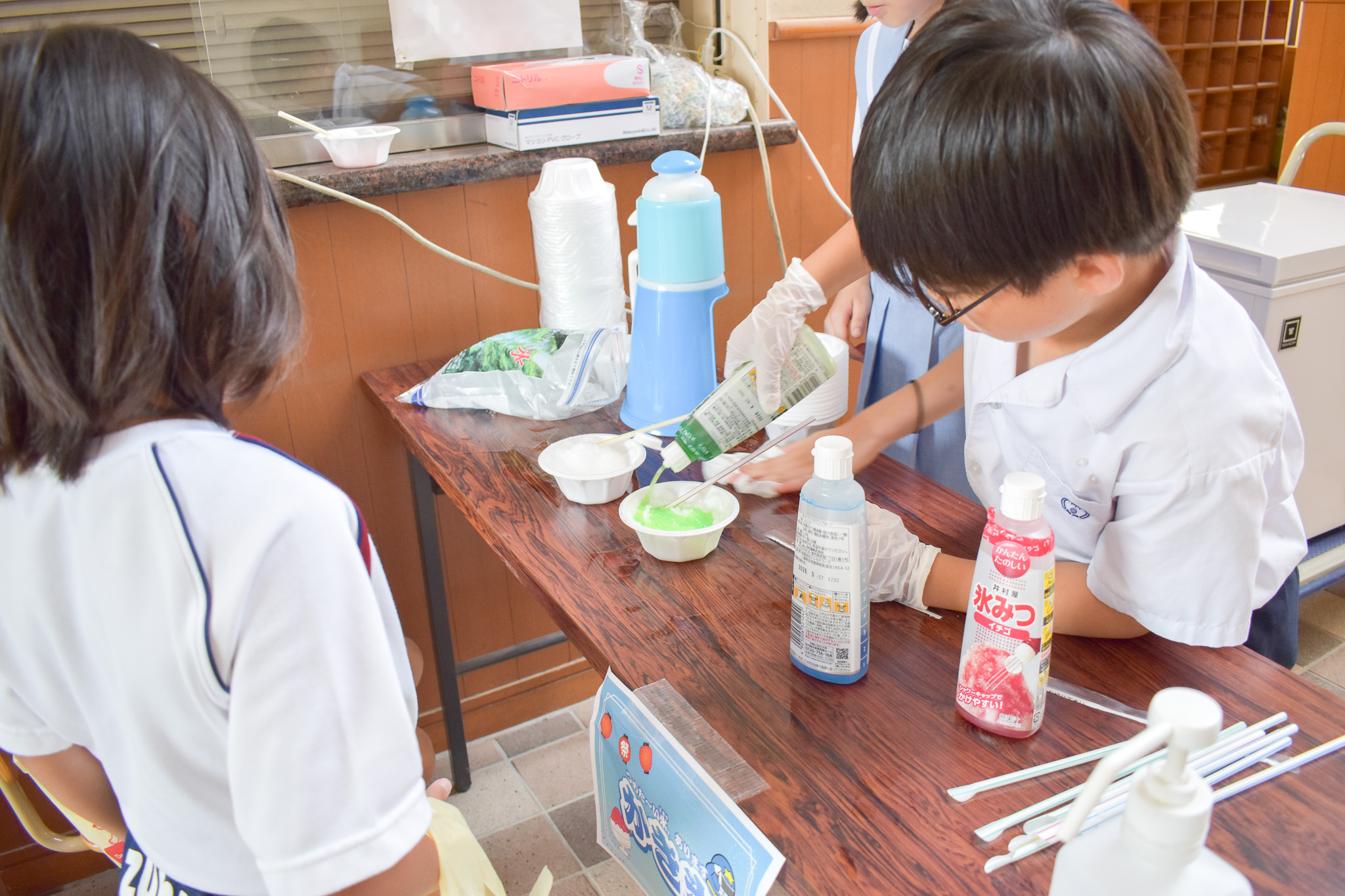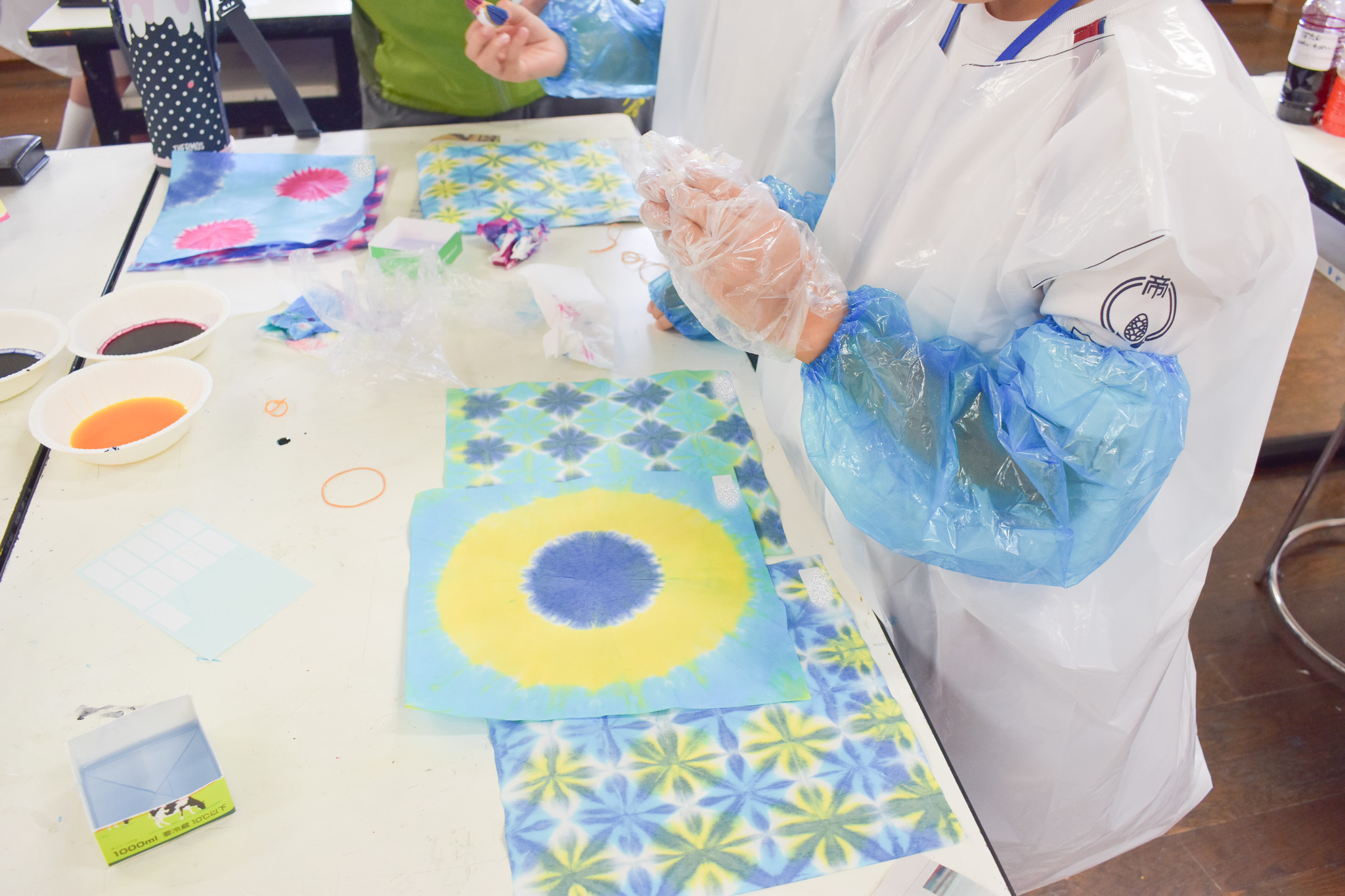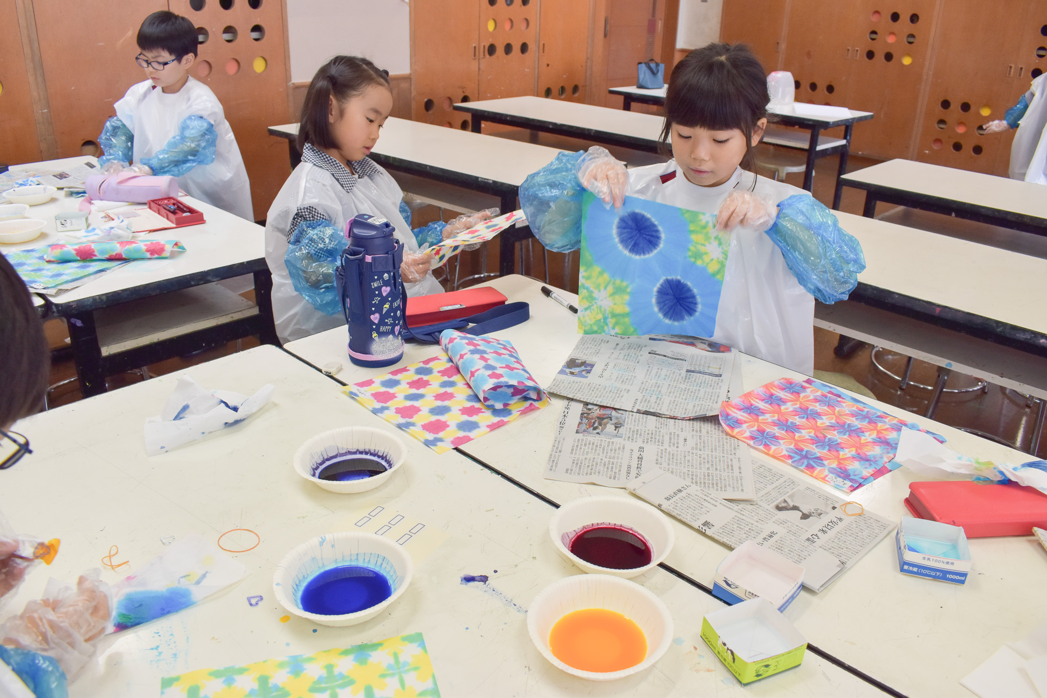今日の午前におこなった図工では「和紙の折り染め」をしました。