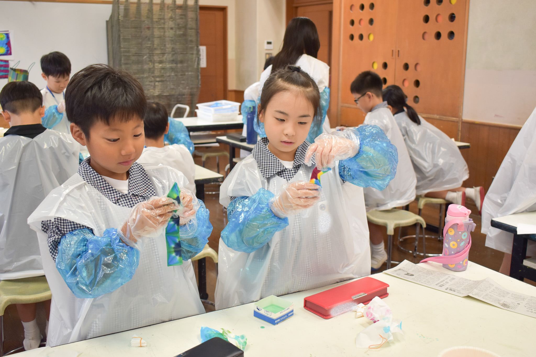 色のつき方・仕上がりは和紙を広げるまでわからないので「どんな感じになるのかな?」とドキドキしながらつくっている子どもたちが多かったです。