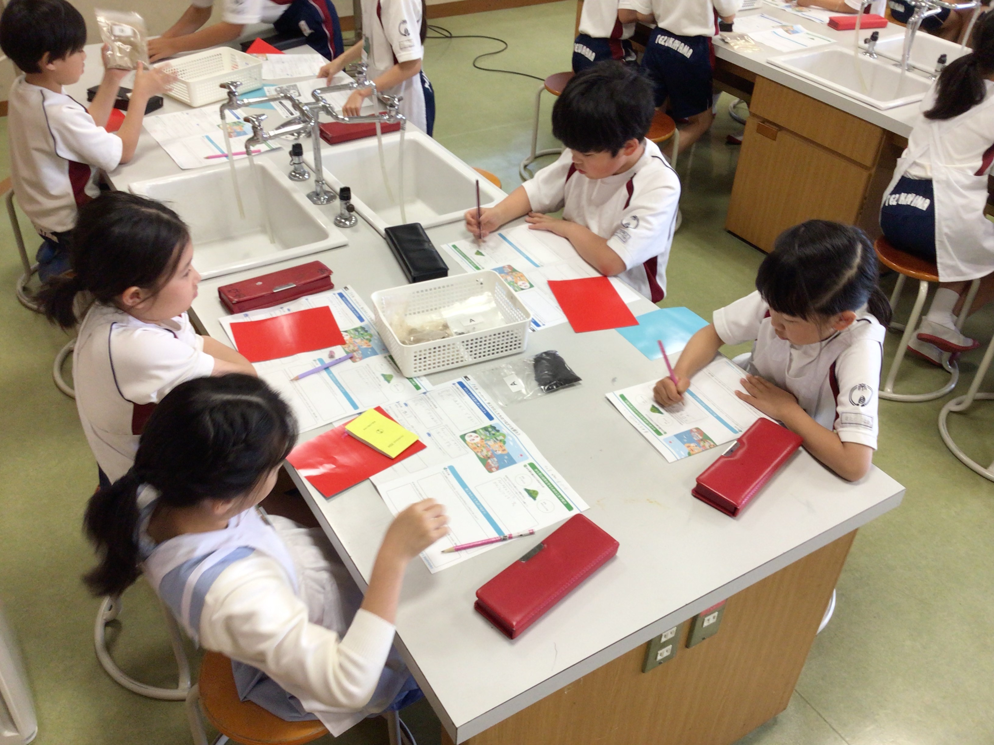 4年生では、社会で水の学習を行なっています。その一環として、サントリーの方に学校へ来ていただき、「水育」の出前授業を実施しました。4時間目がA組、5時間目がB組、6時間目がC組での授業でした。