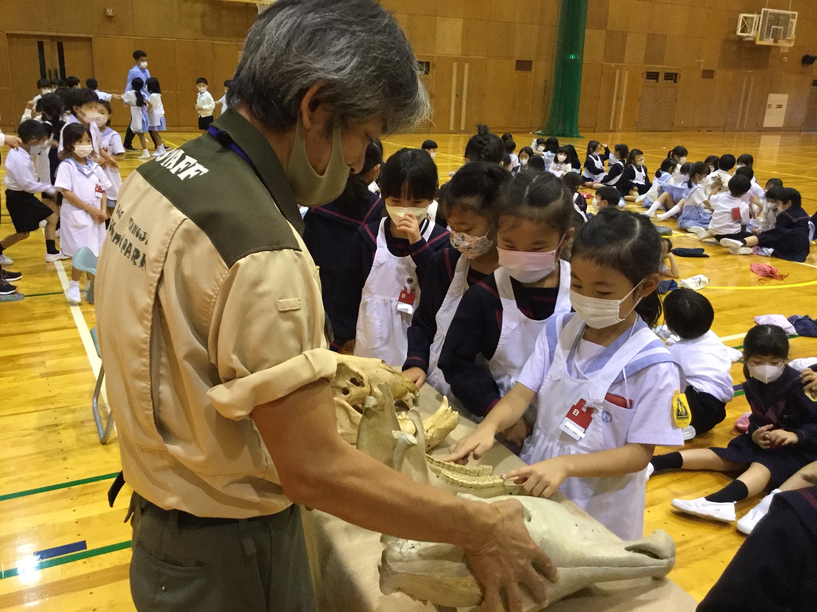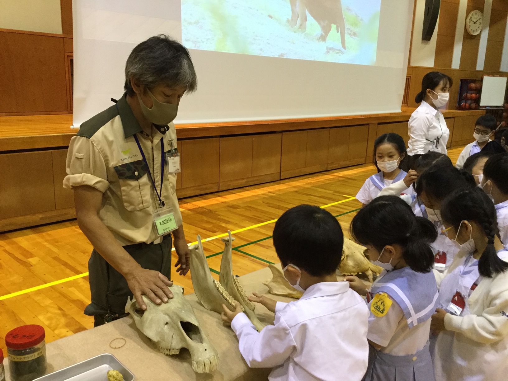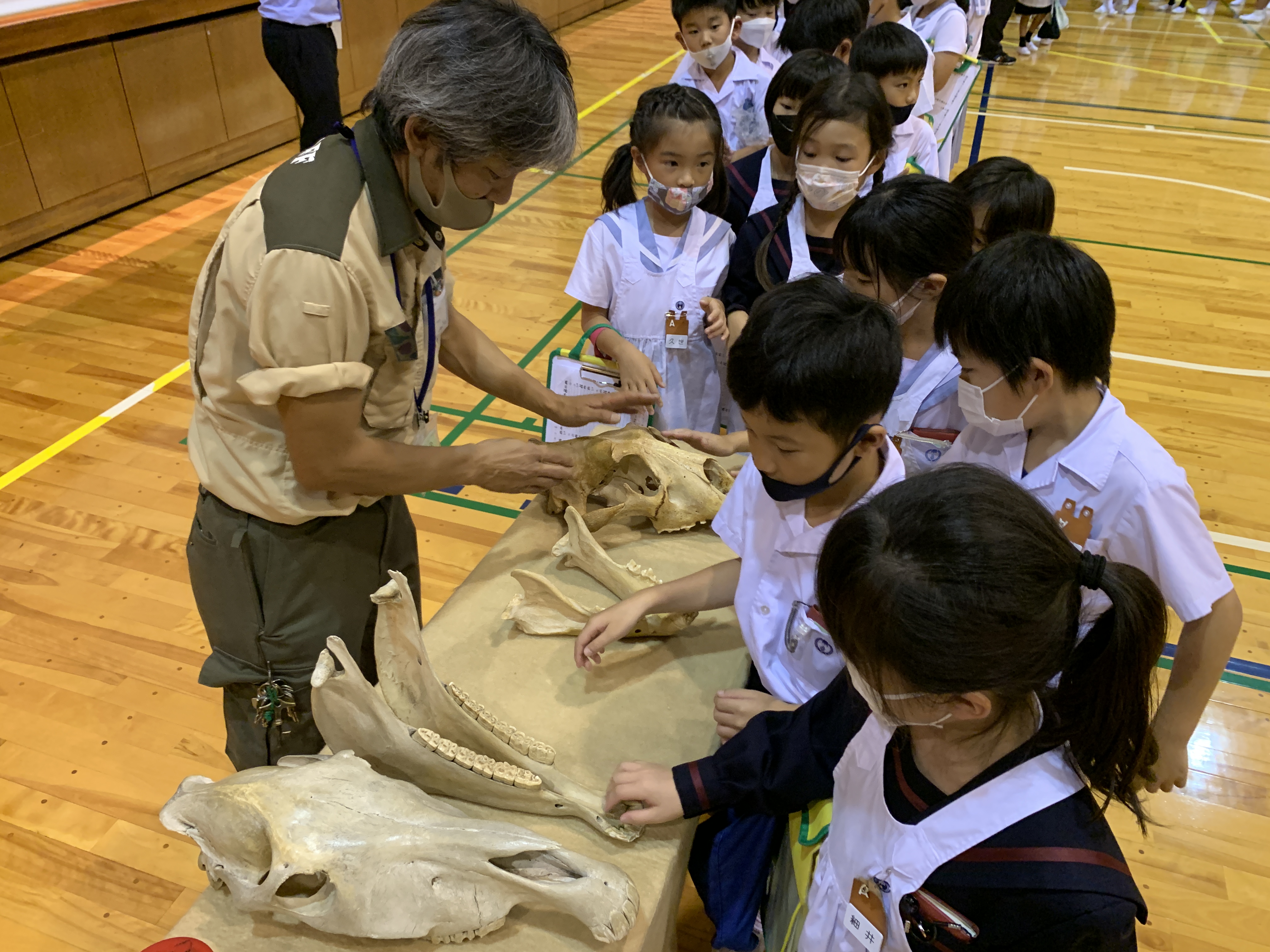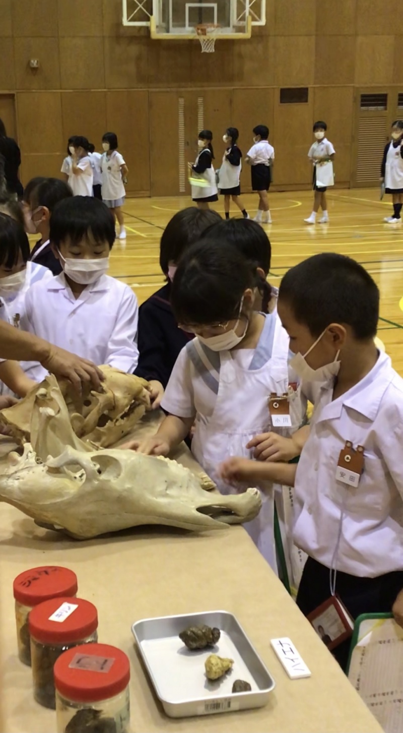 最後には、実際の動物の頭骨や処理されたウンチ標本を観察することができました。実物を触ったり、においをかいだり・・・