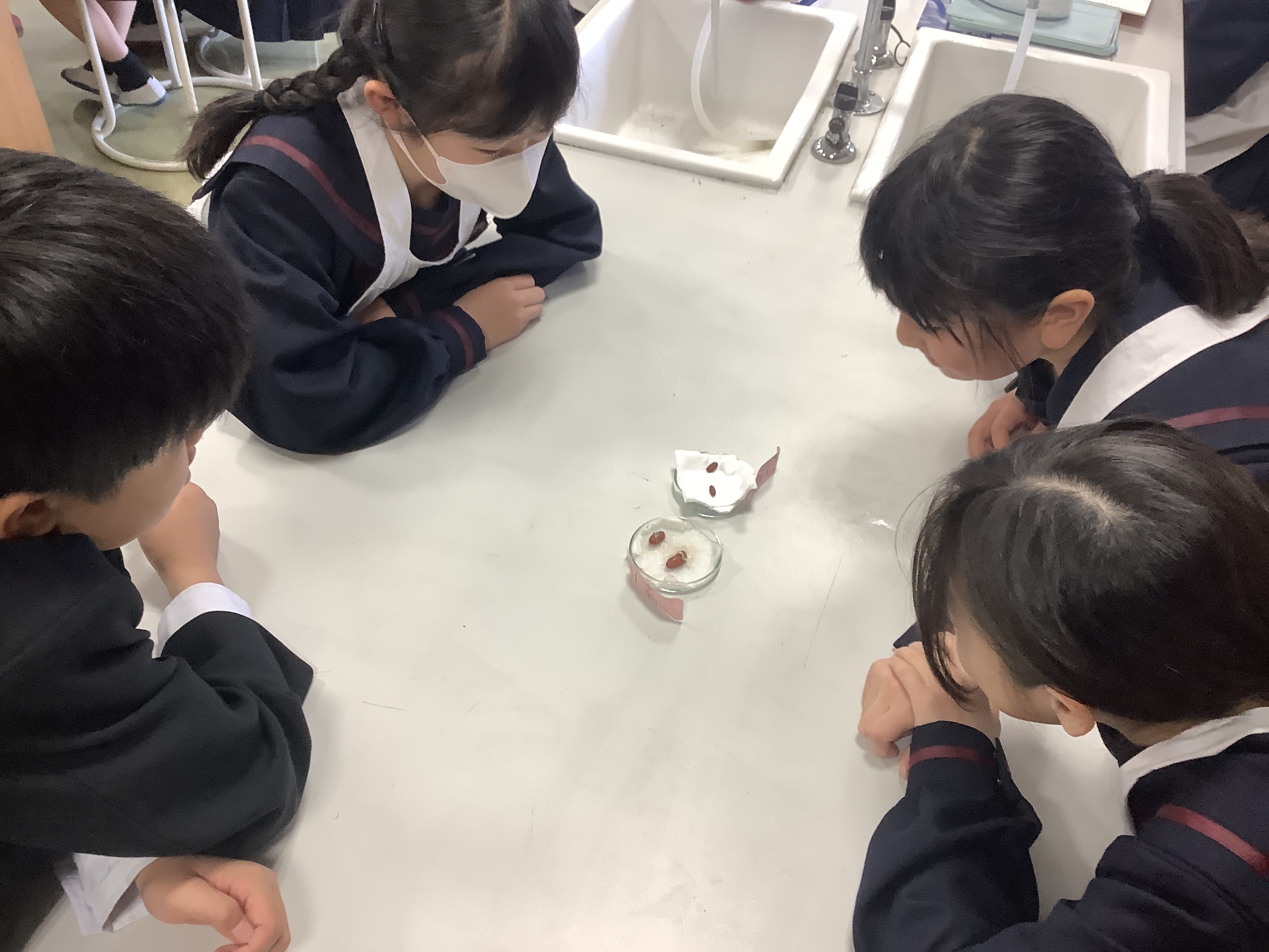 5年生理科の「種子の発芽」の学習で、発芽の条件を調べる実験を行いました。