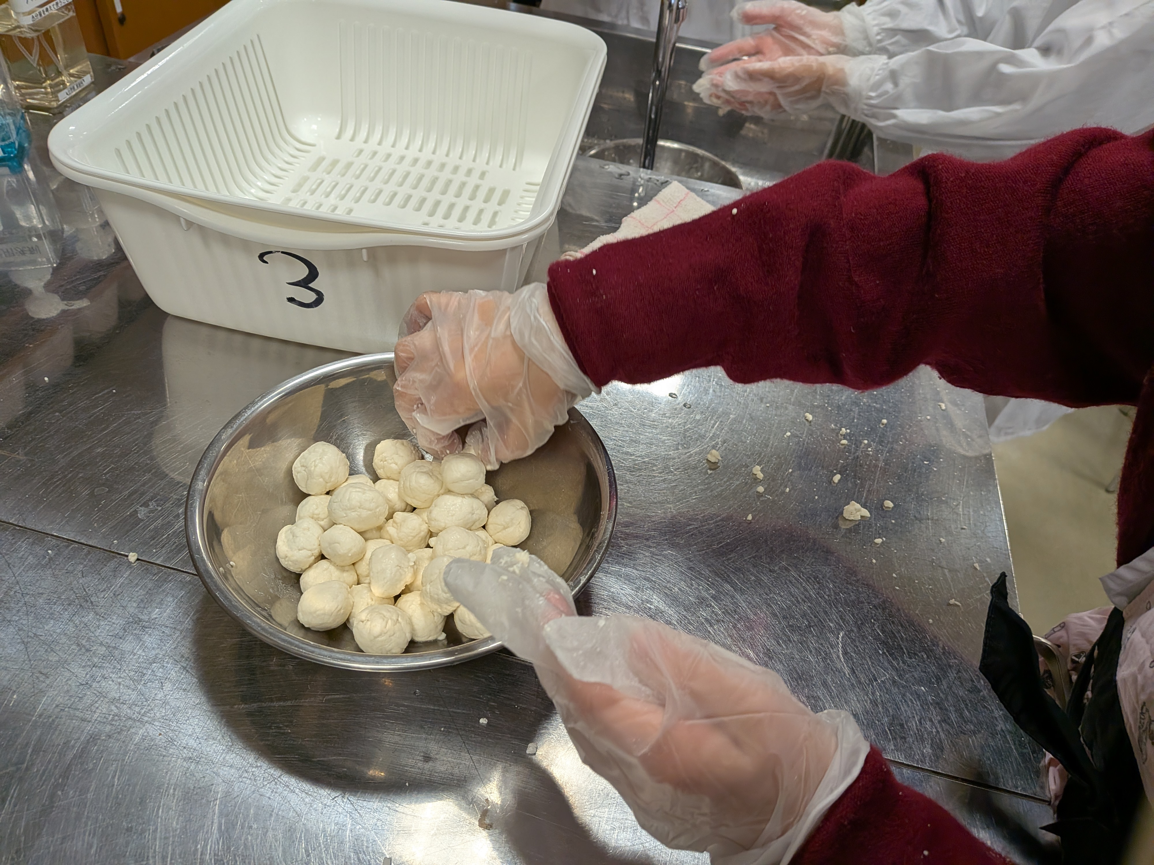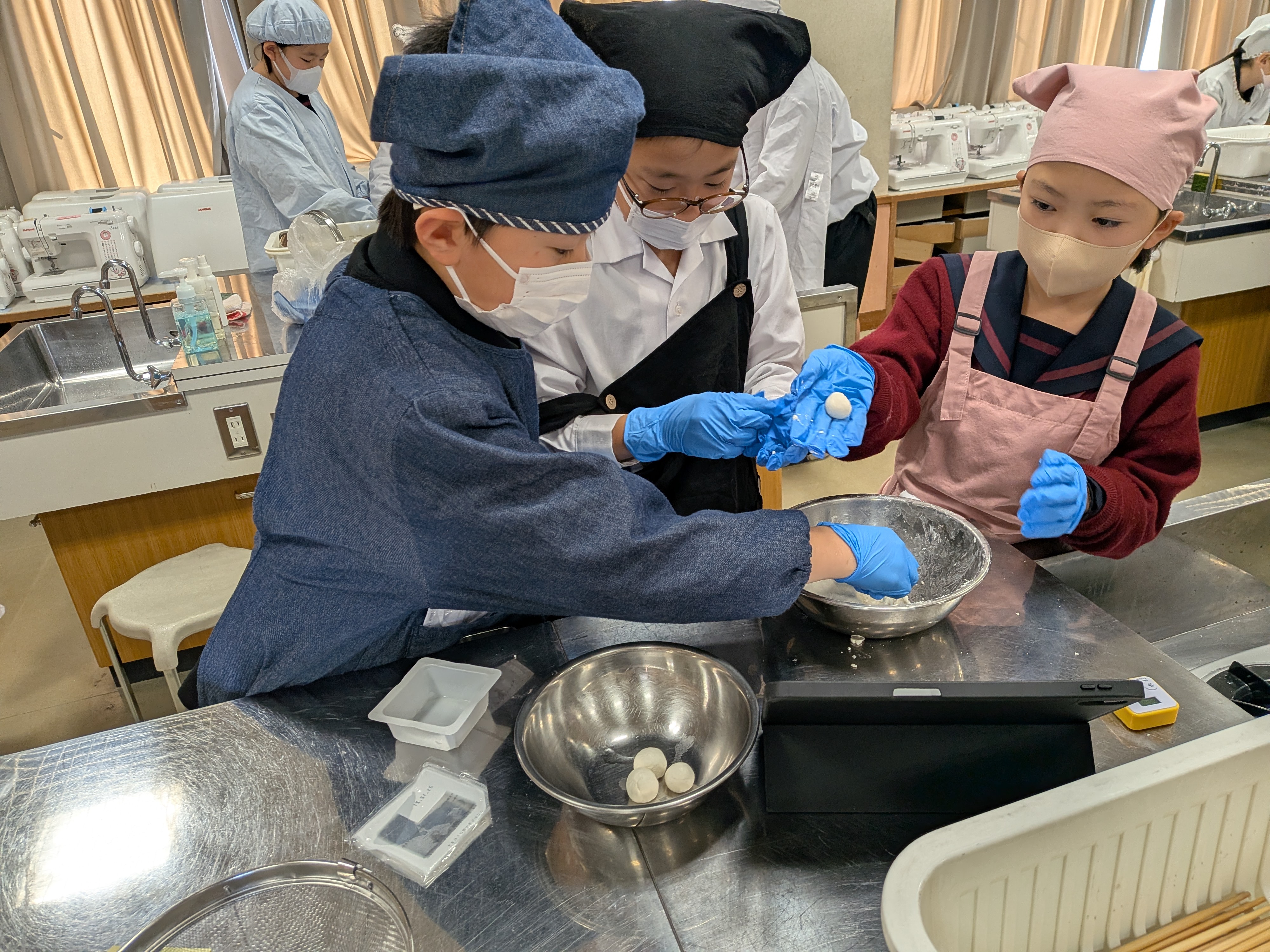 水を入れすぎて丸まらなかったり、粉が残ってしまったりとアクシデントもありましたが、45分間で調理・試食・片付けまでを終えることができました。手際のよさも、ぐんと成長しています。