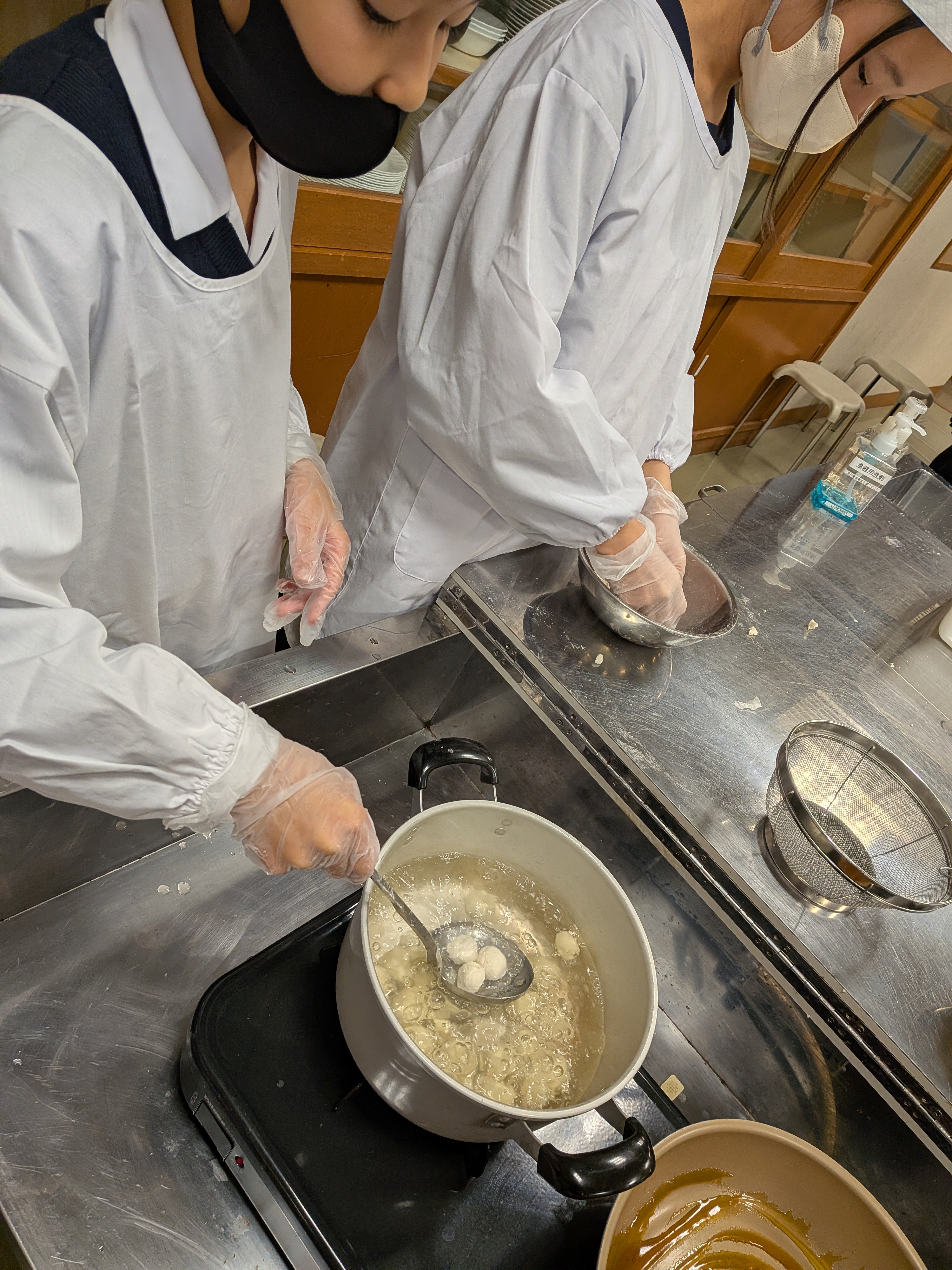 2学期の調理実習では、「とうふ白玉だんご」作りにチャレンジしました。