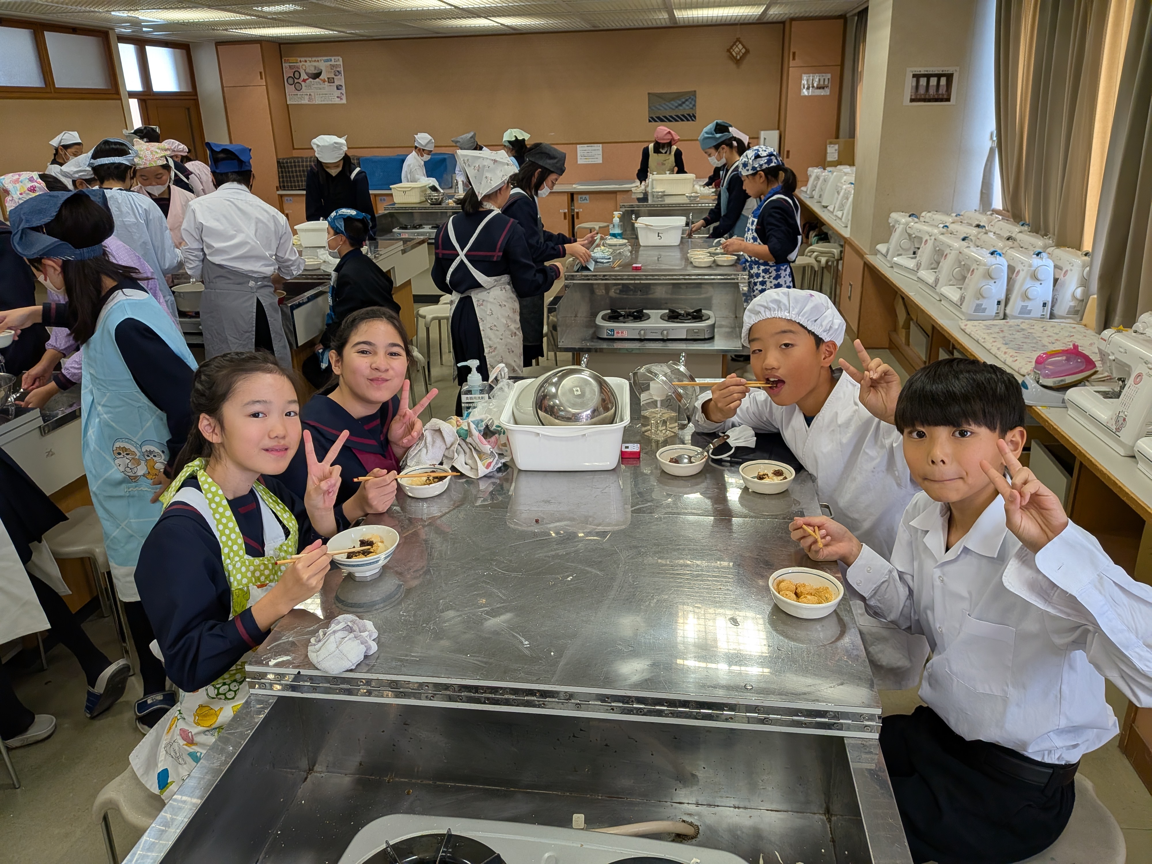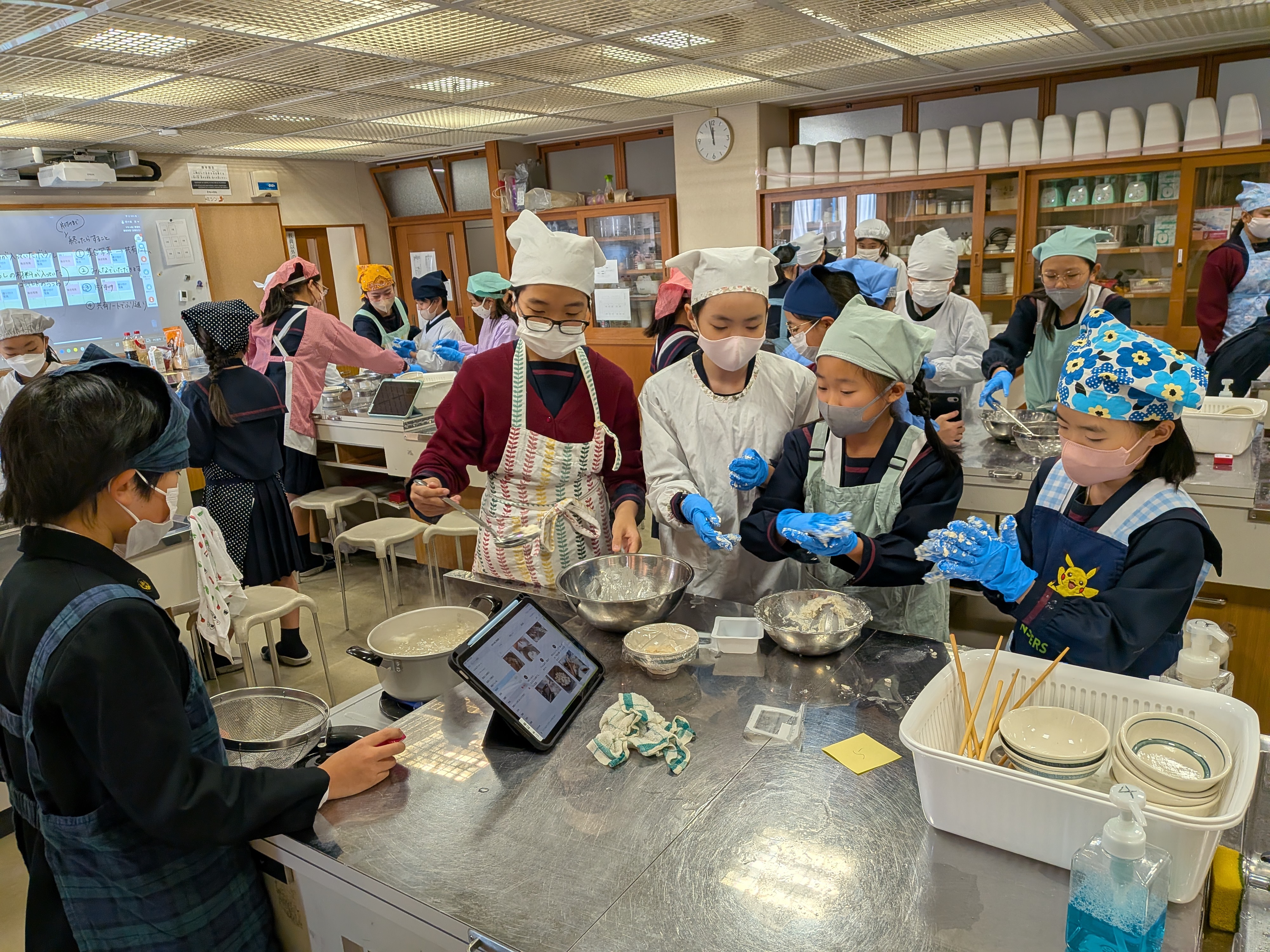 実習前には「もち、好きじゃないねんなぁ」と話していた子も、「おいしい!!」と笑顔に。「家でも作ってみよう!」「思っていた味と違った!」「もちもちしていておいしい!」などの声が聞かれました。ぜひ、冬休みの家族団らんのひとときに作ってみてくださいね。