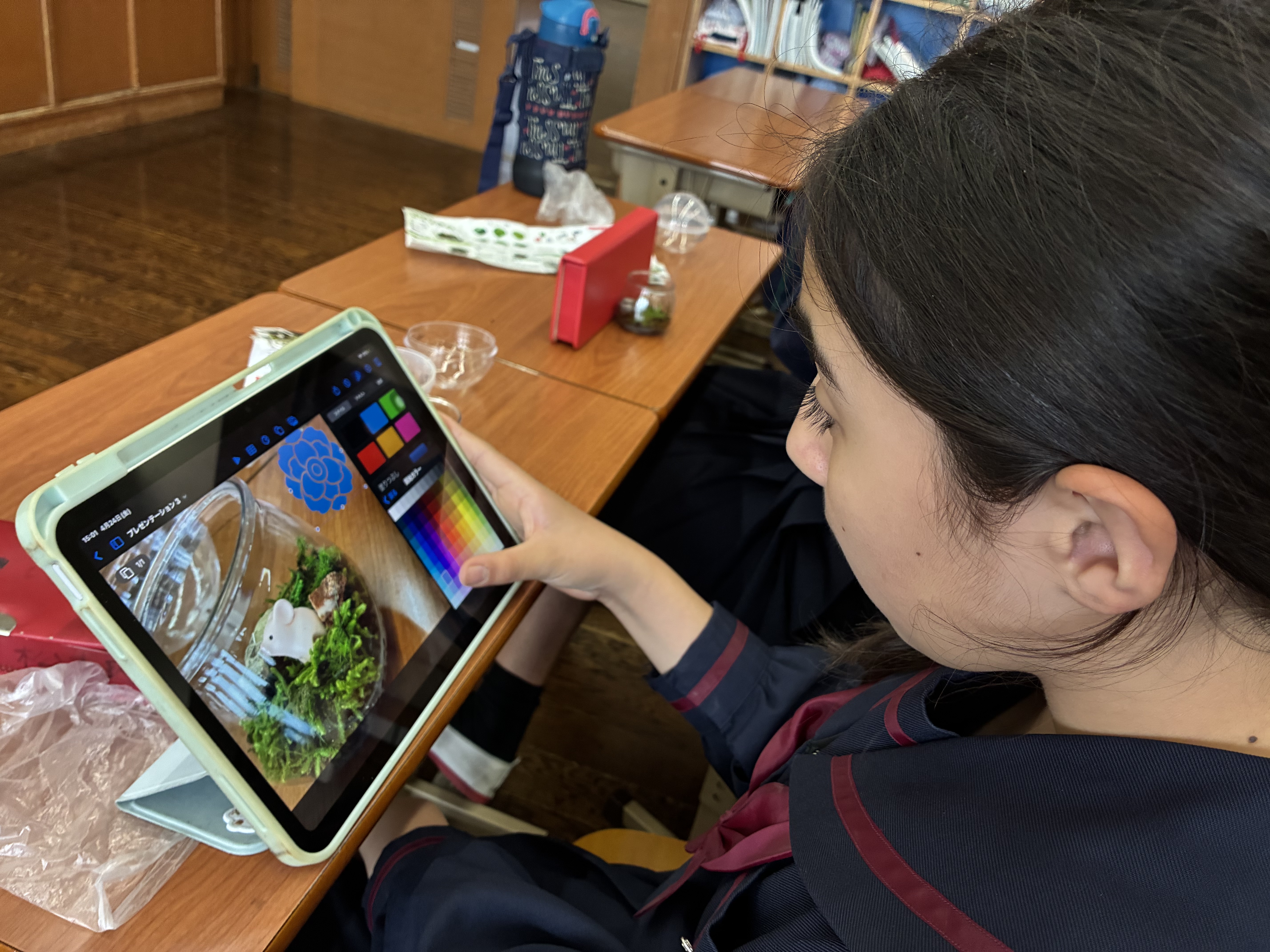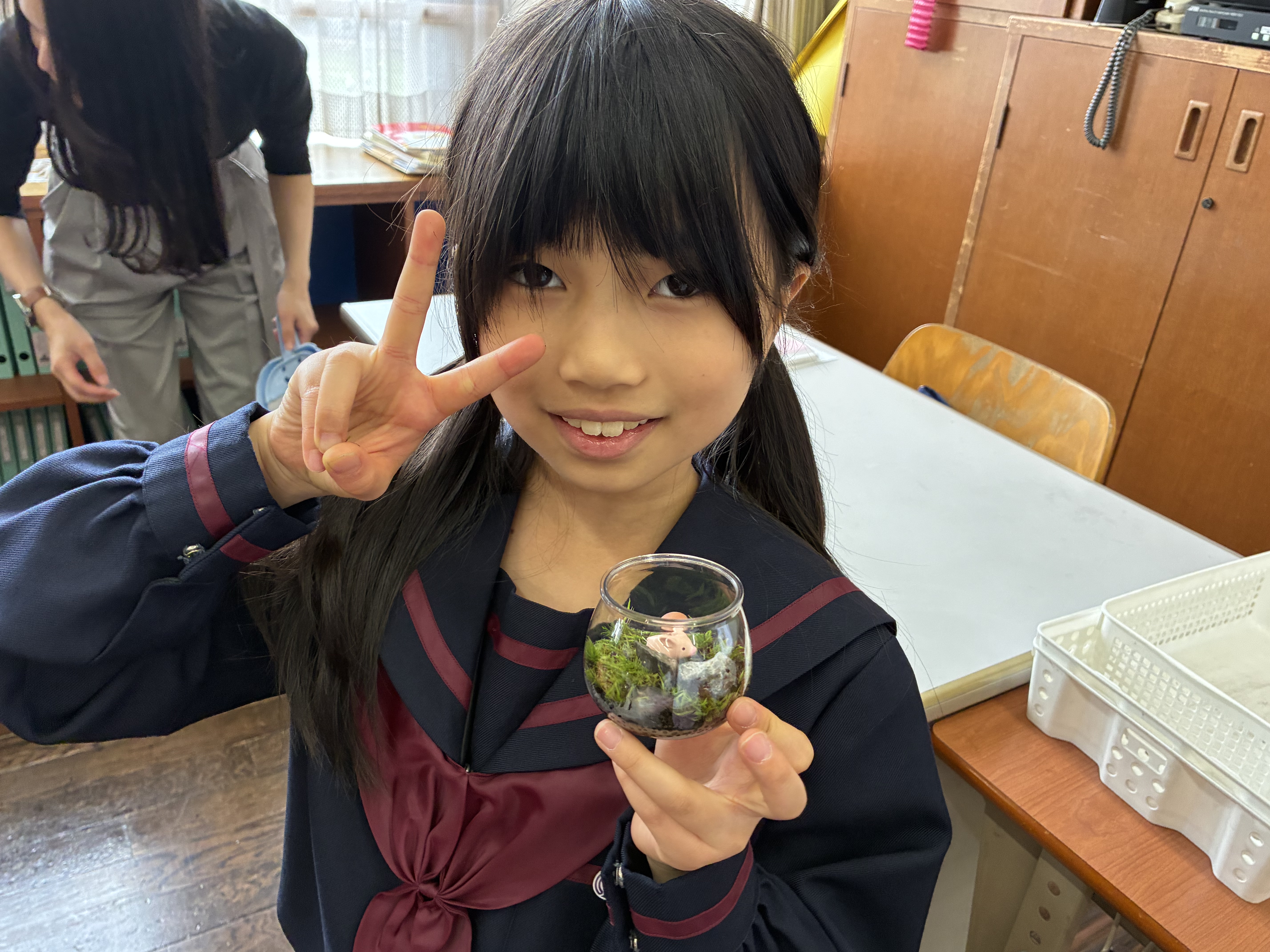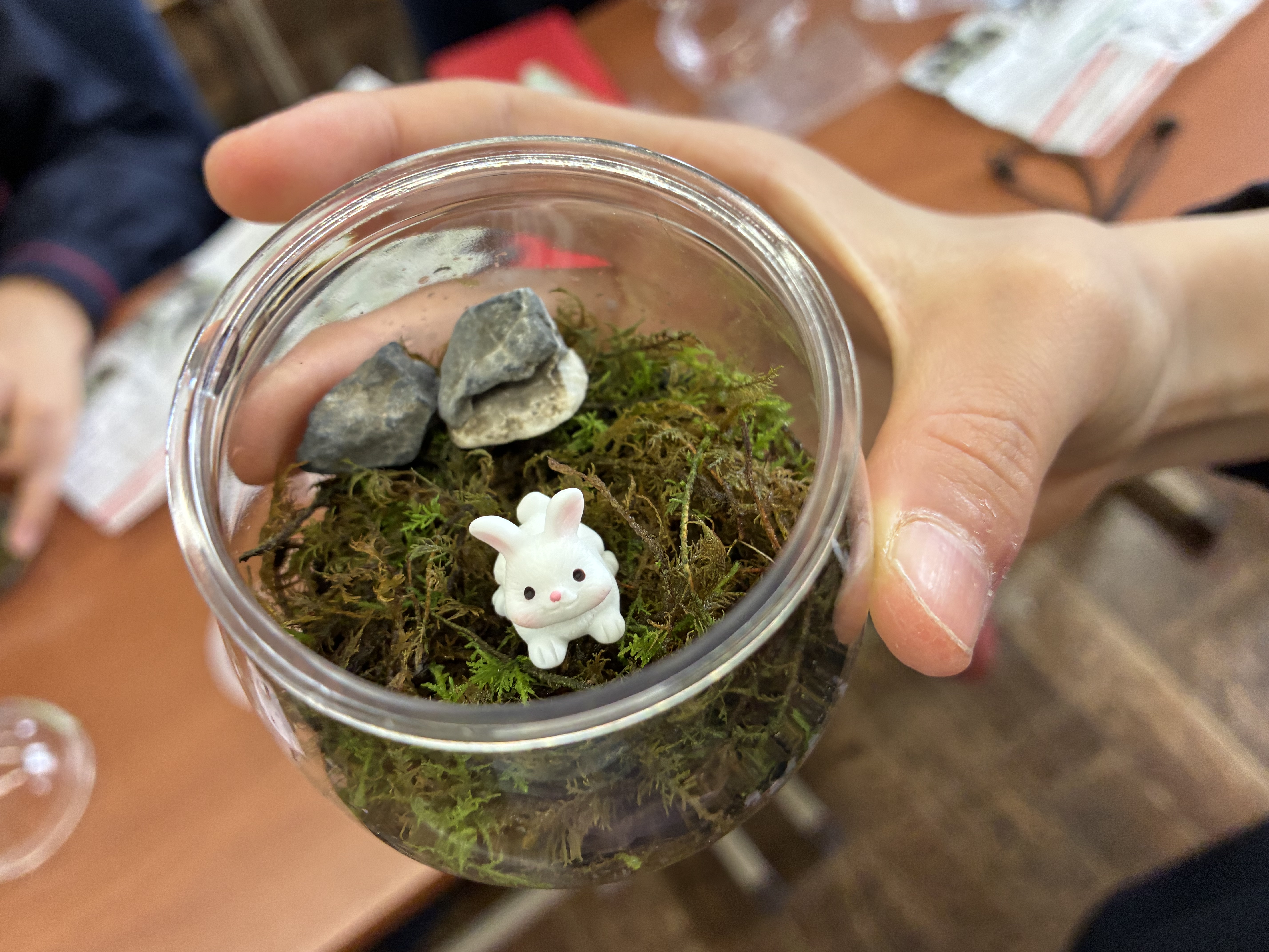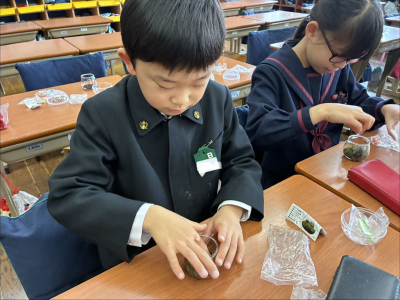 手芸調理クラブでは、「自分で作る小さなインテリア」として、カプセルコケリウム作りに取り組みました。