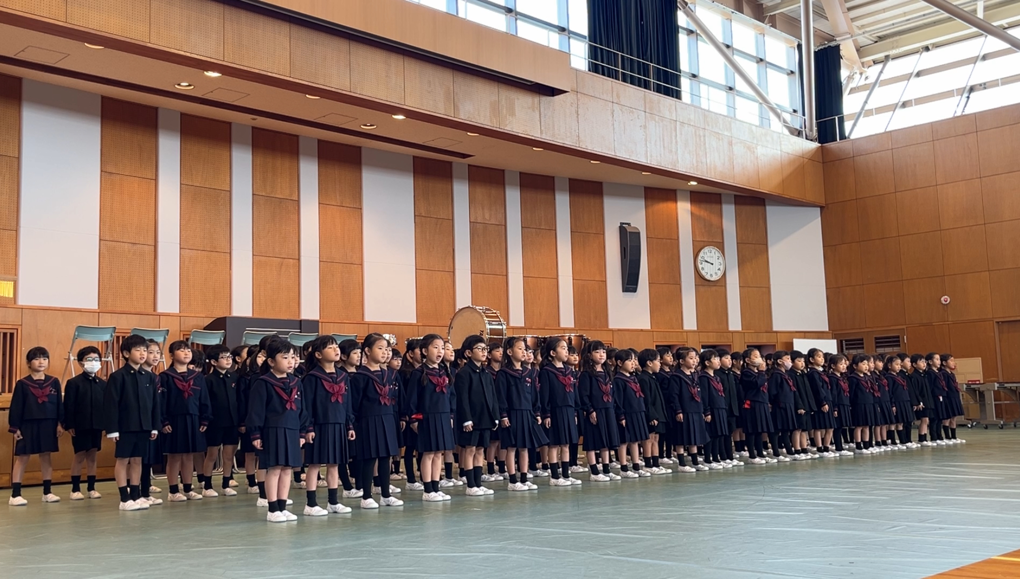 全児童で合唱をすると、アリーナはこどもたちの歌声で溢れ、力強いハーモニーが響いていました。