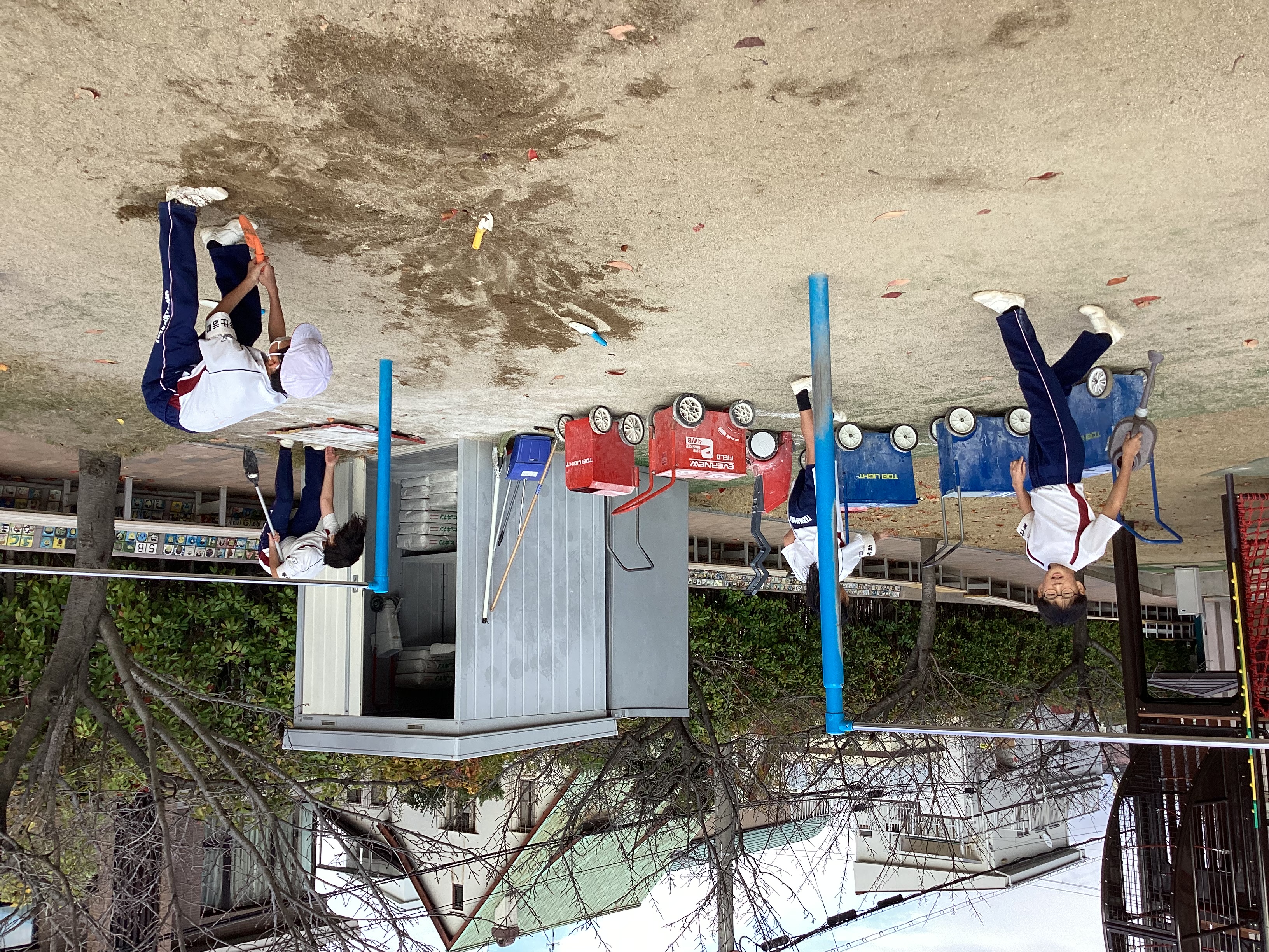 今回は普段清掃しない学校中の壁を拭き、落ち葉拾いや跨線橋の掃除をしました。