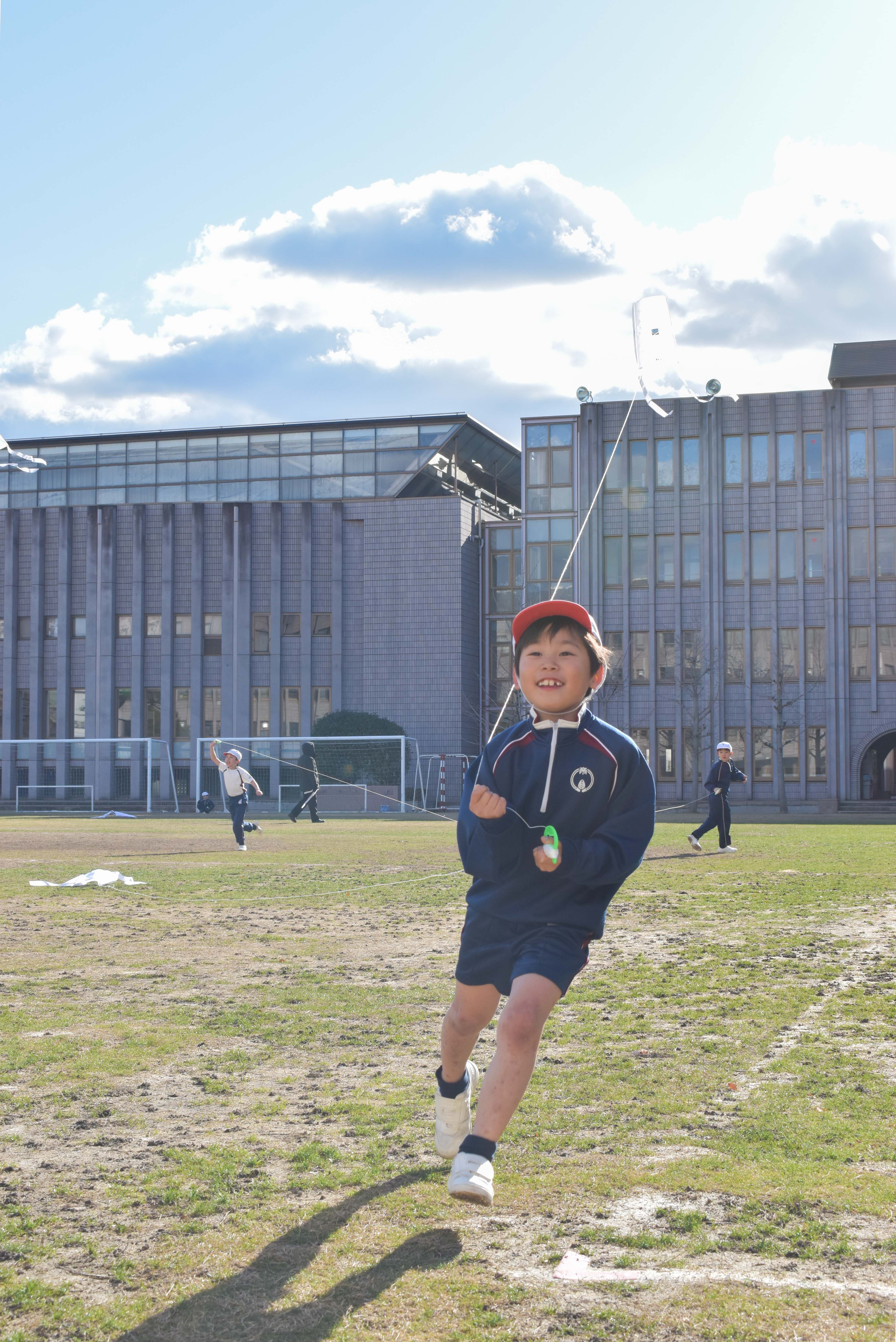 「あがれ〜!」「もっと高くあがれ〜!」と子どもたちみんな大きな声を出しながら凧あげを楽しんでいました。