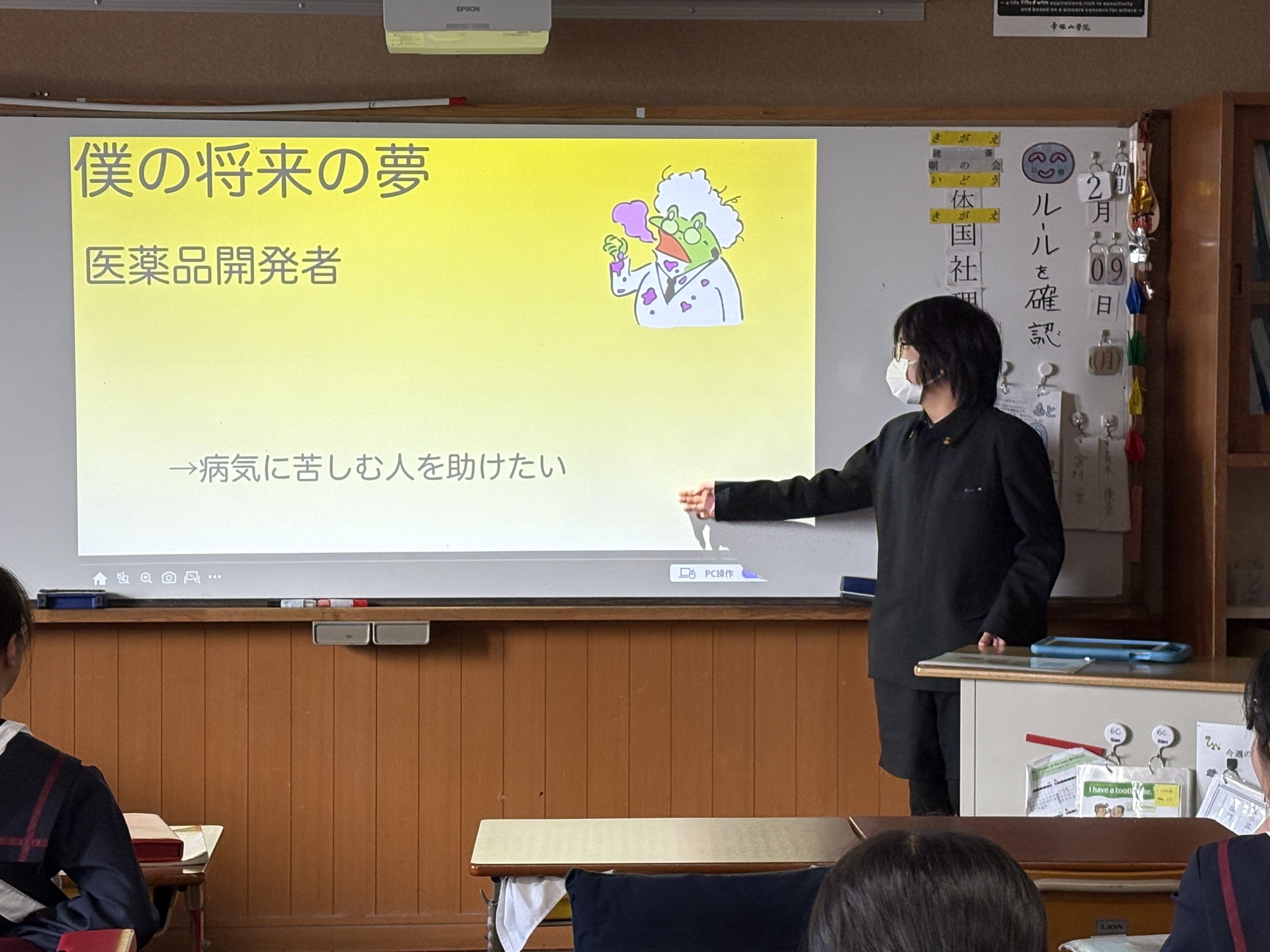 また、これからのこと、目標や夢を思いえがき、中学校生活に向けての決意も、プレゼンにこめてもらいました。