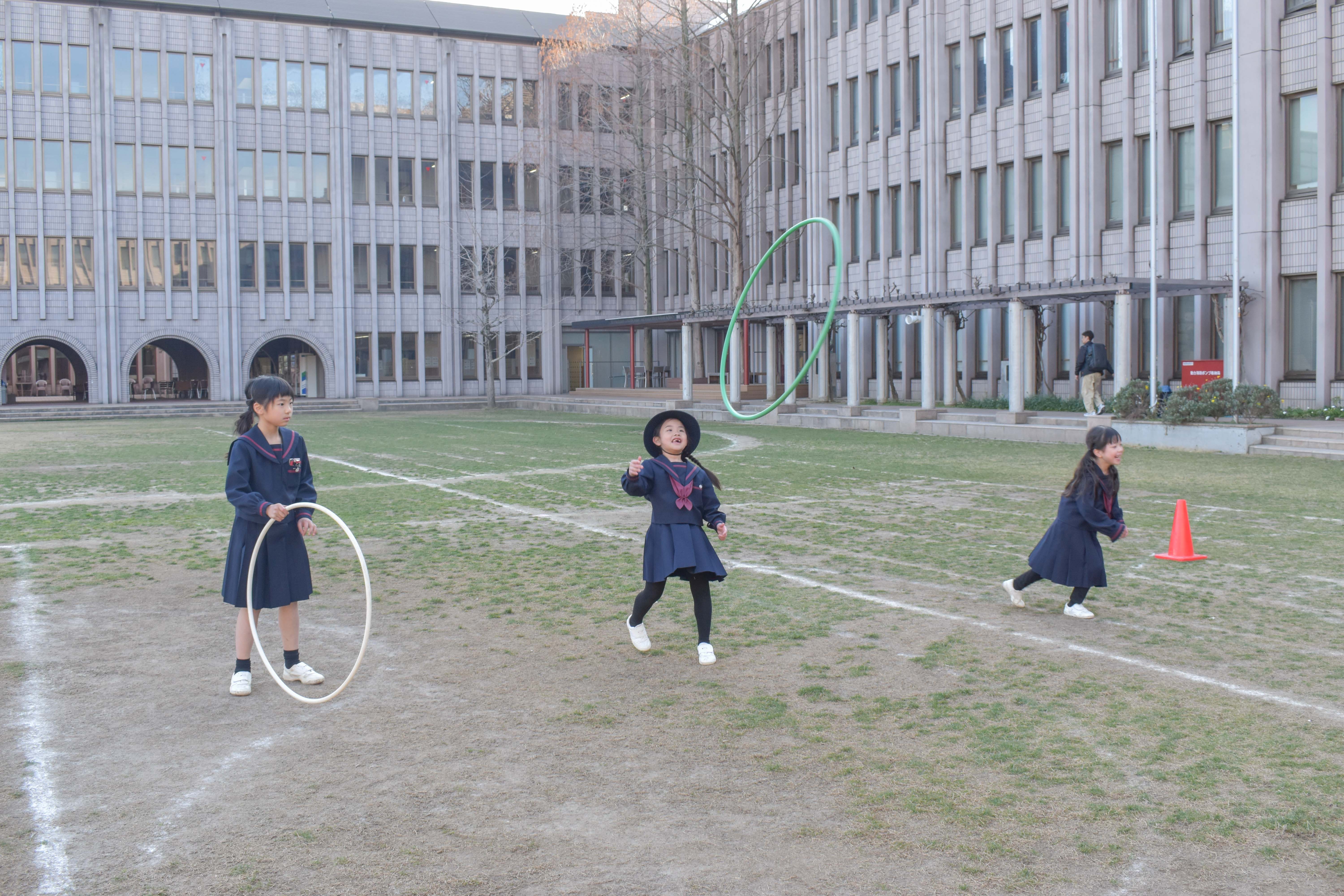 今日のTASCでは外遊びでフラフープとかけっこ、キックベースを行いました。