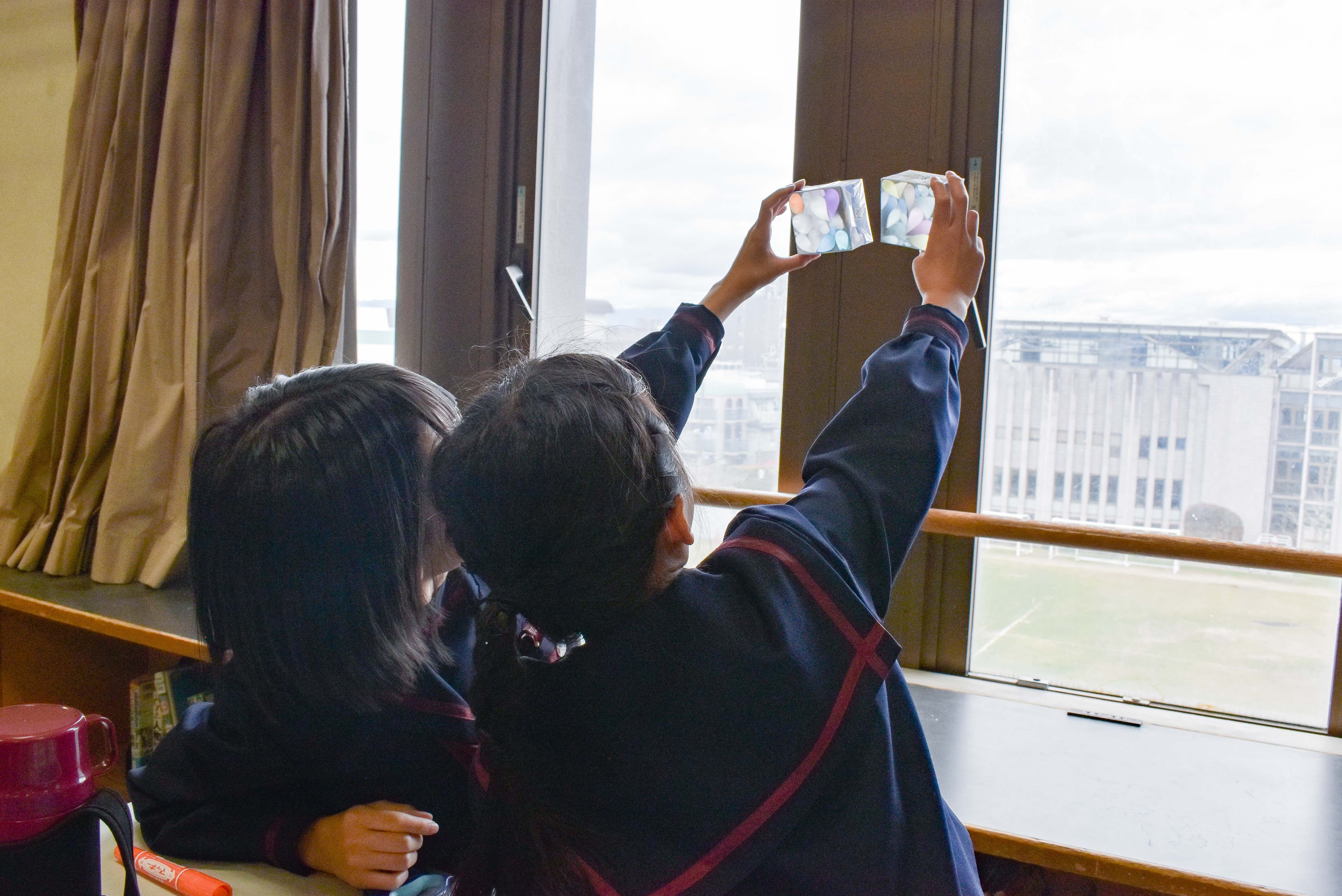 キラキラと様々な色に輝いて見える素敵な万華鏡のできあがりです。