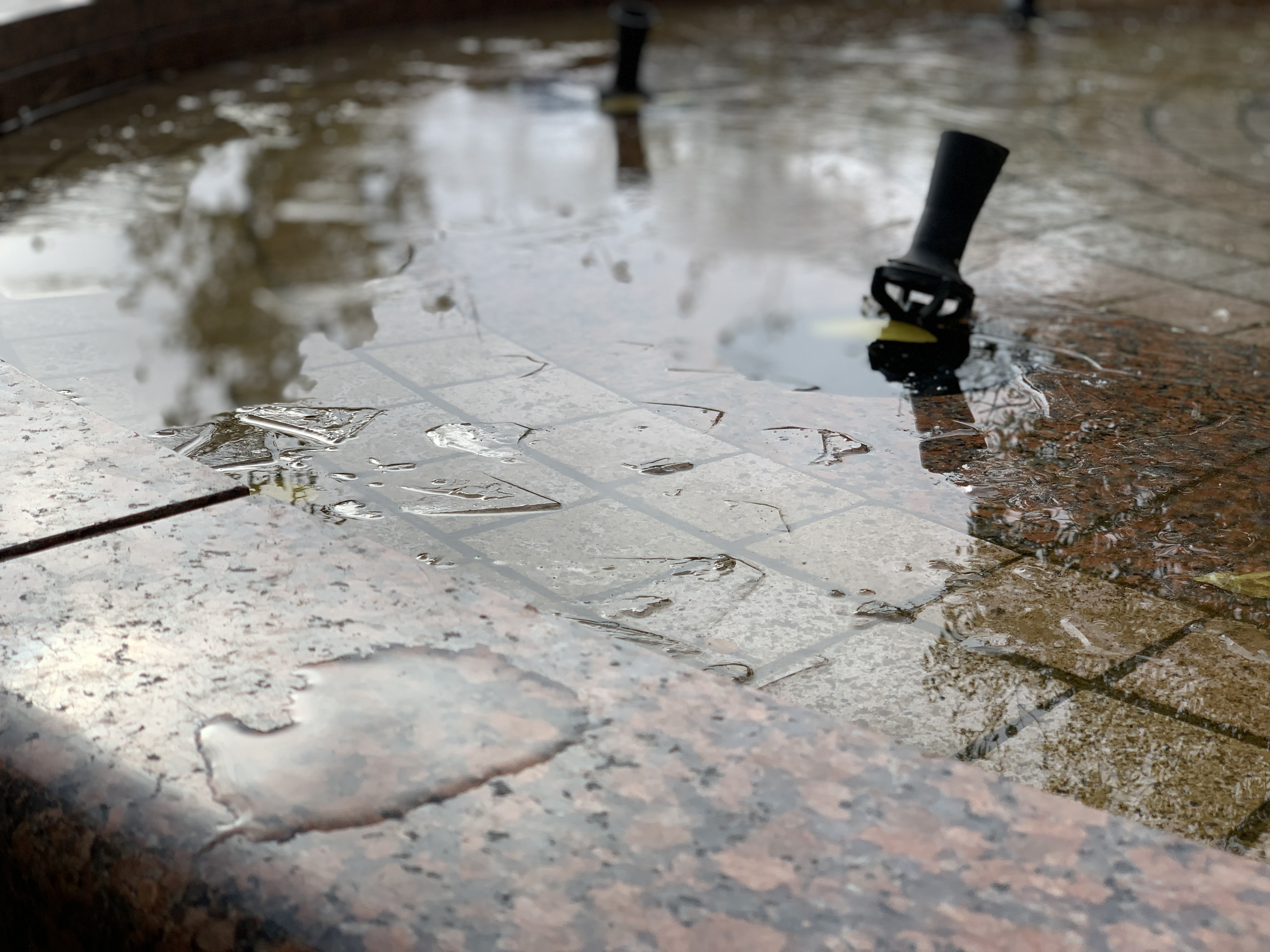かなり冷え込んだ朝となり、噴水の水にも氷が張っている様子が見られました。また、一時的に粉雪が舞っており、1階の1年生は嬉しそうに校庭に出てきていました。