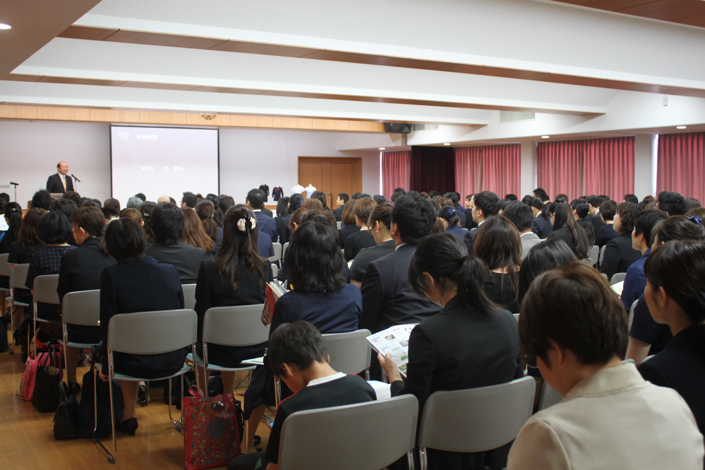 多目的ホールでは、学校や入試についての説明があり、保護者の方々は熱心に聞いておられました。