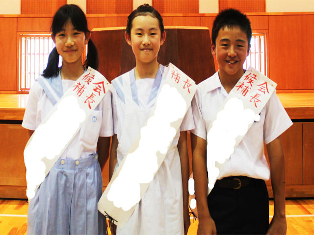 立候補した3名の児童たちは自分の考えと想いをしっかりとみんなの前で伝えていました。