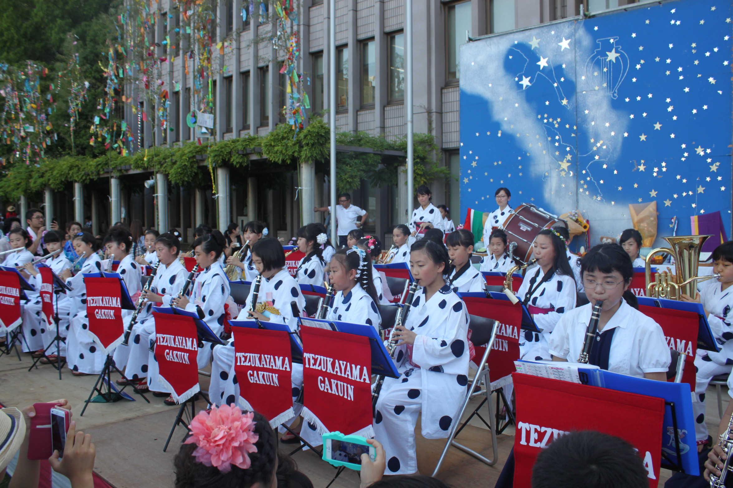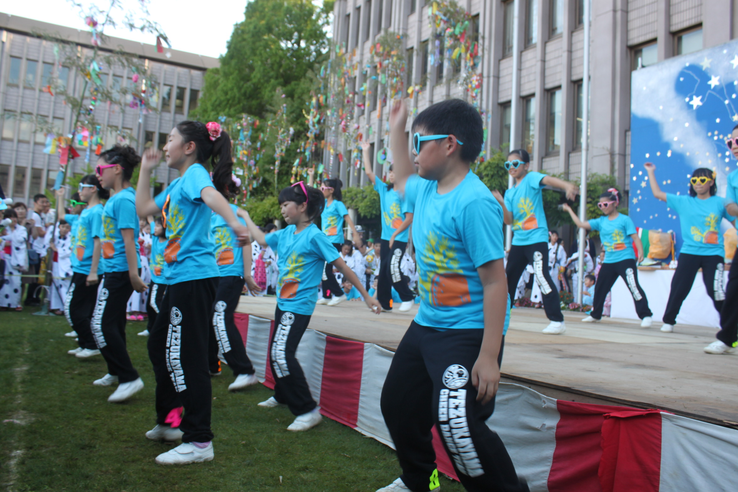 その後の、七夕おどりでは、教員・児童が揃いの浴衣で学院音頭・七夕音頭を踊りました。