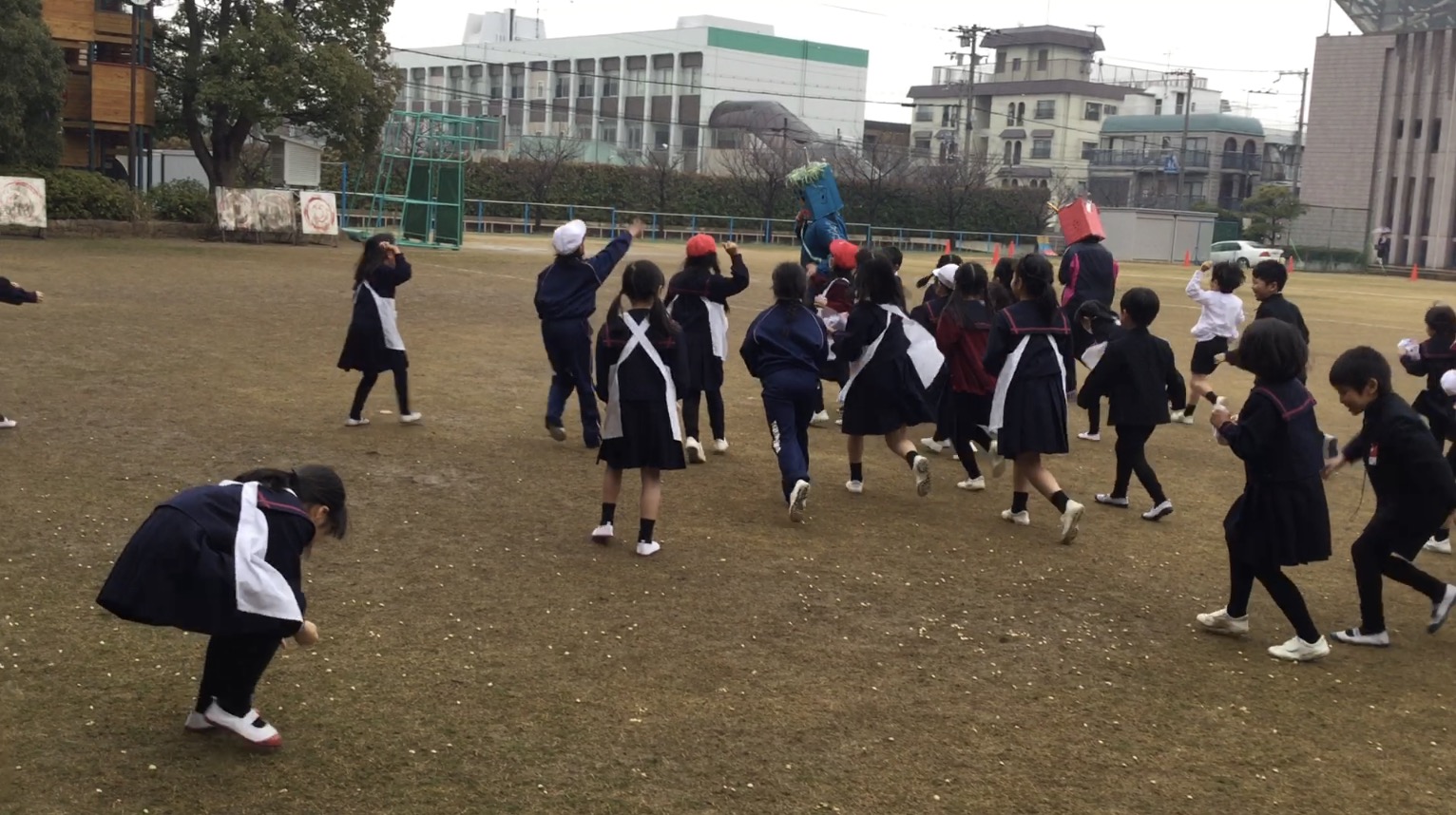 明後日は『節分』という事で、豆まきを行いました。 子どもたちは、楽しみにしていた ようで、鬼が登場すると、元気いっぱいに豆まきをしました。 鬼が怖くて泣いている子も いましたが、しっかり豆まきをし、最後は全員笑顔になり『福が来た』ようです。