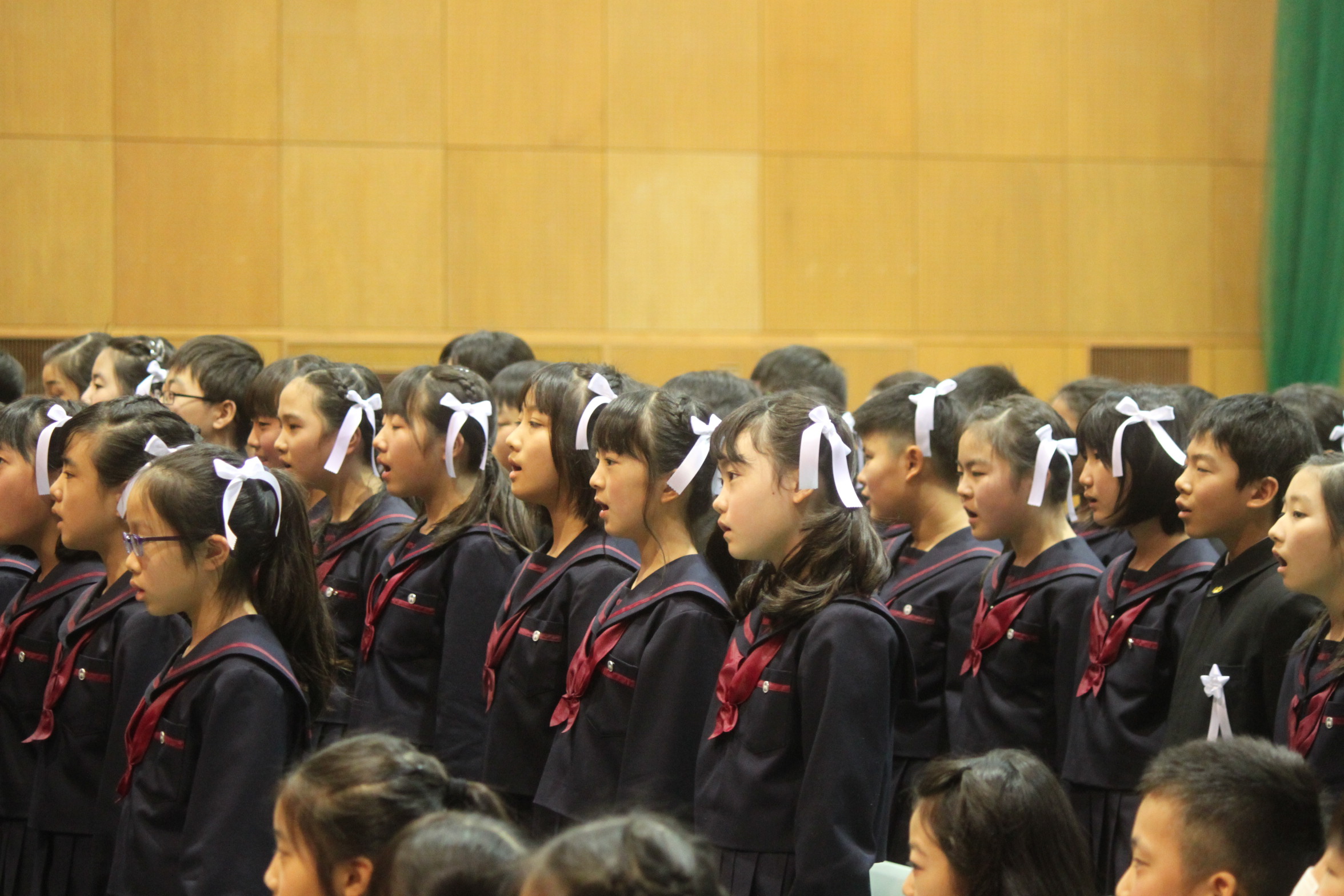 保護者の方々、教職員、在校生(4・5年生)に見守られながら、