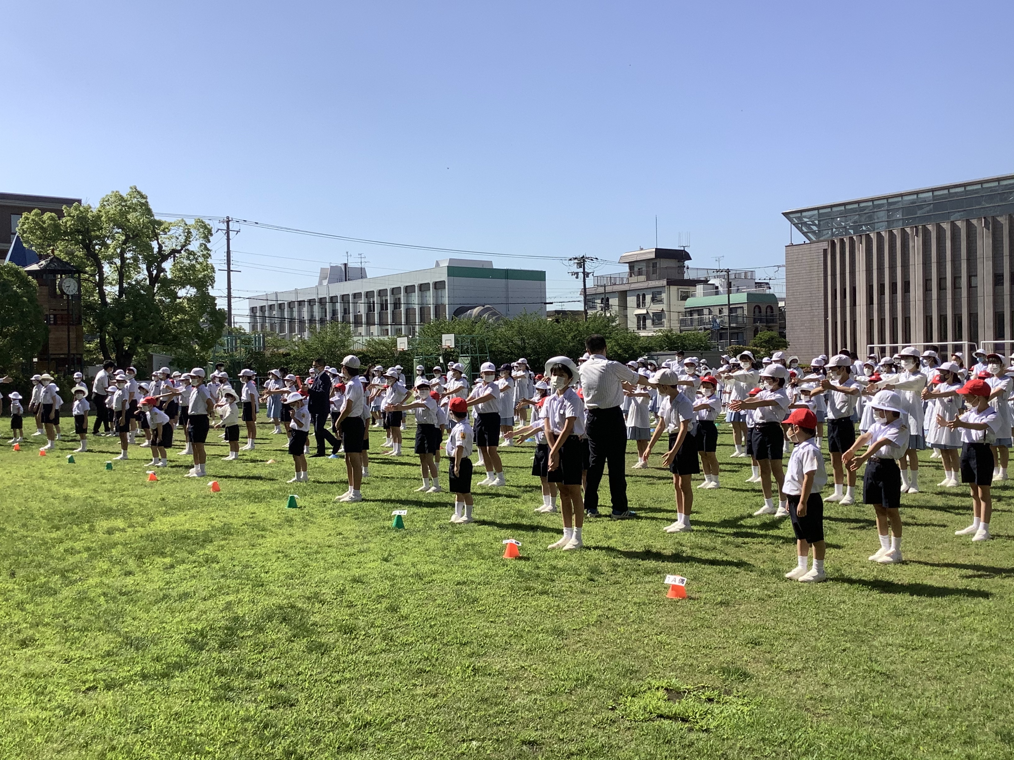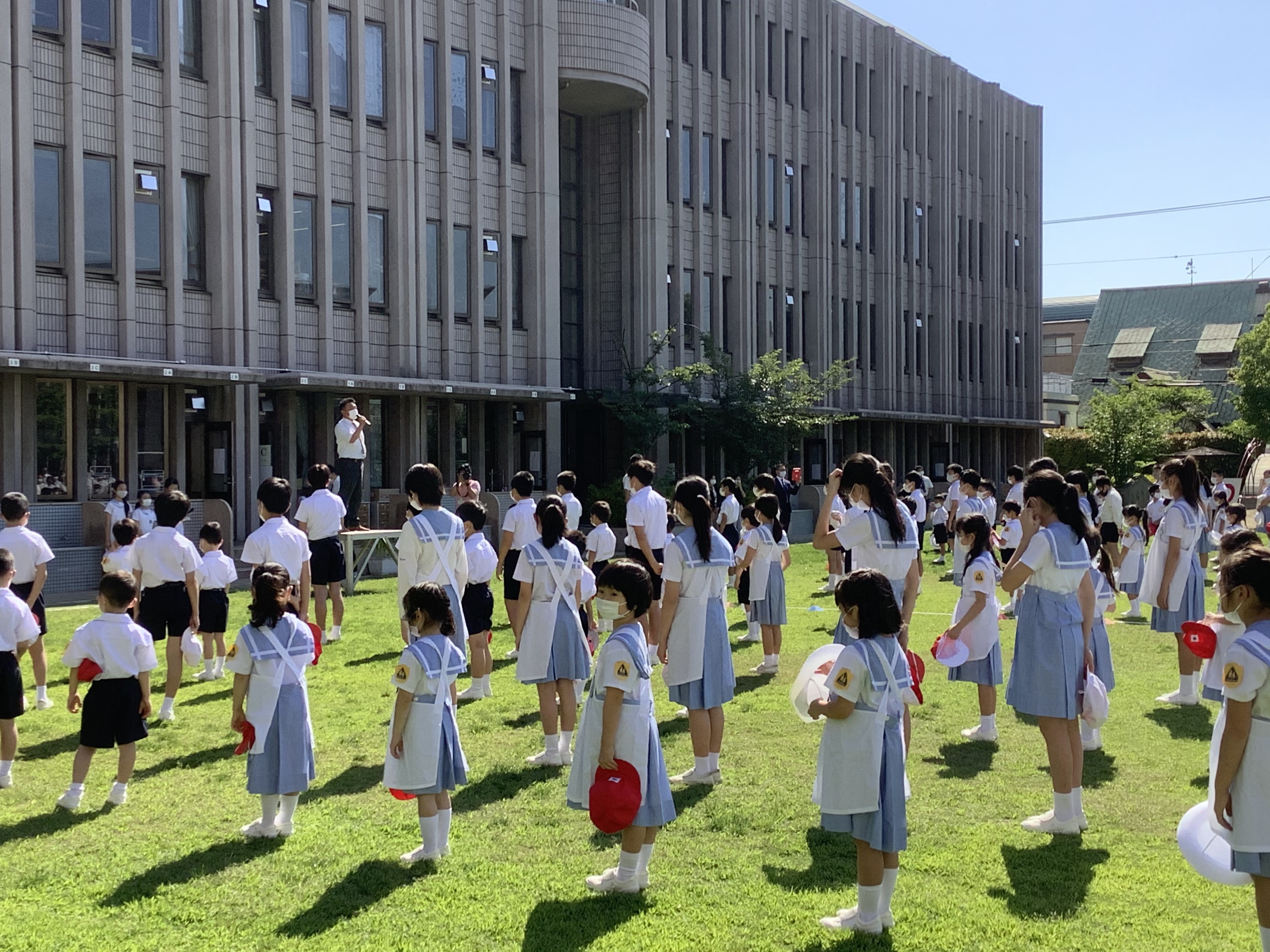 これまでに引き続き、通用門での消毒や、授業前後の手洗いを敢行し、衛生管理に努めています。また本日より運動場の使用を一部的に許可しました。コーンで使用場所を制限しつつも、段階的に過ごし方を変容させていく予定です。