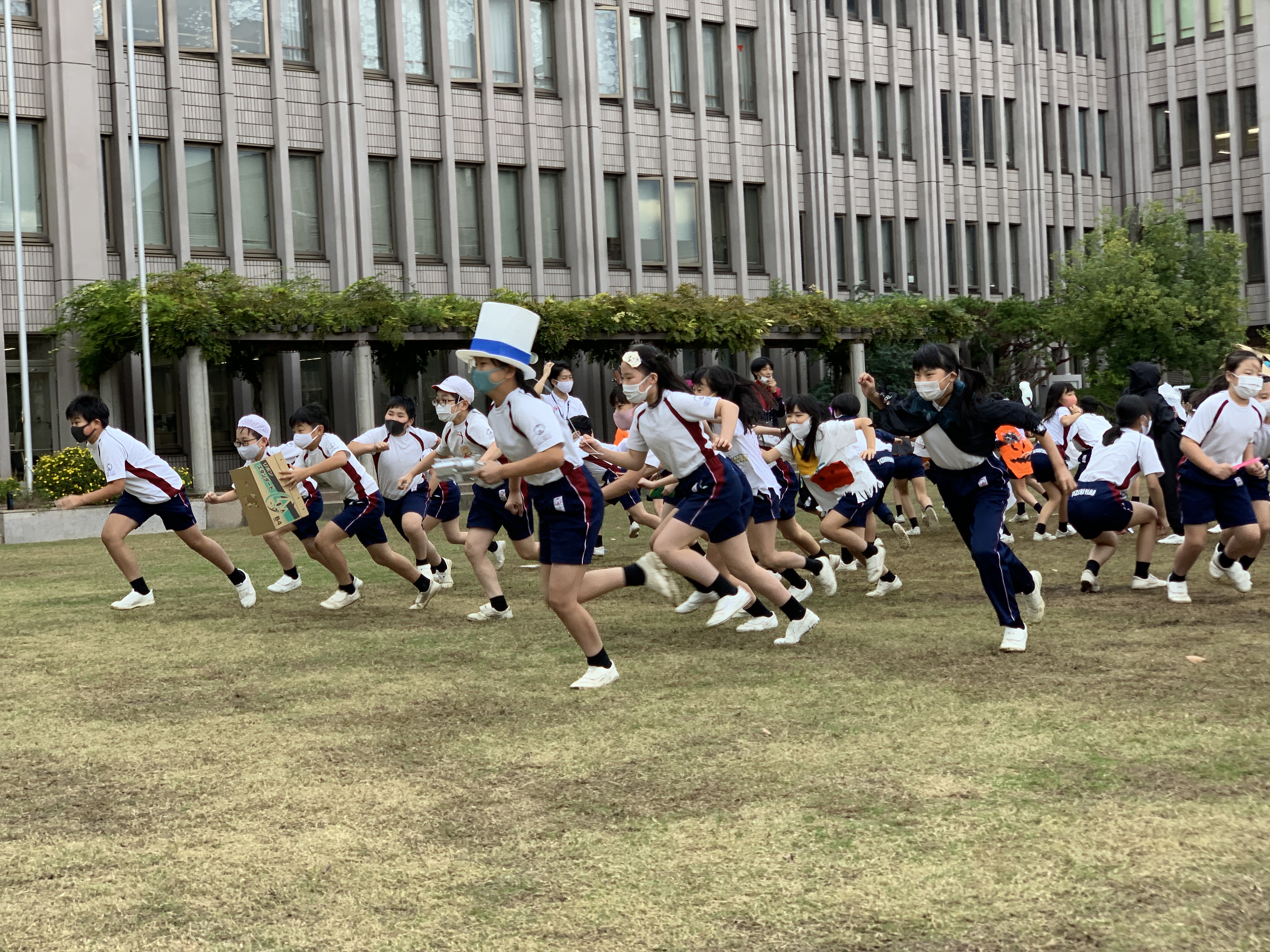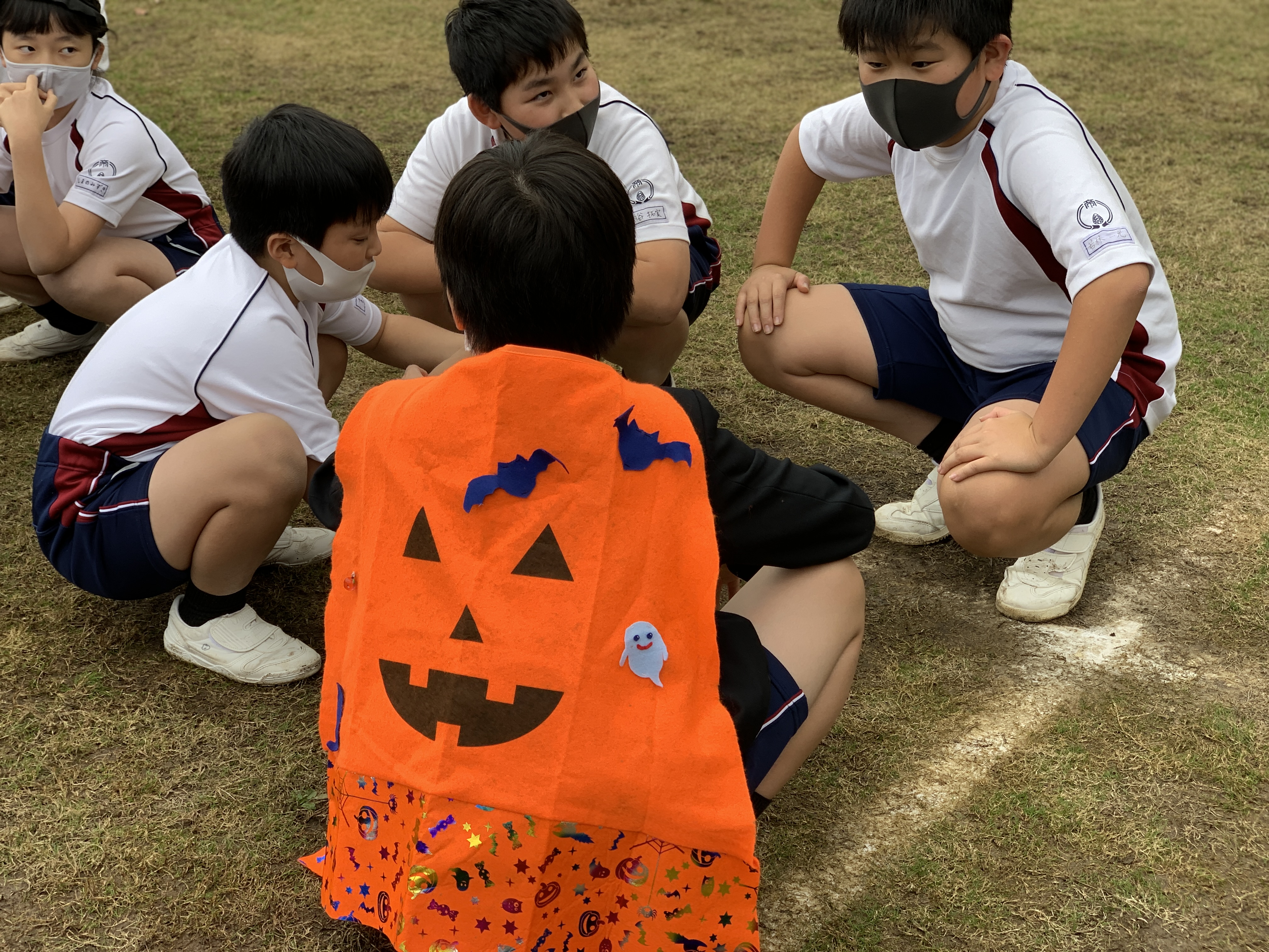 それぞれに仮装をし、運動場中に散らばったパンプキンを探すゲームです。