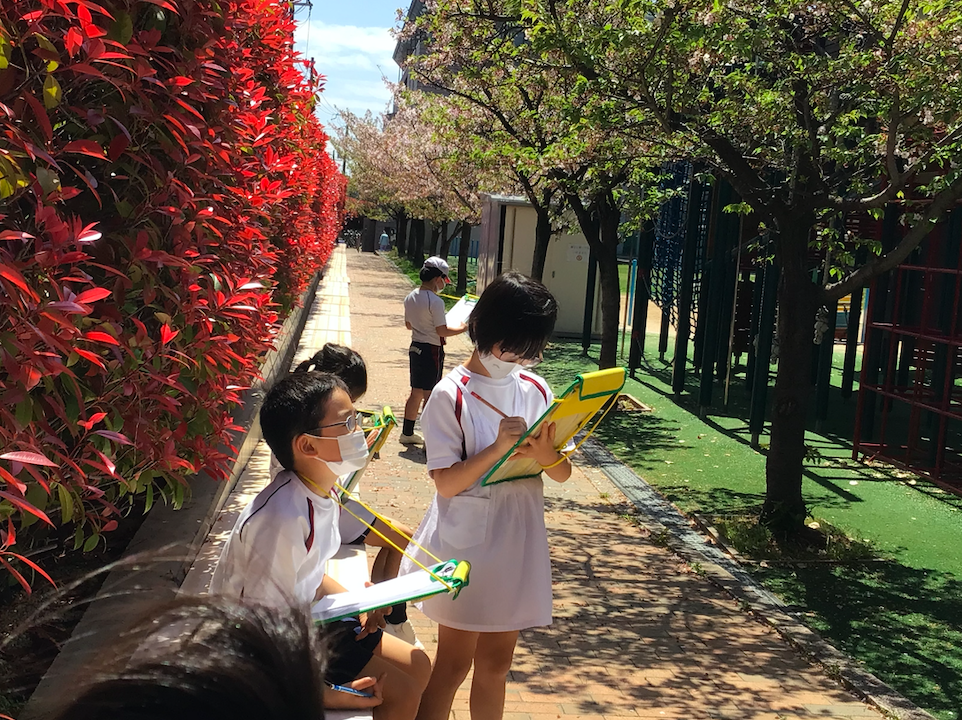 3年生理科では、運動場で春の生き物を探しをしました。しっかり観察すると、たくさんの植物が青々としてきています。虫たちも少しずつ動きだす頃でしょう。夏になると運動場はどのように変わっていくのでしょう。