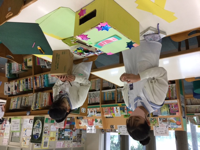 貸し出しや、アンケート箱作りを自分の仕事として取り組んでいる図書委員さんの姿。