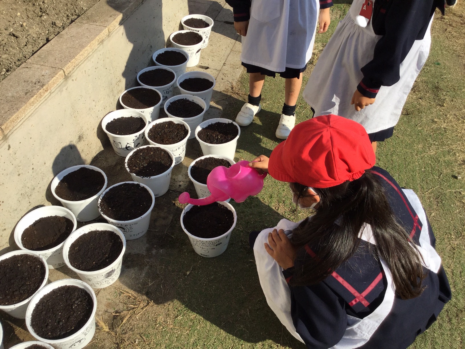 1年生は、生活科の授業でスカシユリを育てようとしています。