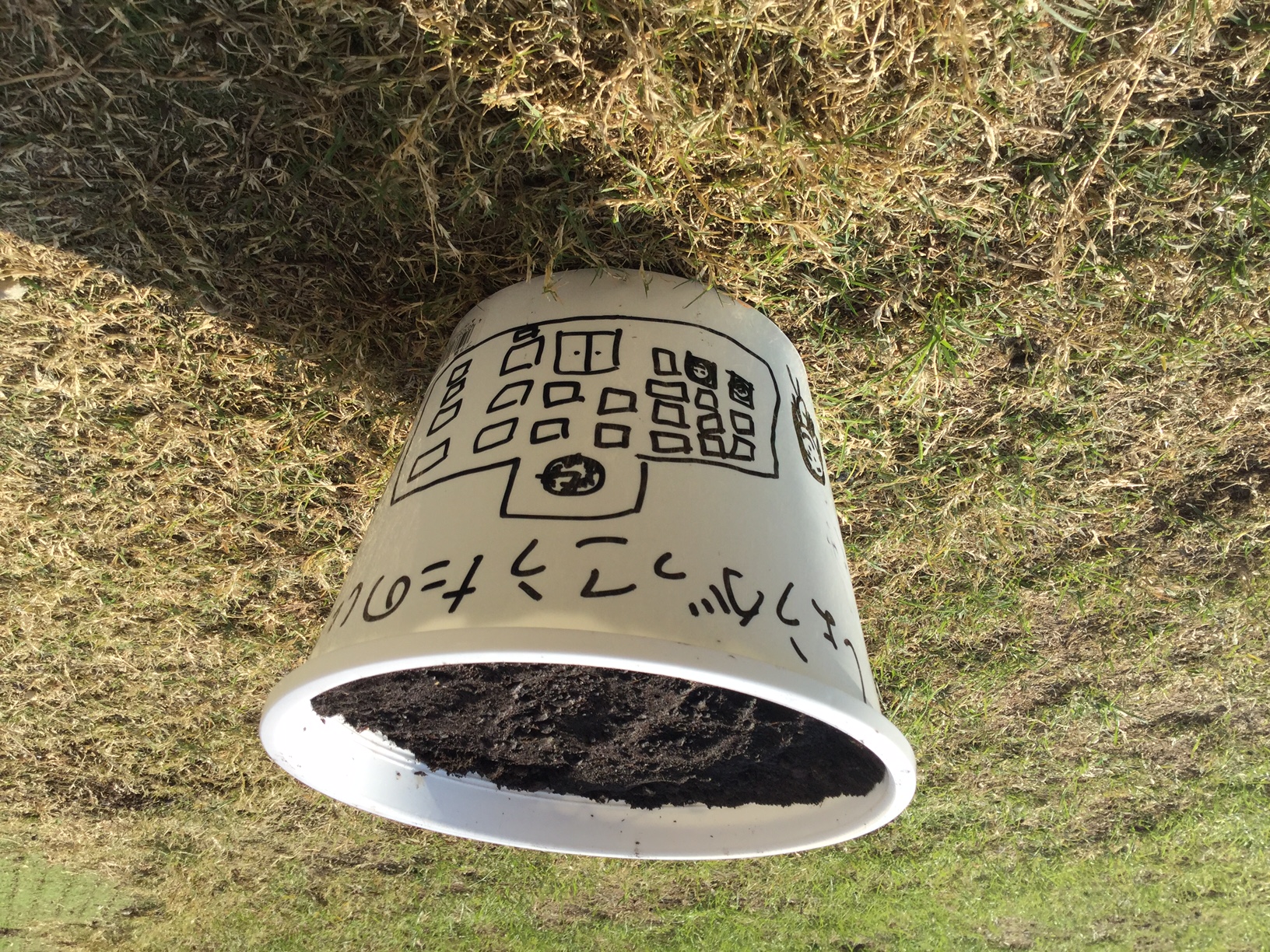 心を込めて鉢にメッセージや絵を描き、その後に球根を植えていました。