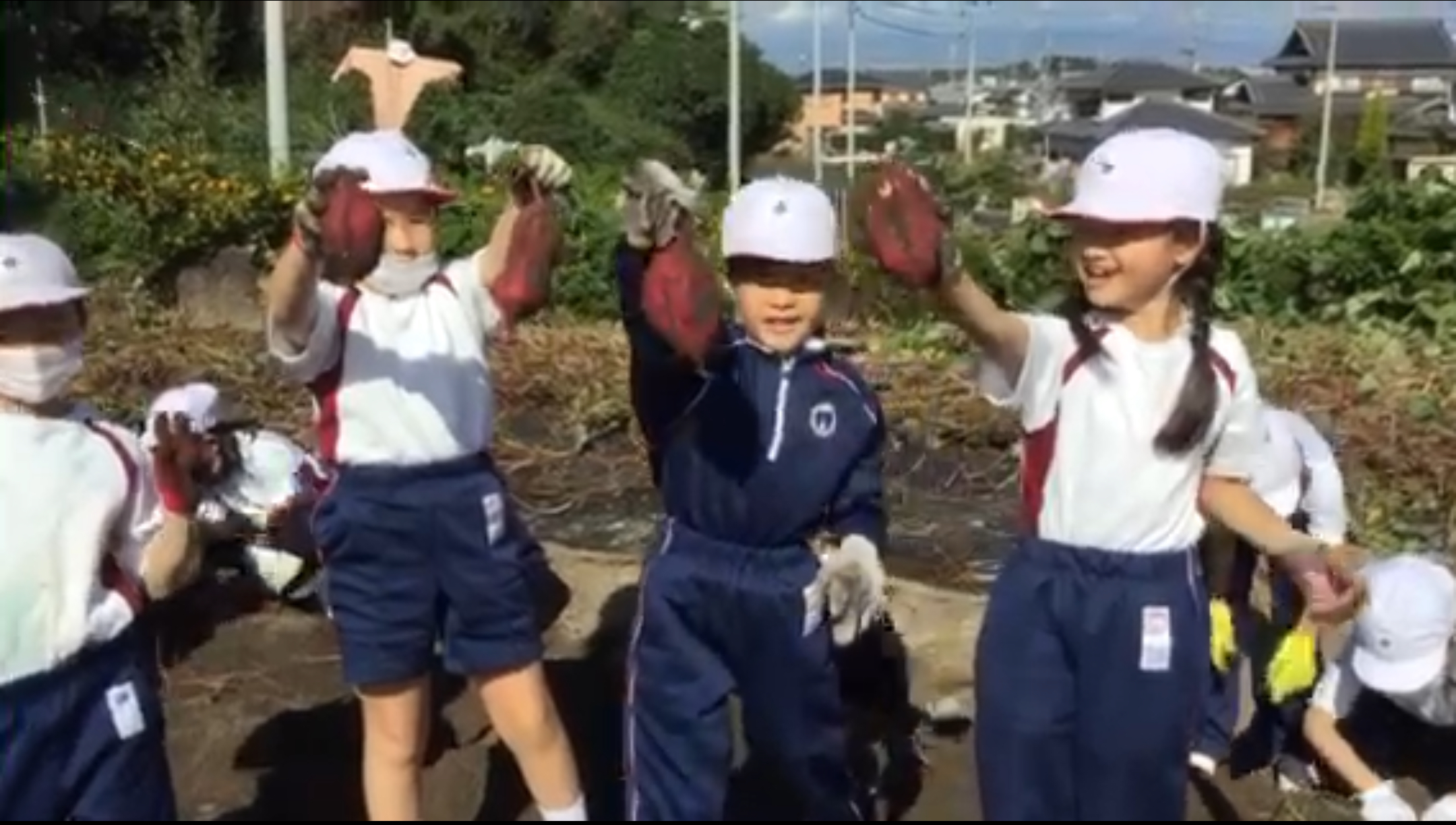11月2日、1年生は遠足で「やぶ果樹園」に行き、みかん狩りと芋掘りをさせていただきました。