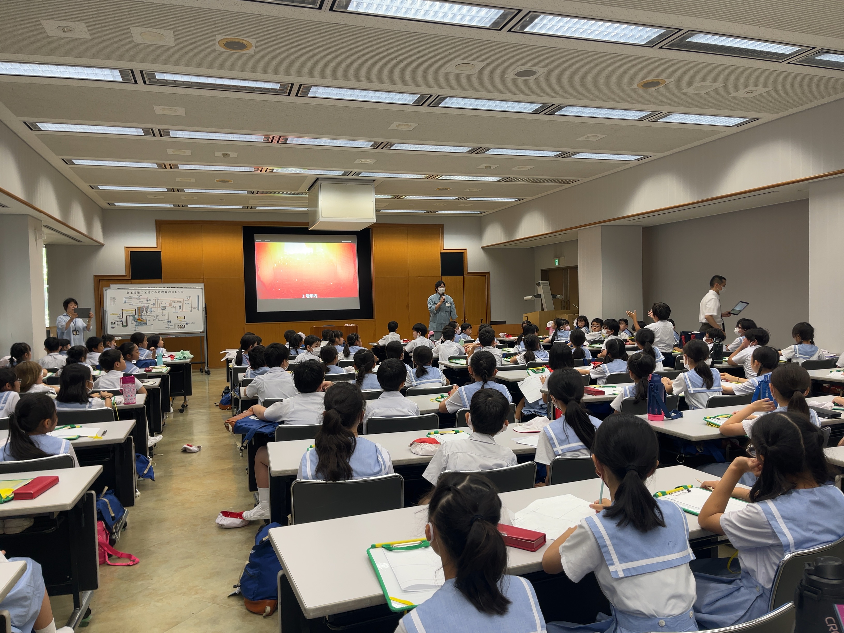 各クラスに分かれて、施設内の見学をしています。
